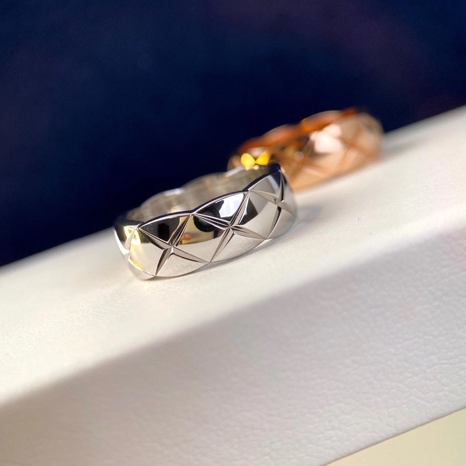 Elegant 925 sterling silver ring with a quilted design. Inspired by the Coco Crush collection, perfect for everyday wear. Available in sizes 6, 7, and 8.