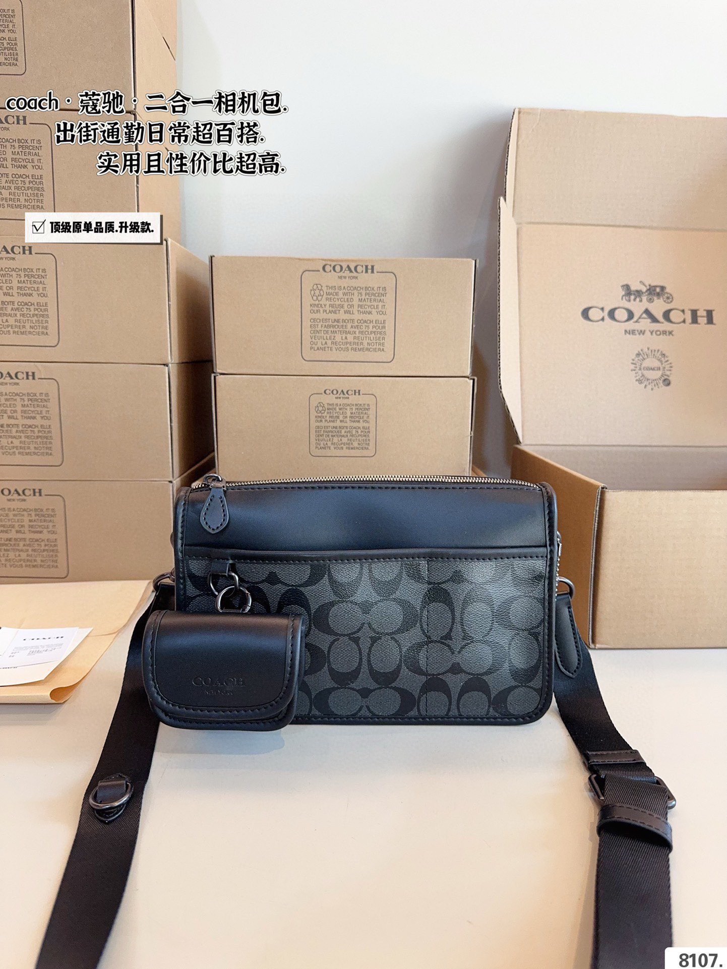 Stylish and versatile Coach crossbody bag for men, featuring a detachable pouch for added convenience. Perfect for everyday use.