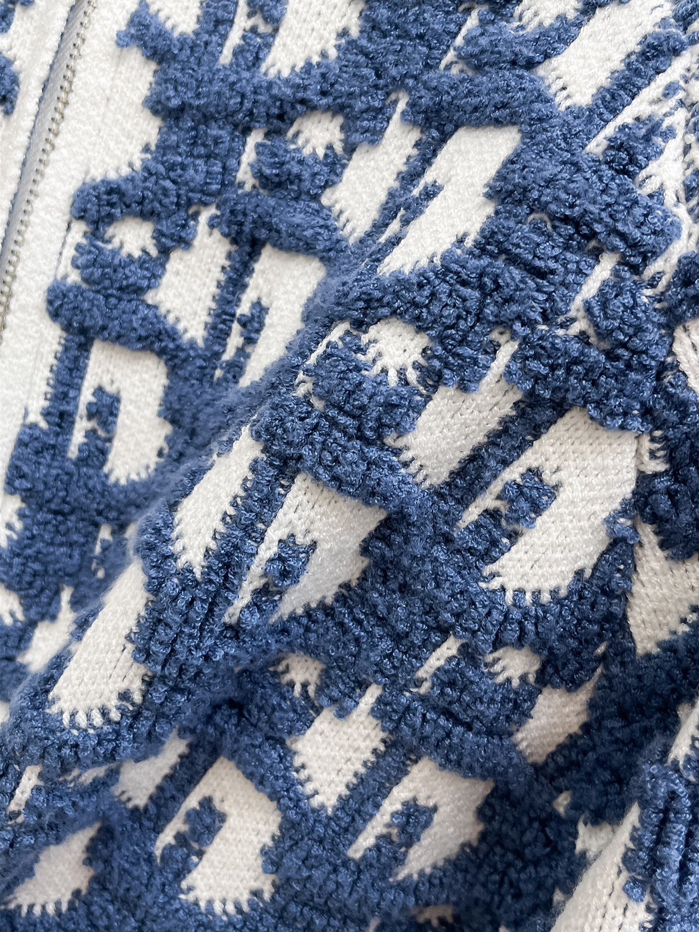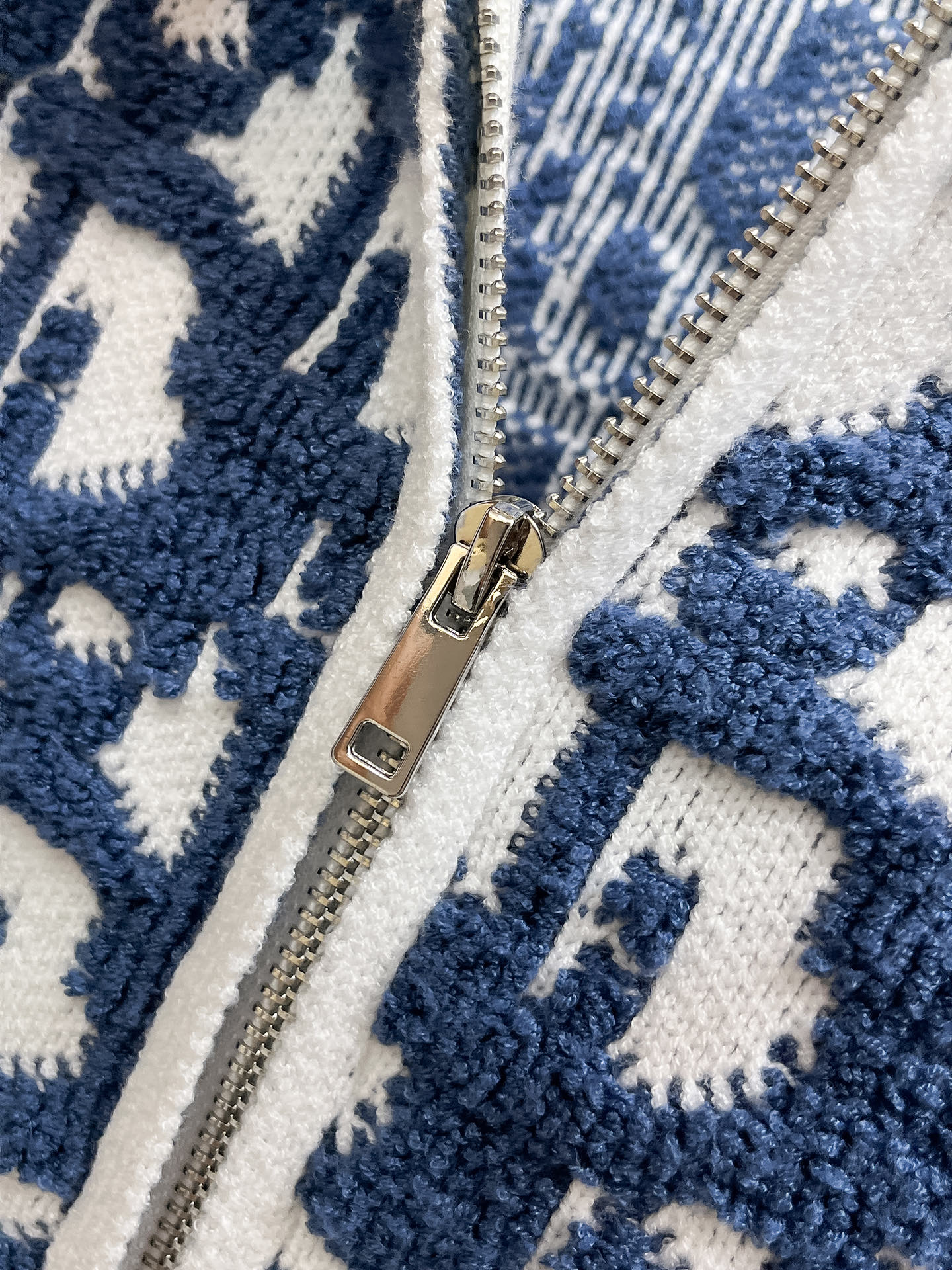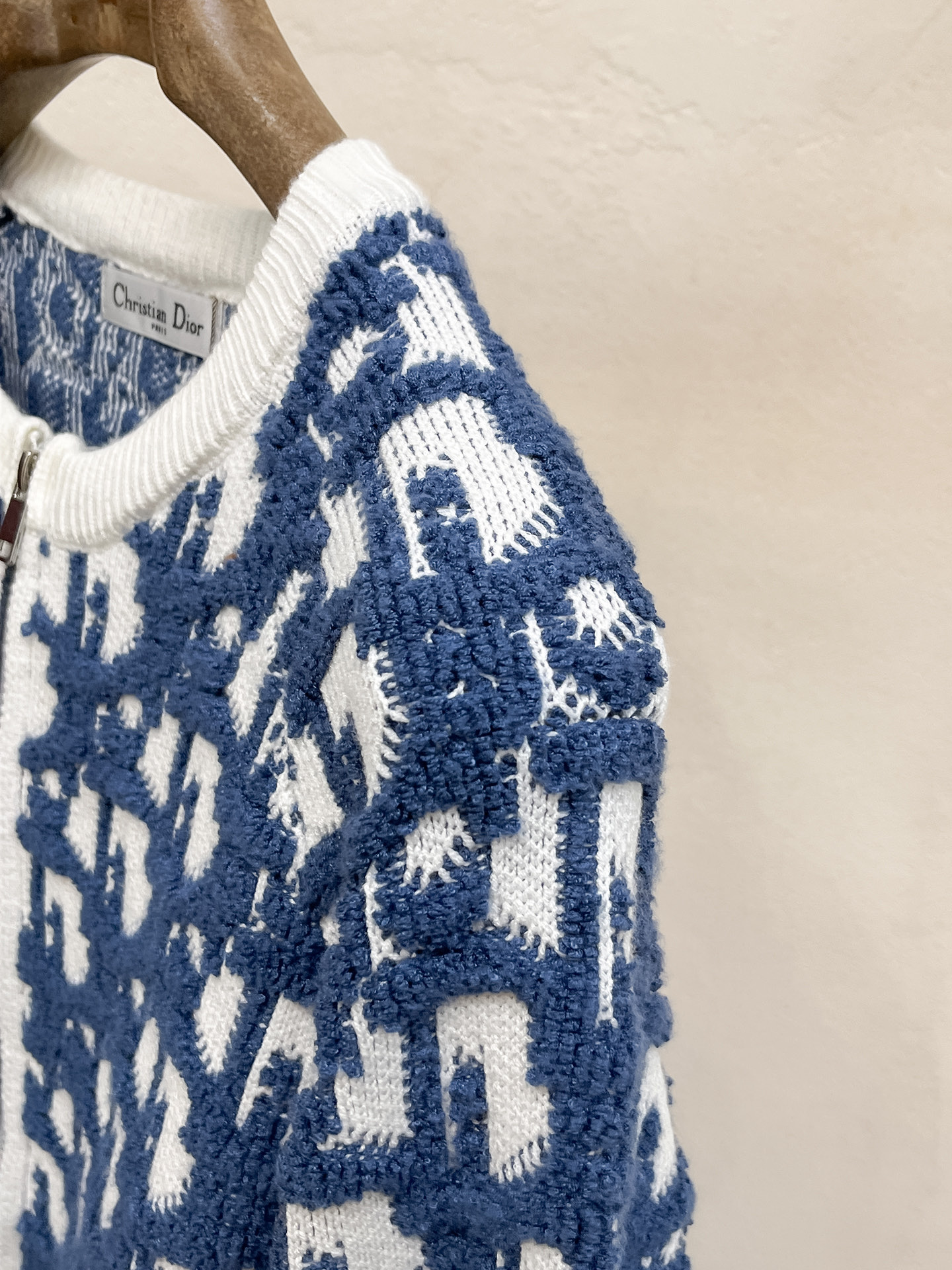 Dior 25SS Jacquard Zip-Up Cardigan - Wool Blend, Blue and White Pattern