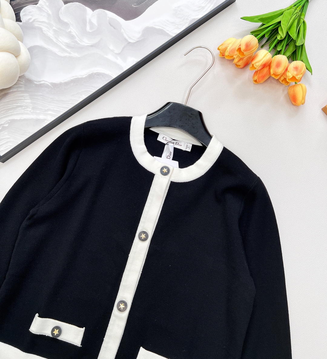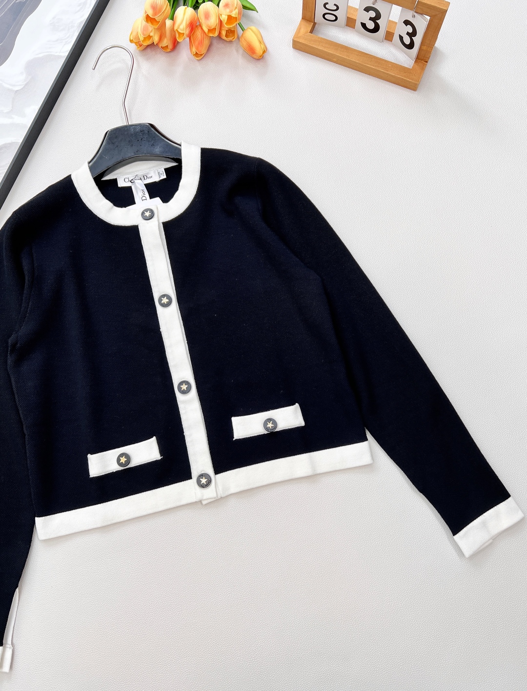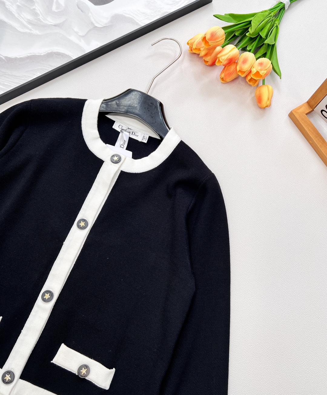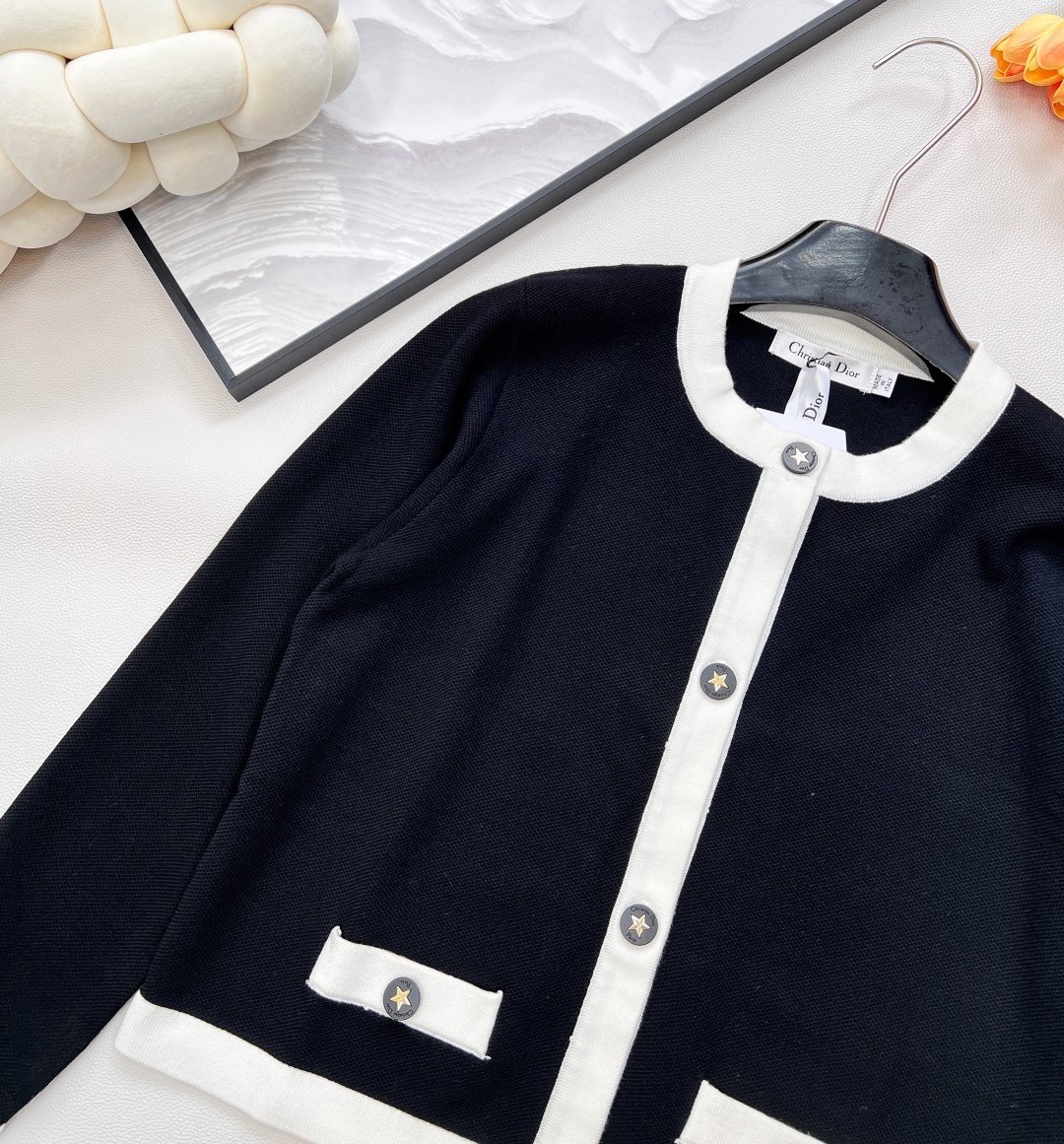 Elevate your style with this Dior cardigan. Featuring a classic black and white design, exquisite button details, and comfortable knit fabric.