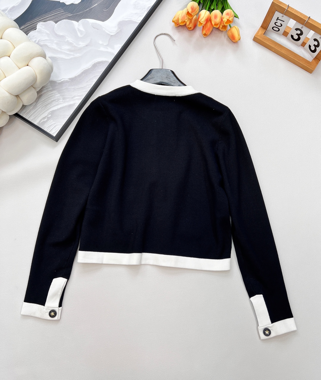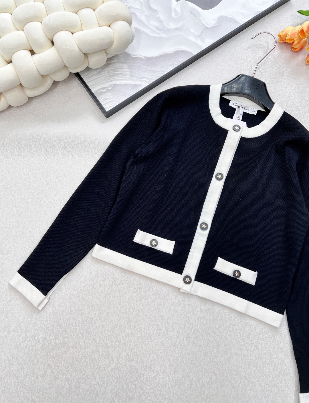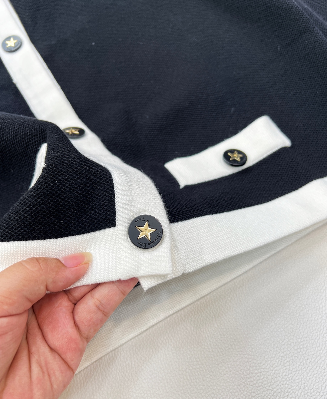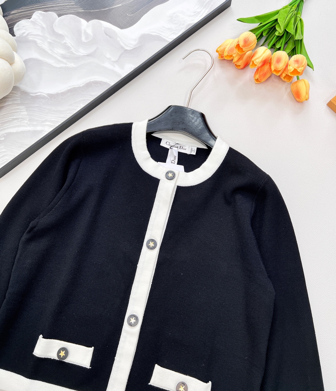 Elevate your style with this Dior cardigan. Featuring a classic black and white design, exquisite button details, and comfortable knit fabric.