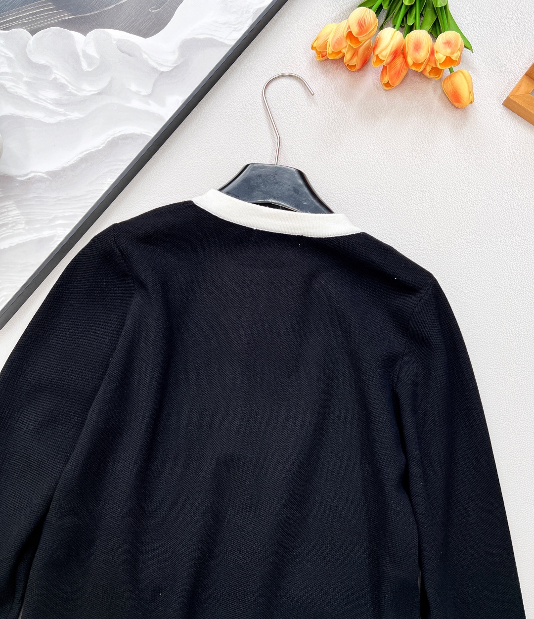 This Dior knit cardigan is a timeless piece that combines classic design with modern elegance. The black and white color scheme ensures versatility, making it a perfect addition to any wardrobe.