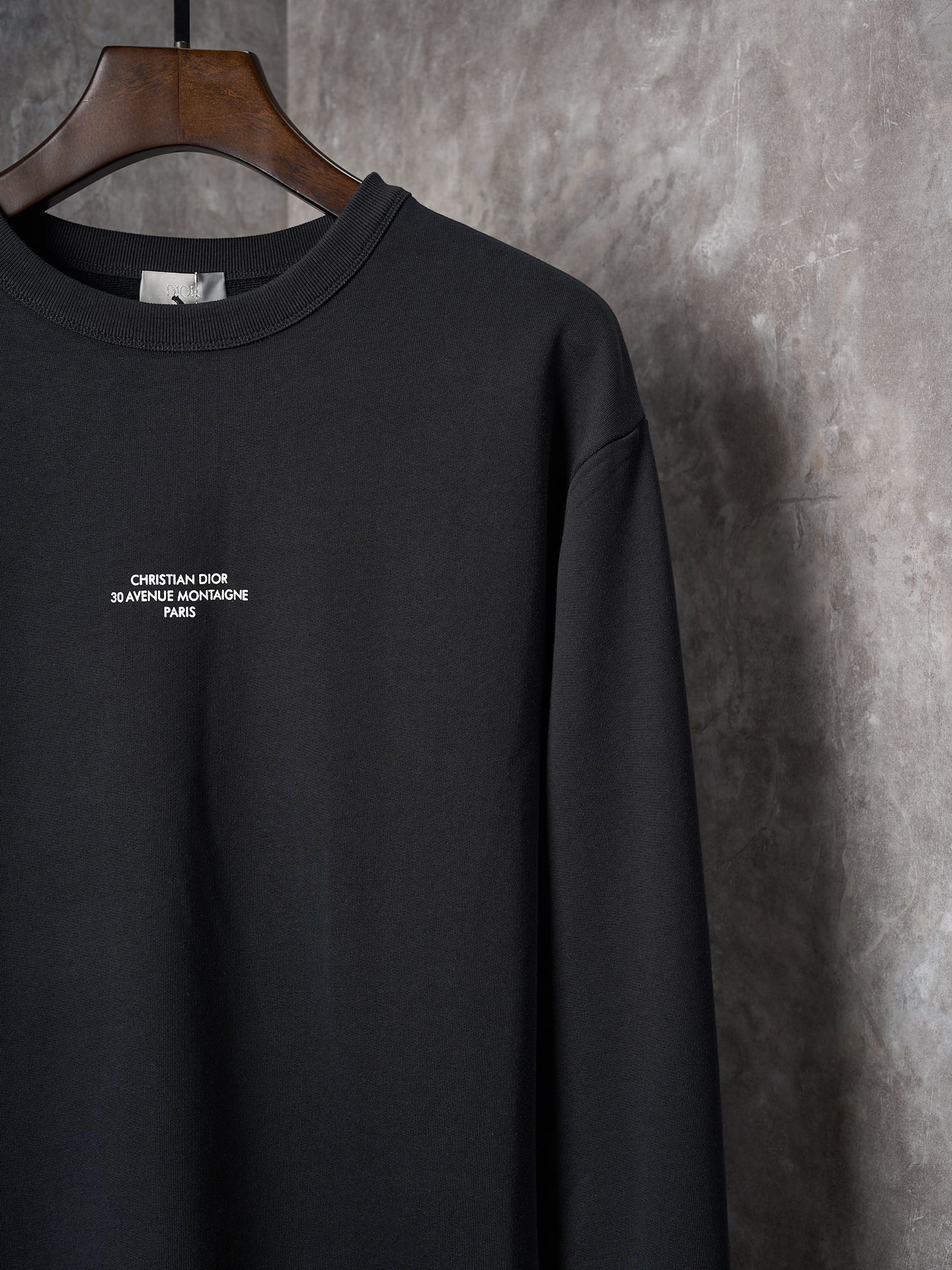 DIOR CD Montaigne Logo Print Crewneck Sweatshirt - Black Cotton Fleece