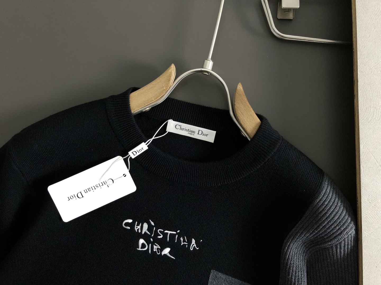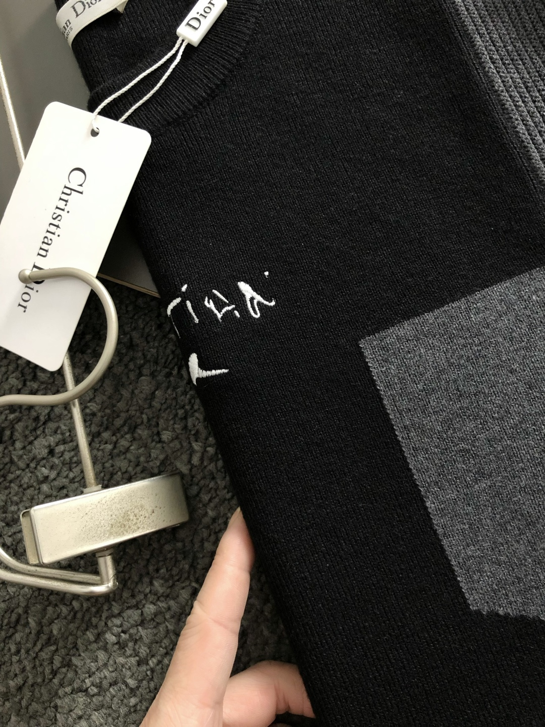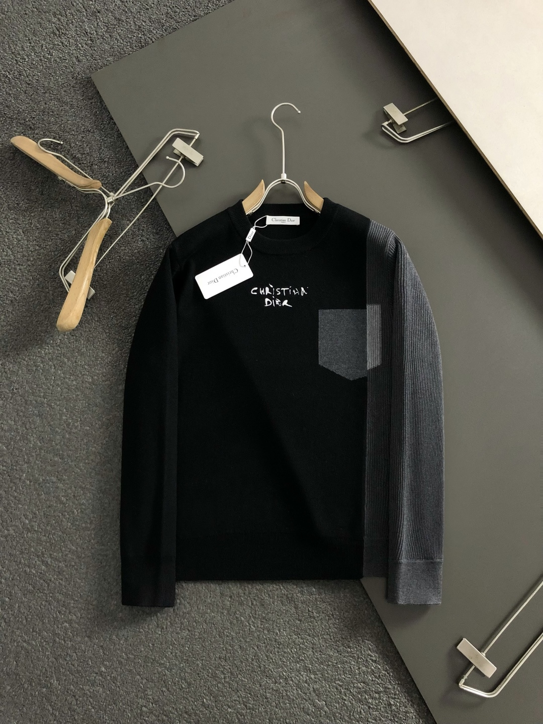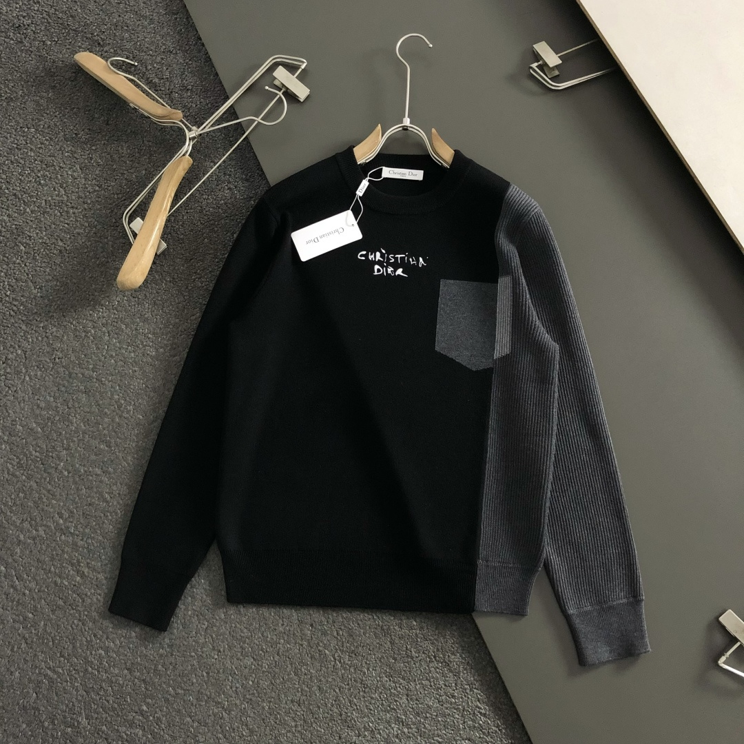 Tags: Black And Grey Sweater, Casual Stylish Sweater, Color Block Knitwear, Dior Wool Sweater, Embroidered Logo Sweater, Mens Designer Sweater
