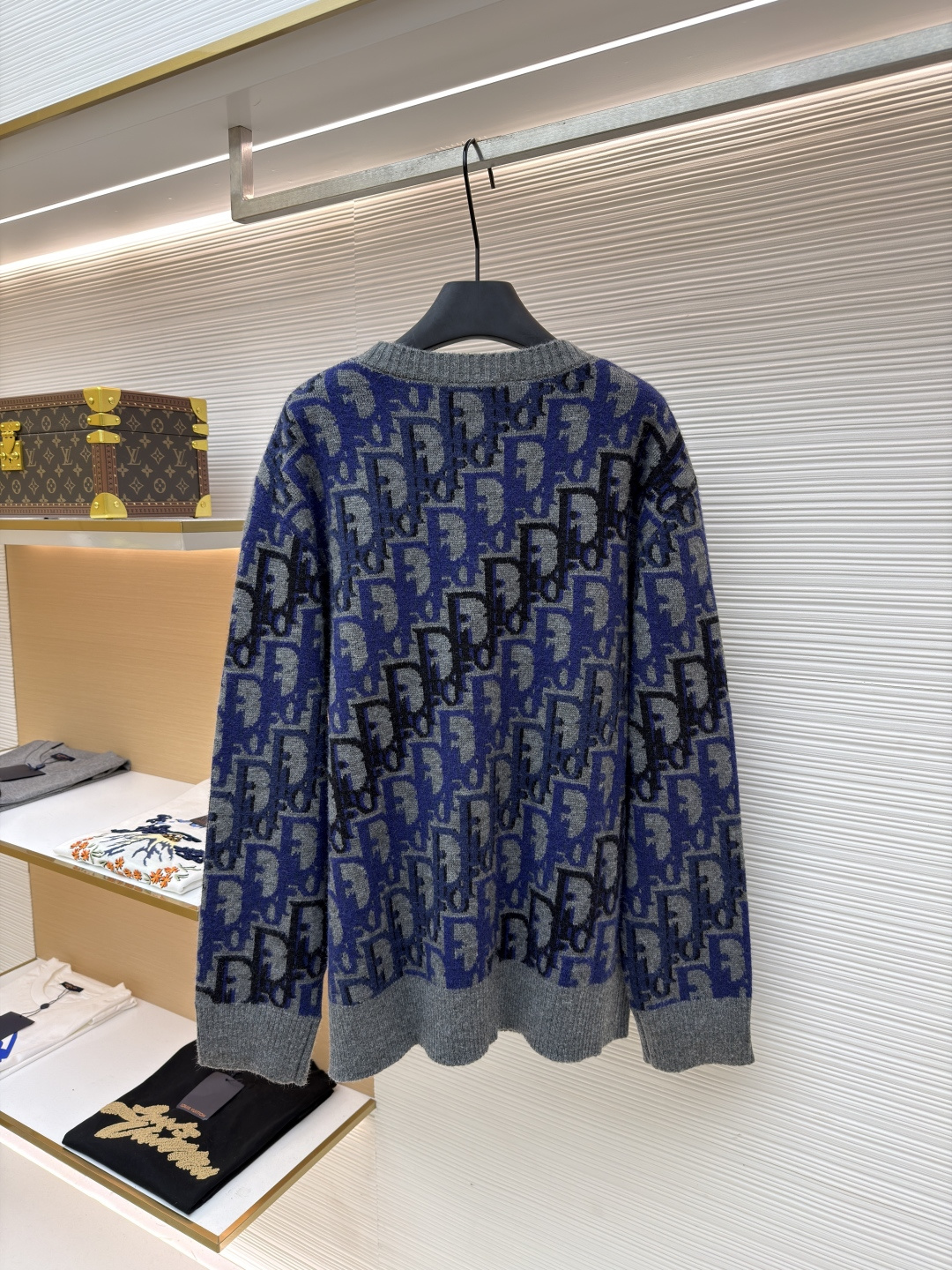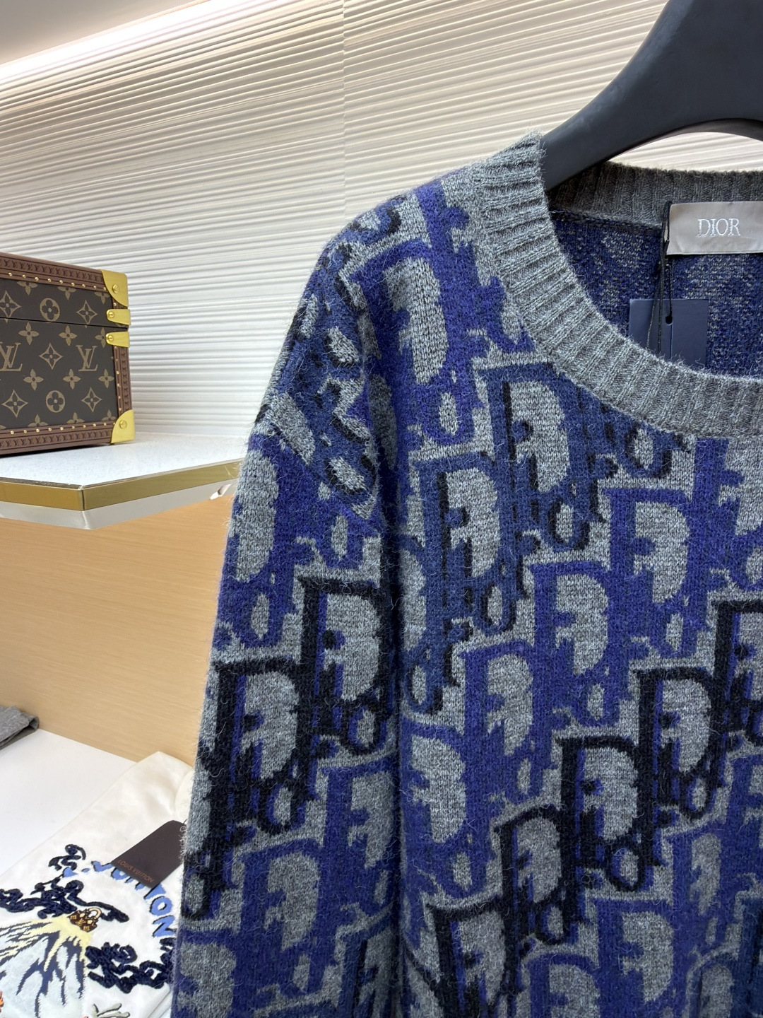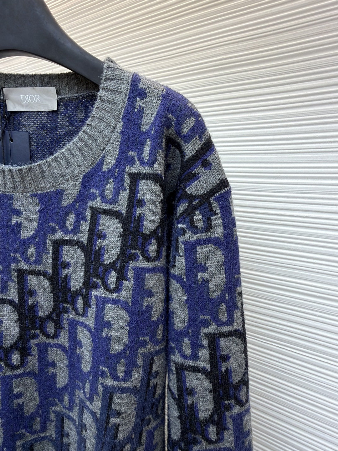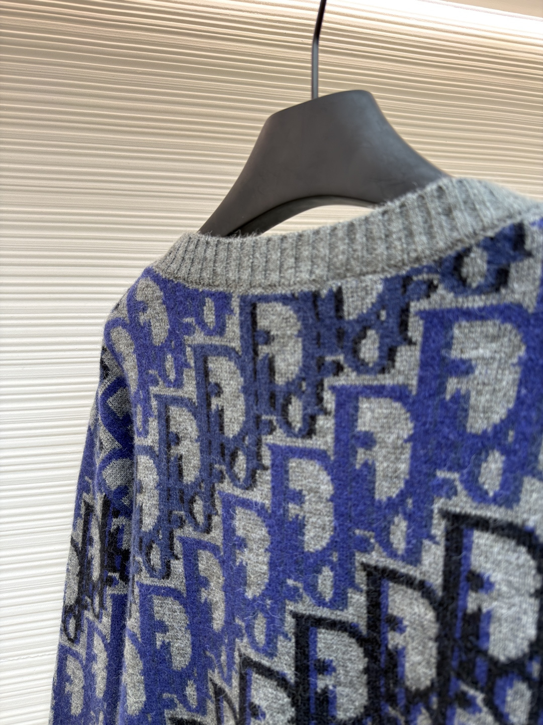 Tags: Blue Gray Sweater, Crew Neck Sweater, Designer Knitwear, dior oblique sweater, Luxury Sweater, Wool Blend Sweater