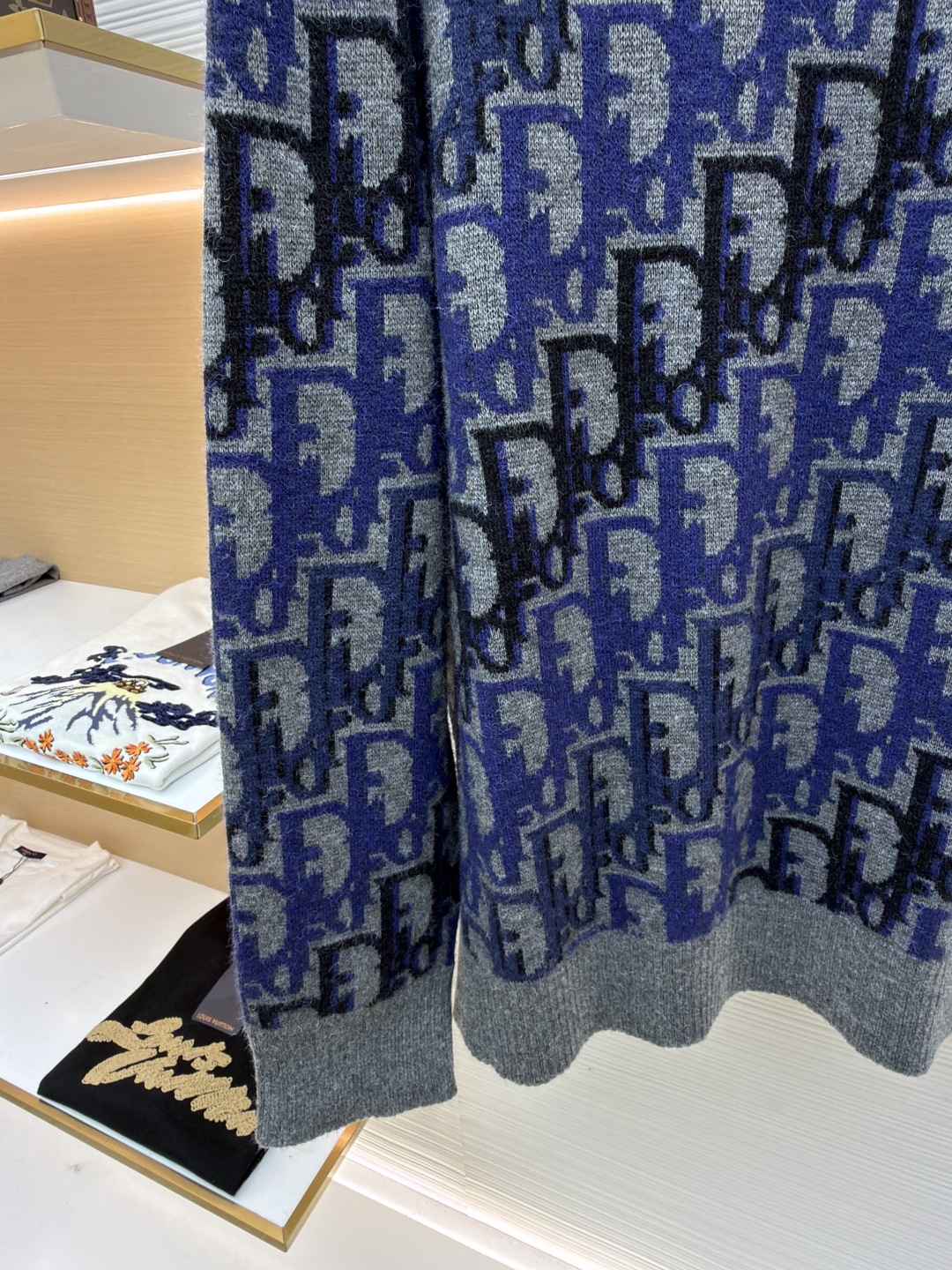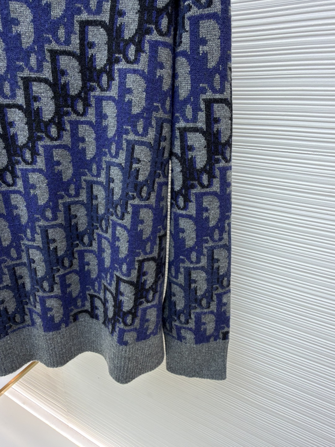 Dior Oblique Pattern Knitted Sweater, Wool Blend Fabric, Blue Gray Black