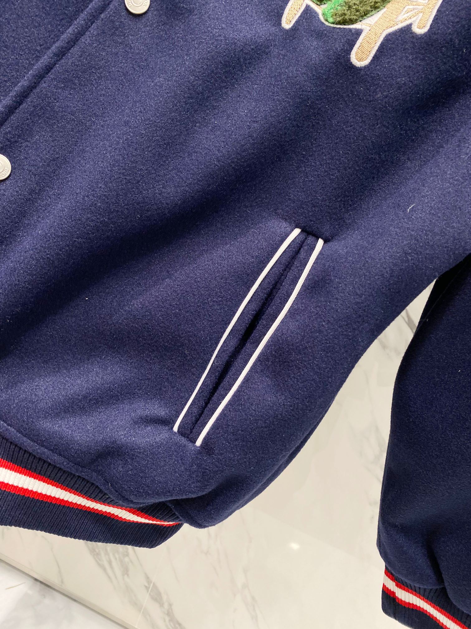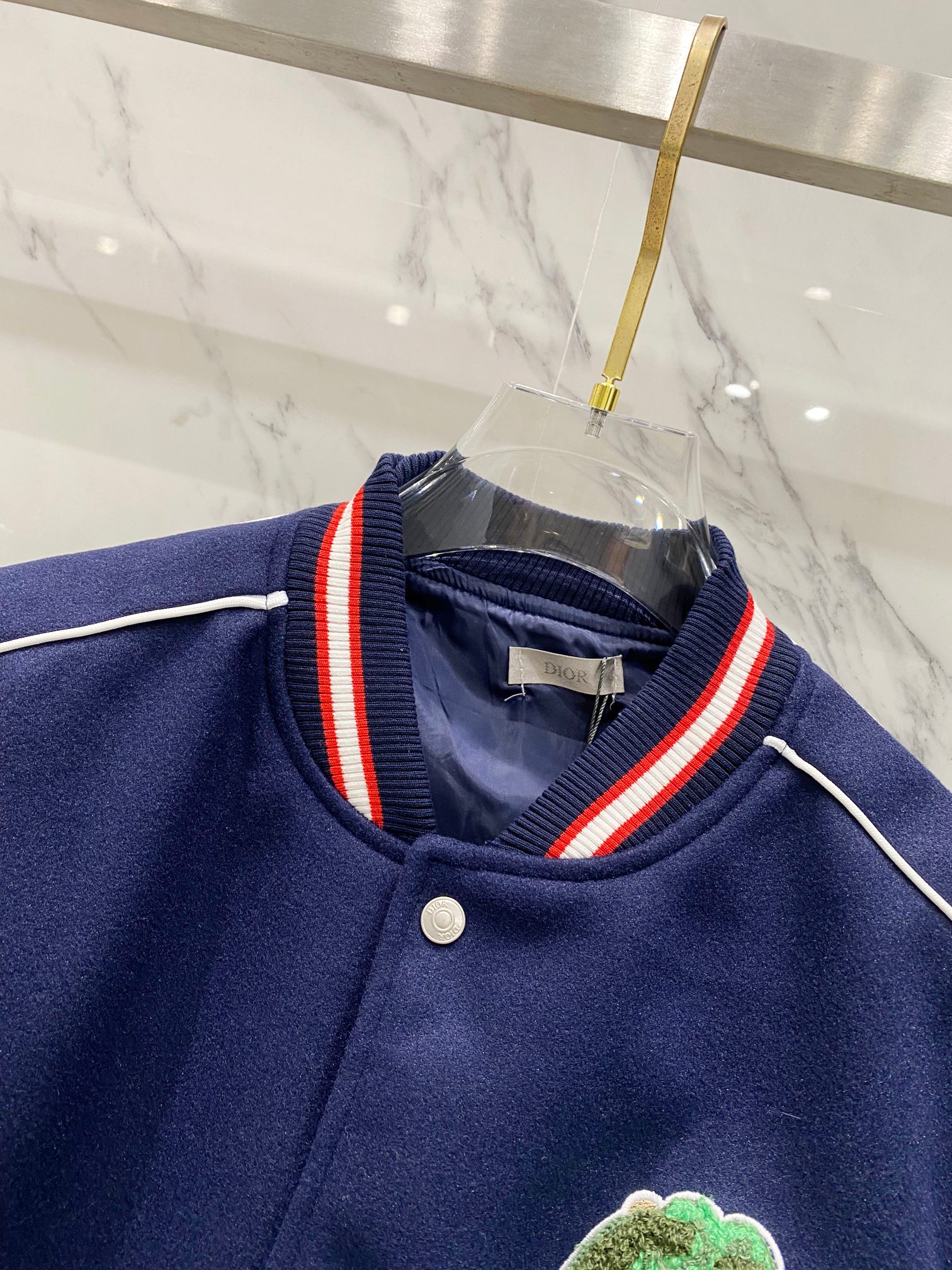 The Dior baseball jacket is a must-have for those who appreciate high fashion and unique design. Add this exclusive piece to your wardrobe to elevate your style.