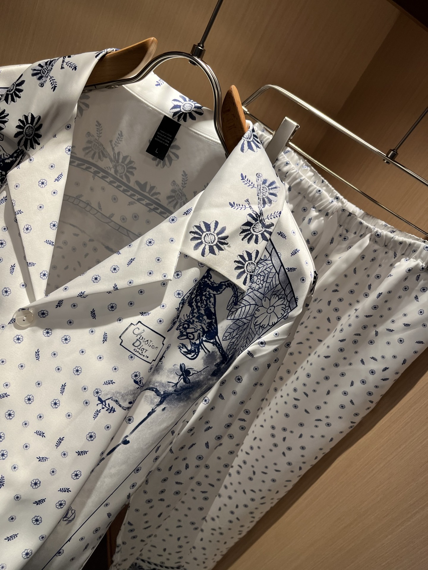 Experience ultimate luxury with this Dior silk pajama set, perfect for both men and women. High-end quality and stylish design for a restful night.