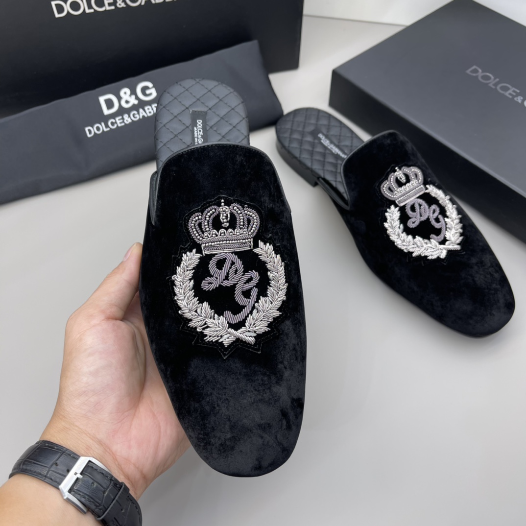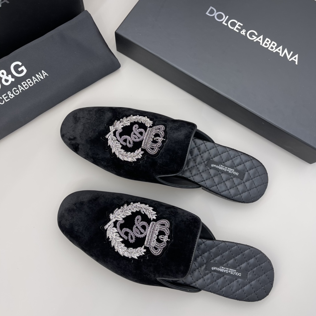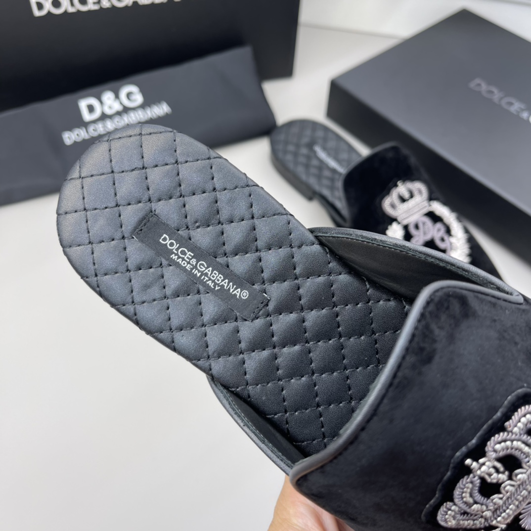 Elevate your footwear collection with these exquisite Dolce & Gabbana velvet slippers, a perfect blend of comfort and high-end fashion.