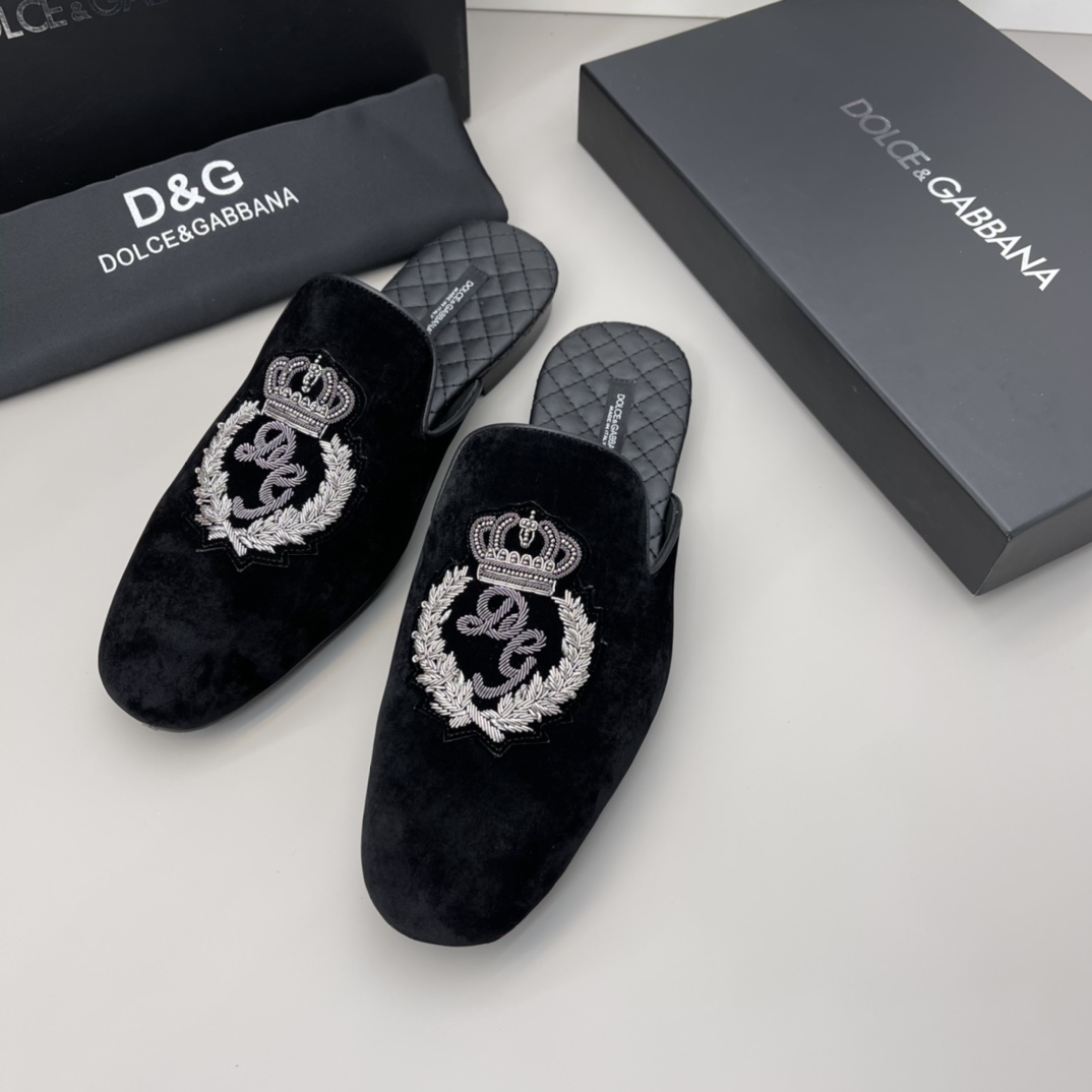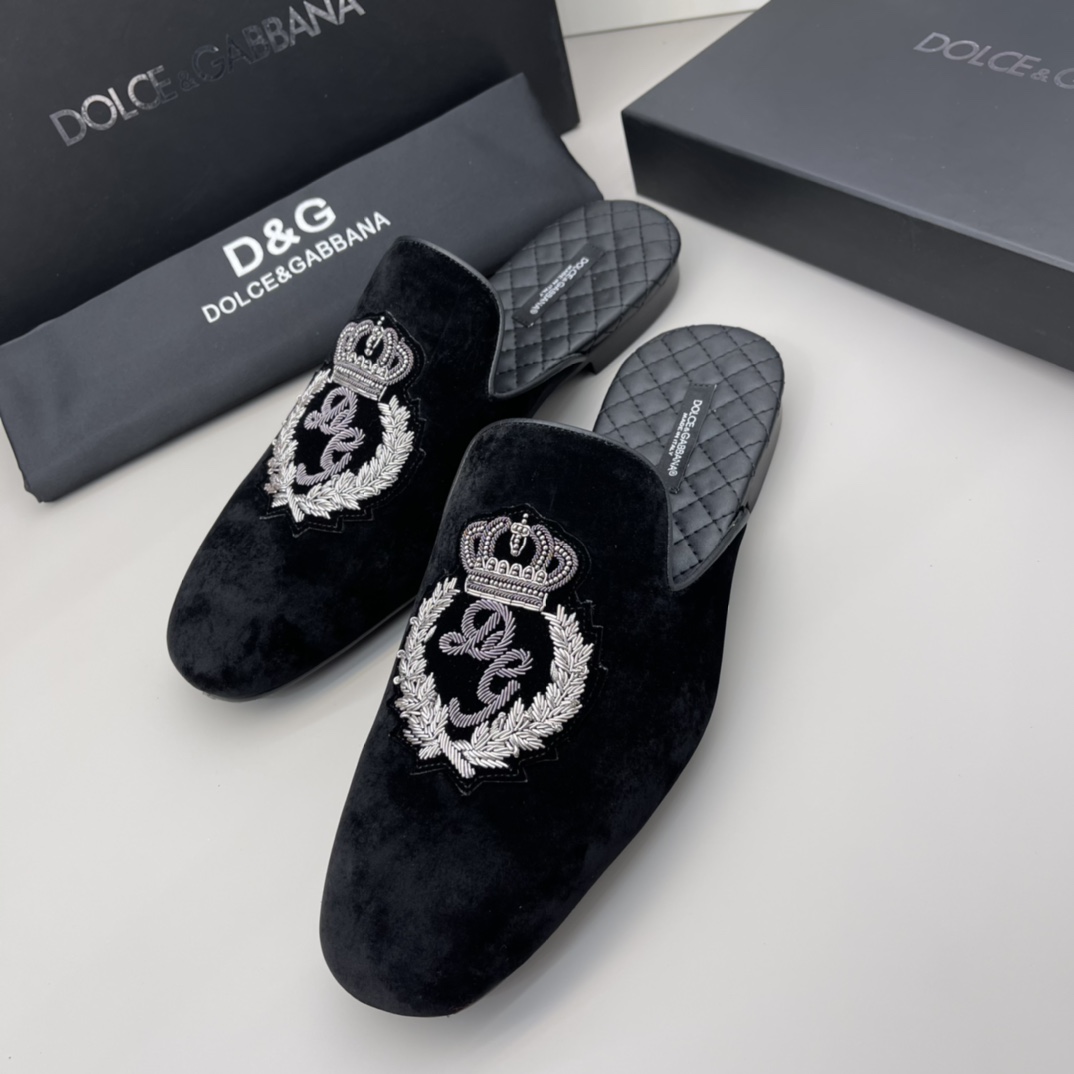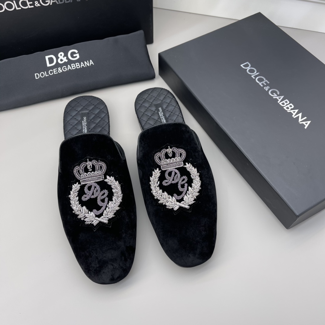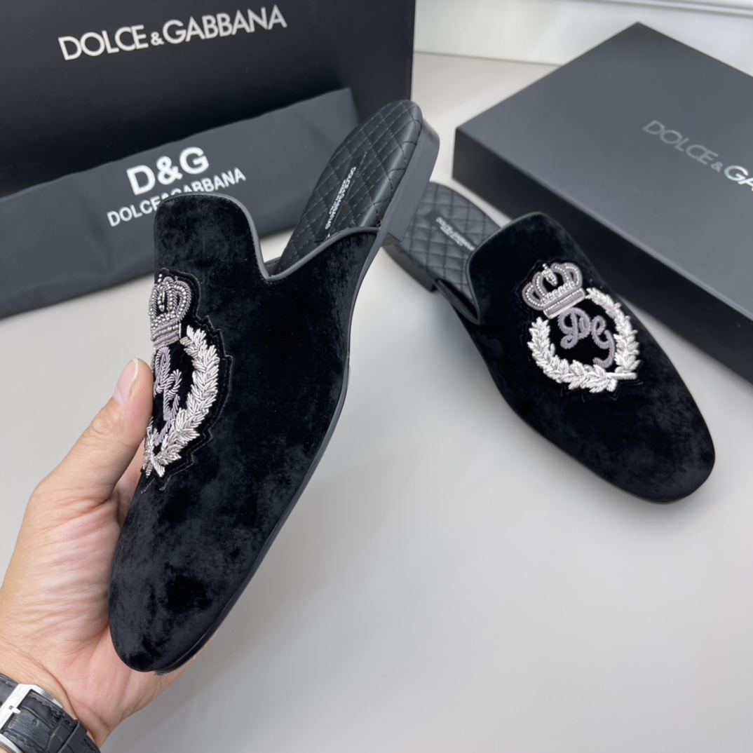 Elevate your footwear collection with these exquisite Dolce & Gabbana velvet slippers, a perfect blend of comfort and high-end fashion.