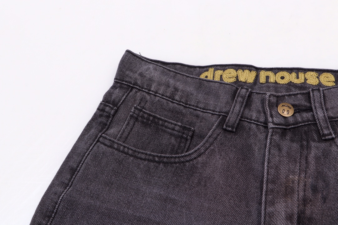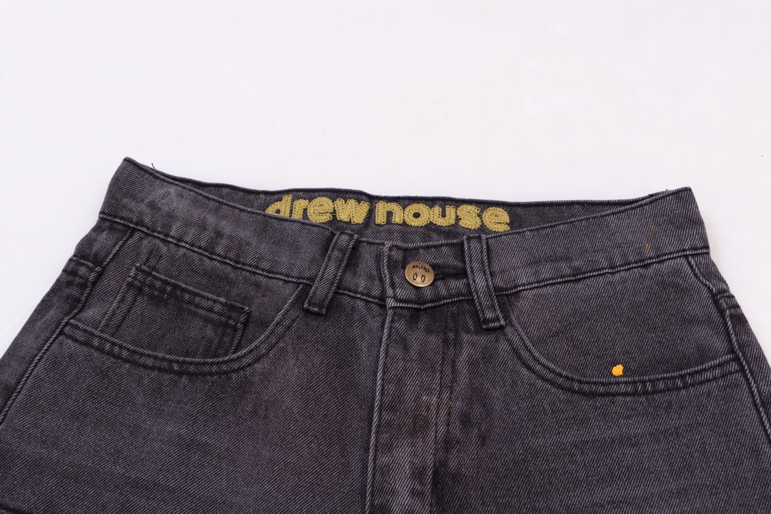 Elevate your streetwear with these Drew House denim jeans. Featuring distressed details and a trendy design, these jeans offer a fashionable and edgy look.