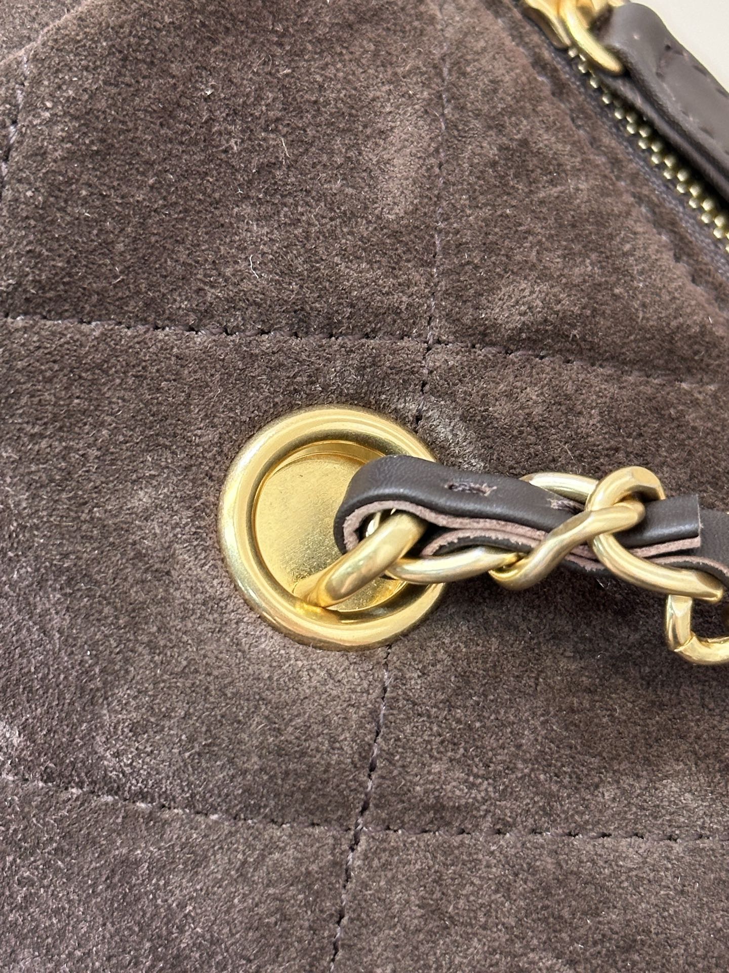 Elegant Brown Suede Shoulder Bag with Chain Detail