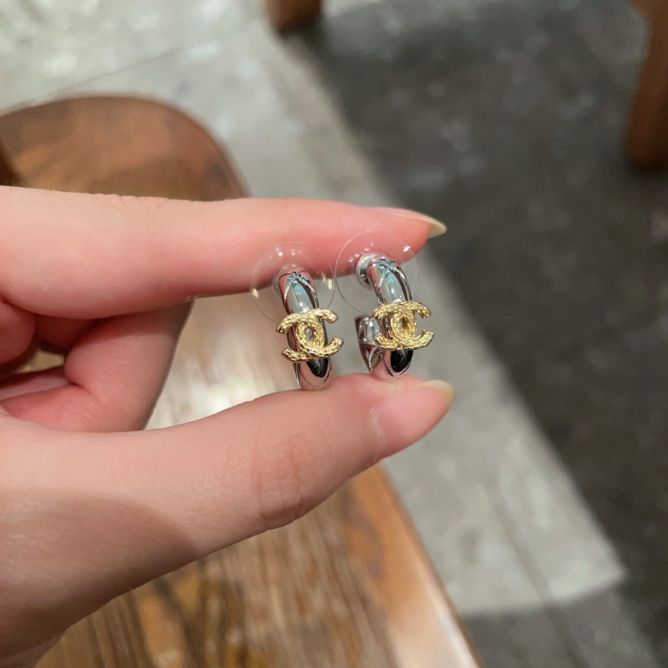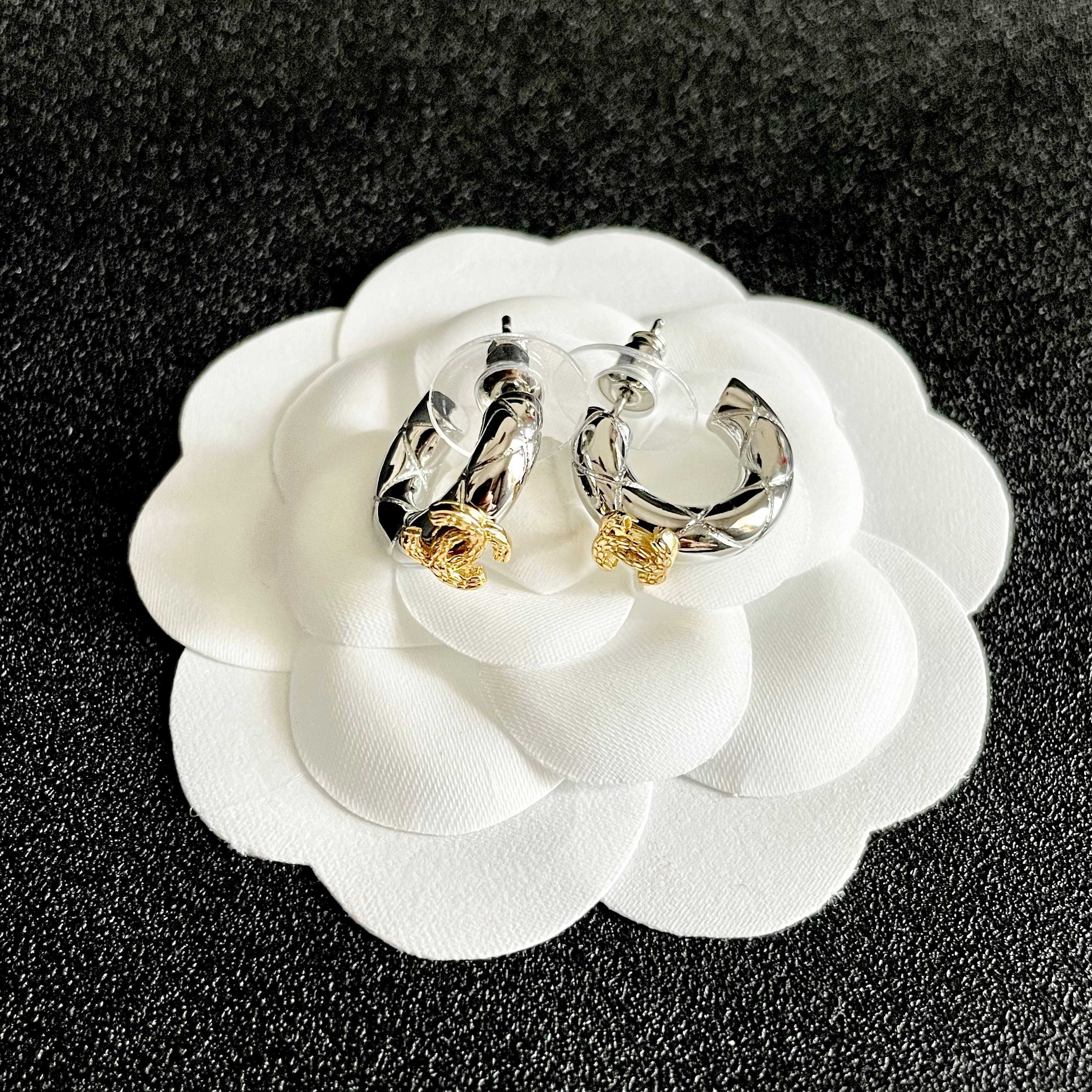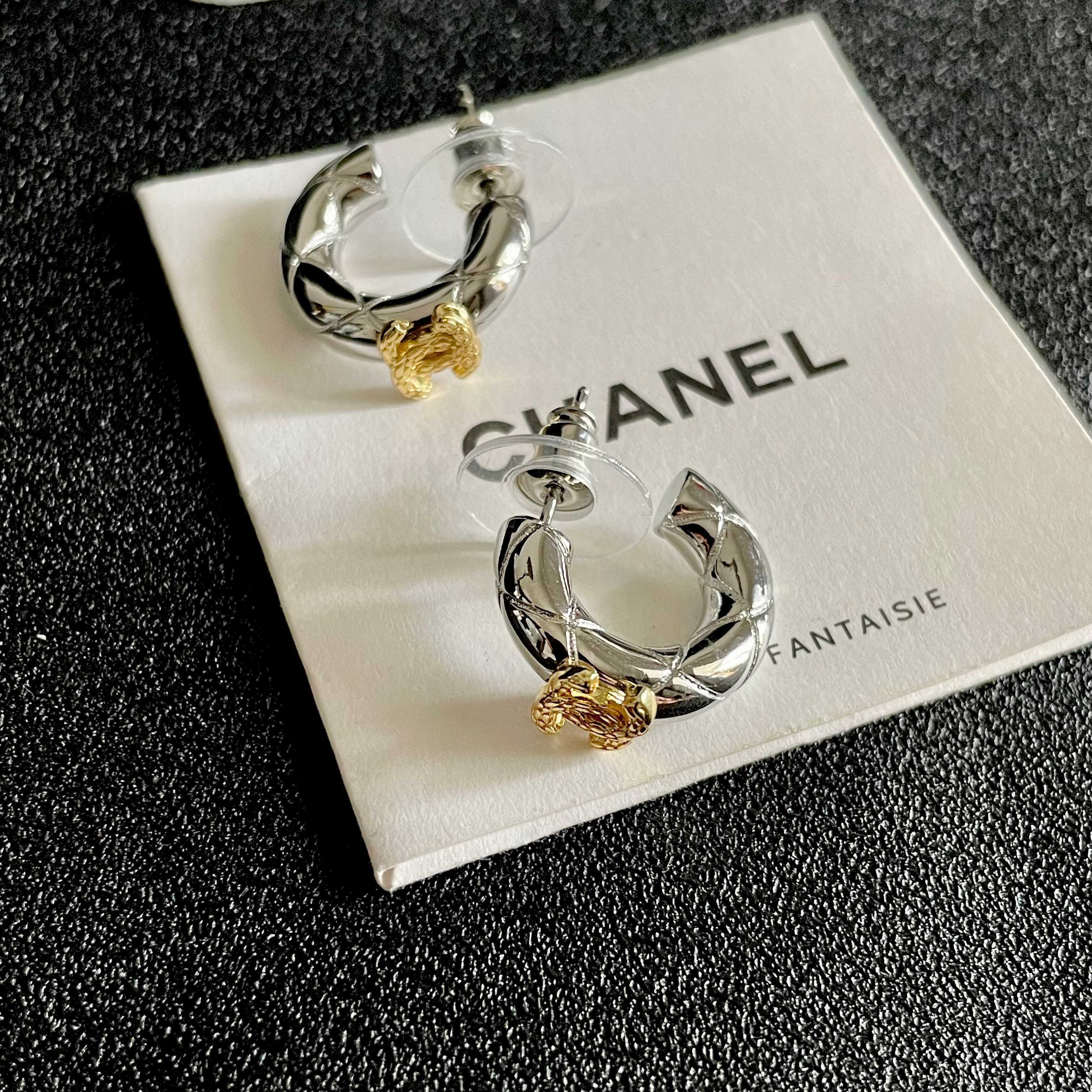 Tags: Chanel Hoop Earrings, Chanel Logo Earrings, Designer Earrings, Double C Earrings, Gold Hoop Earrings, Luxury Earrings