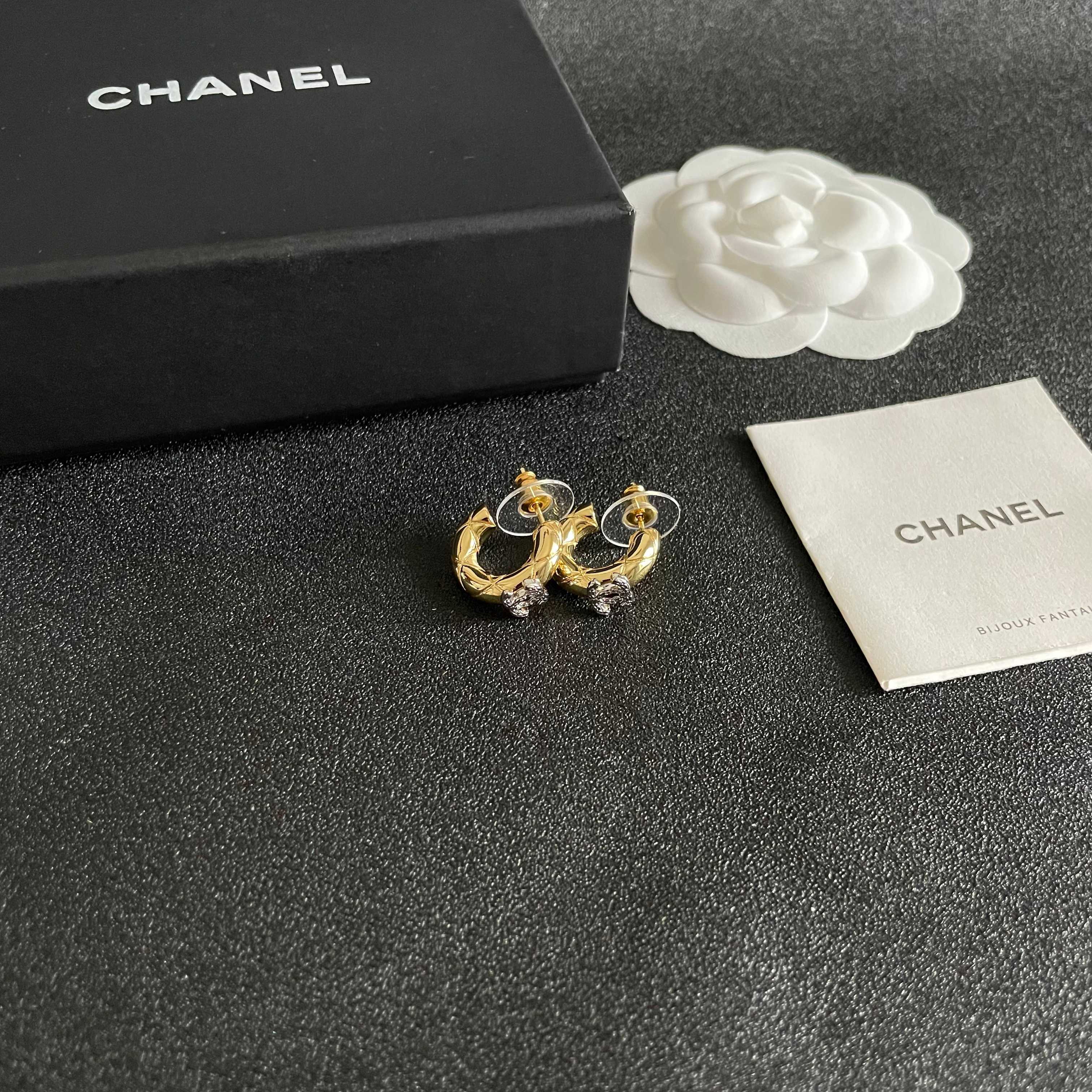 Add a touch of classic style to your look with these gold-tone hoop earrings featuring the iconic CC logo. Perfect for any occasion.