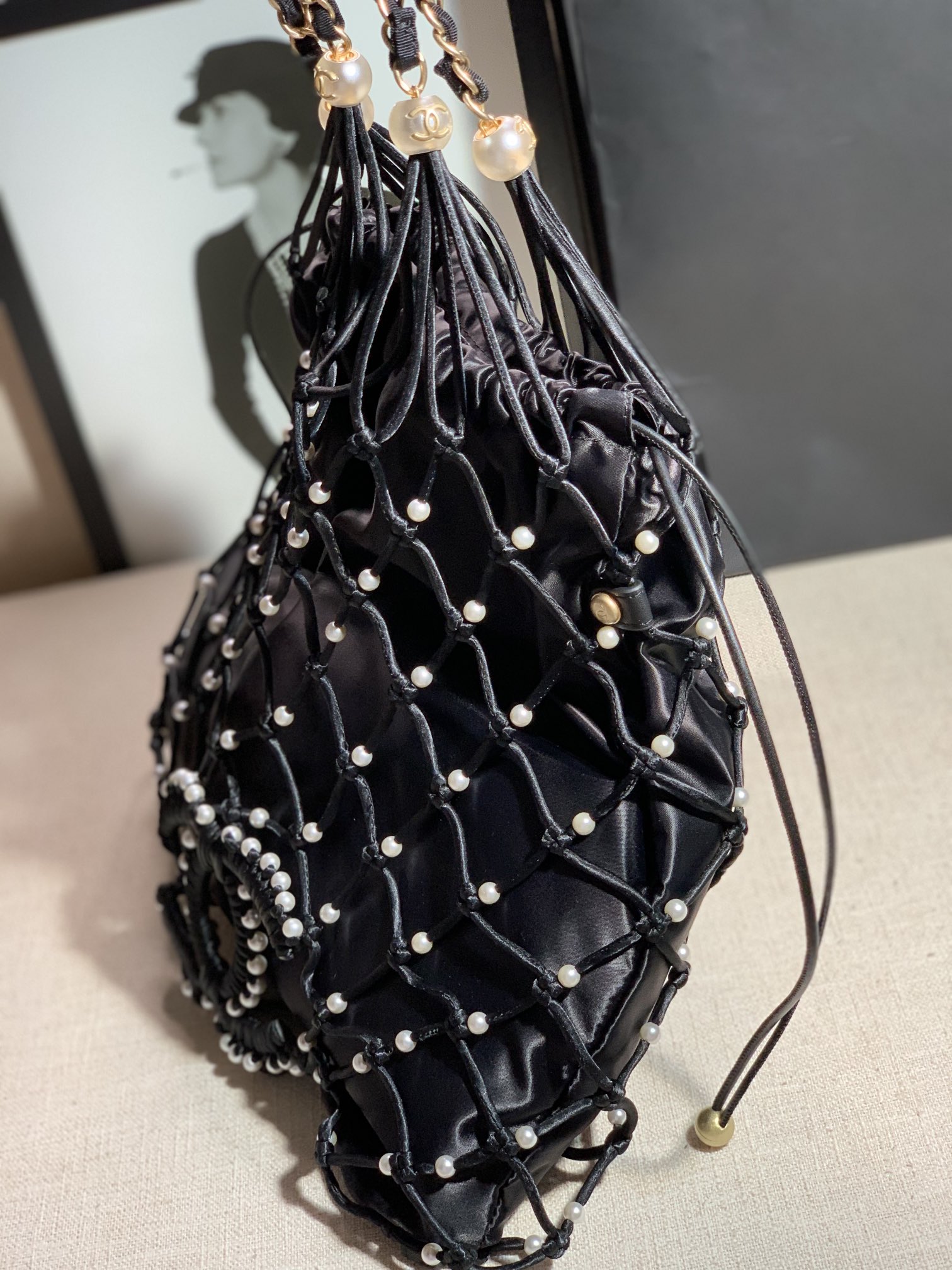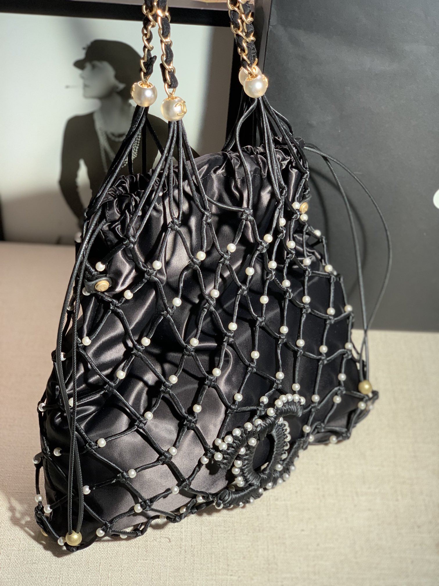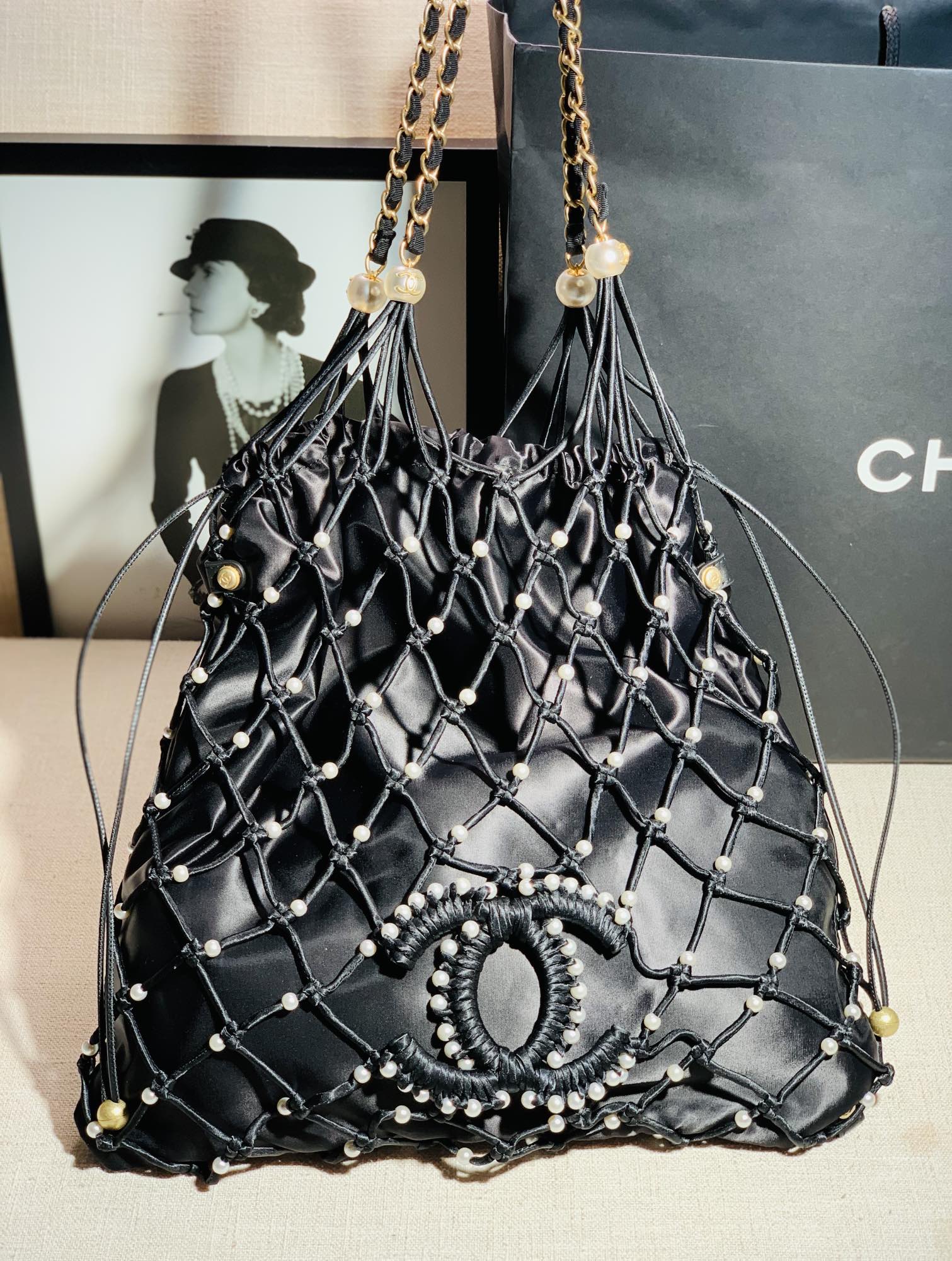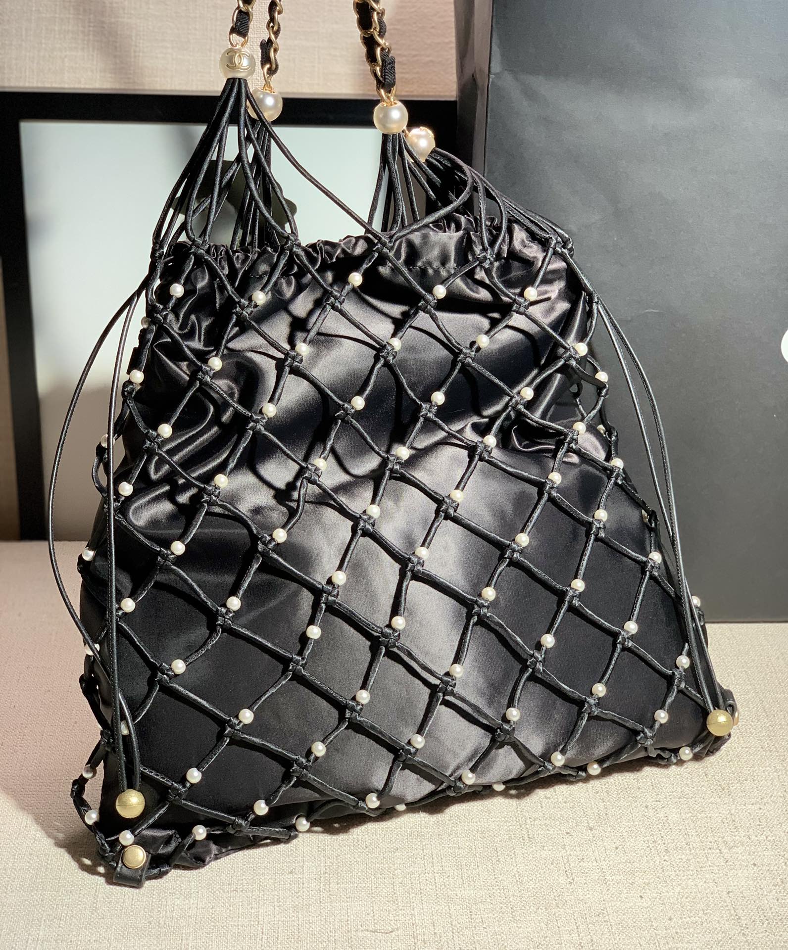 Tags: Designer Inspired Bag, Elegant Handbag, Fashionable Tote, Handcrafted Net Bag, Lightweight Tote, Pearl Tote Bag