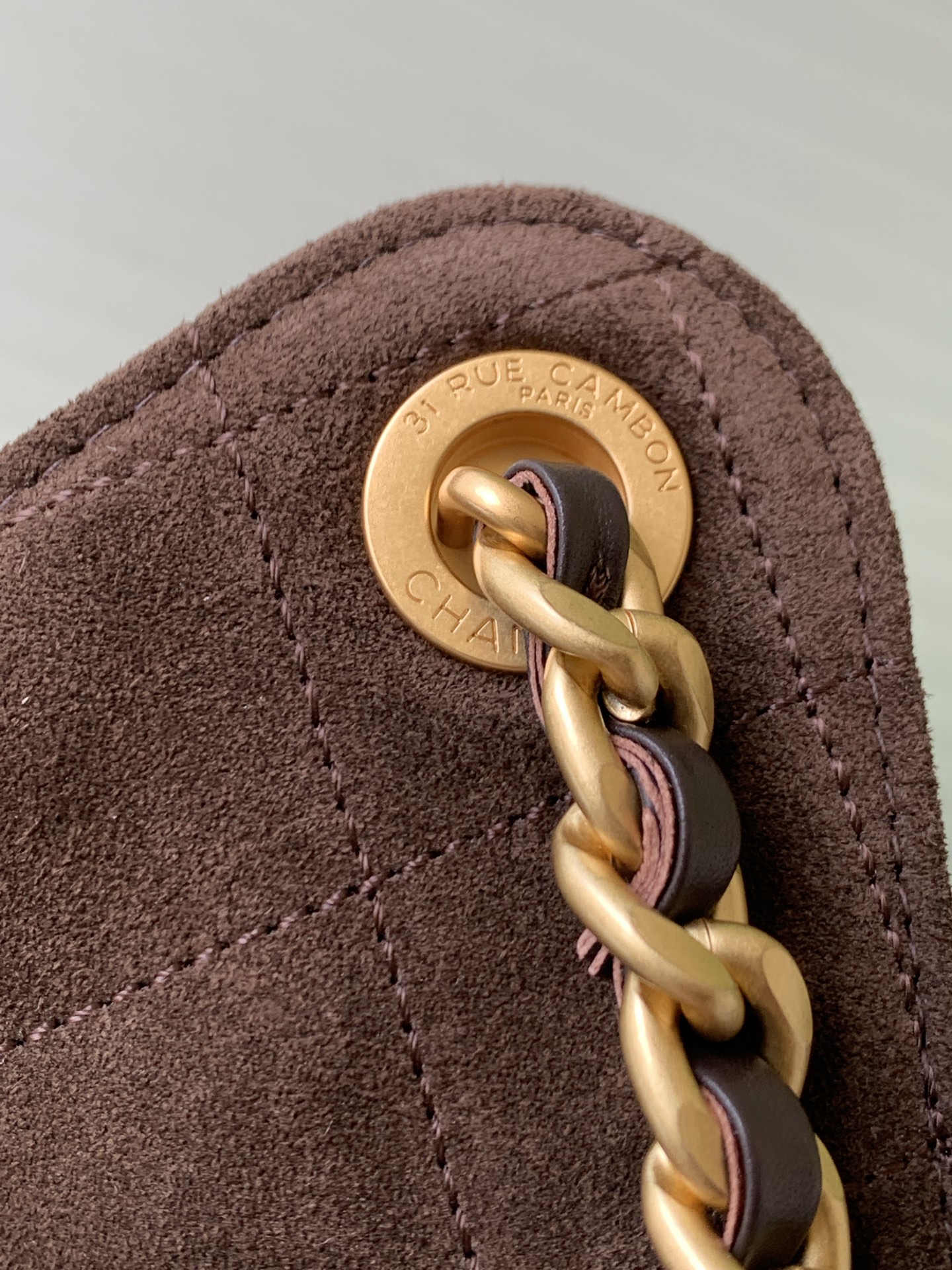 Tags: Drawstring Shoulder Bag, Gold Chain Bag, Quilted Bucket Bag, Suede Bucket Bag, Vintage Coin Bag