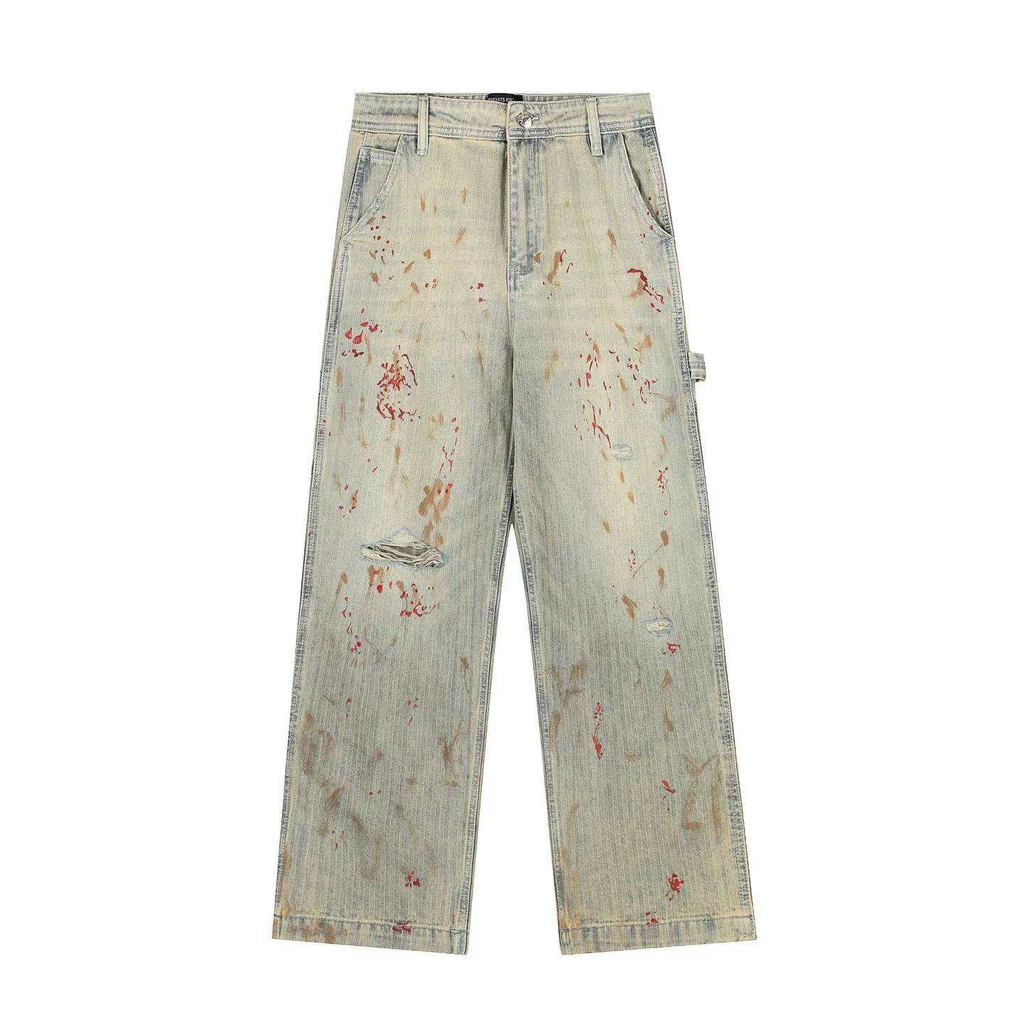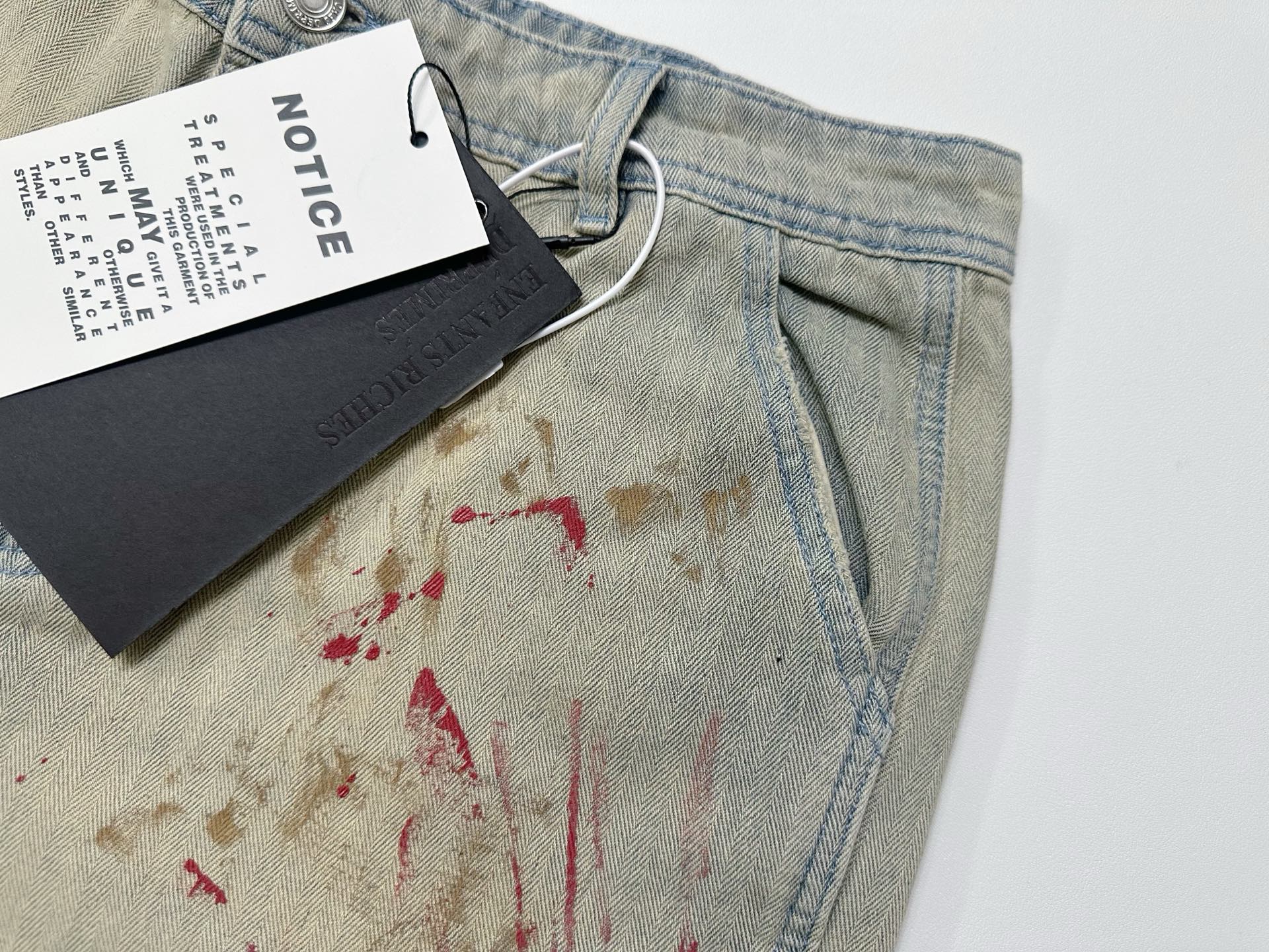 Elevate your style with these Enfants Riches Deprimes jeans, featuring a unique bloodstain design, distressed details, and a relaxed fit.