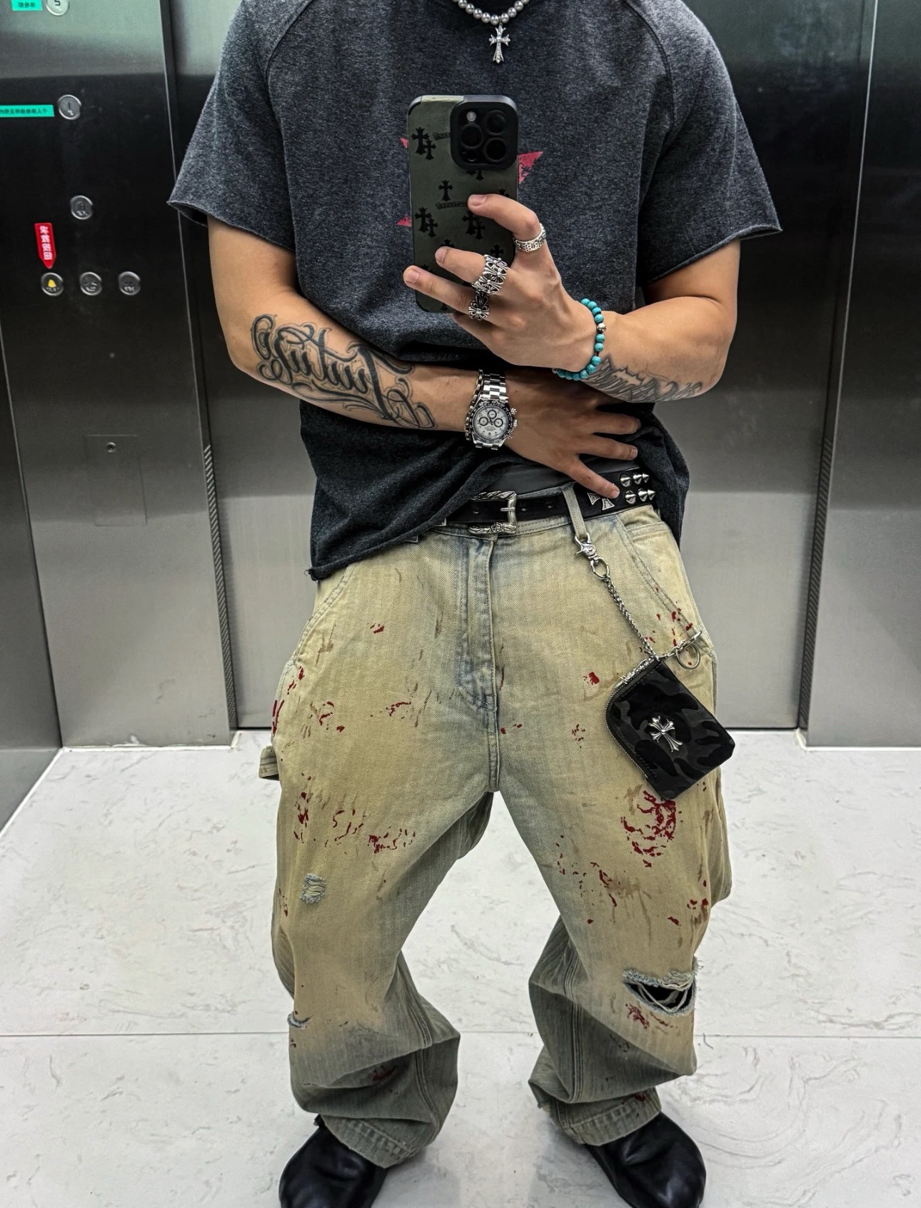 These Enfants Riches Déprimés jeans redefine casual wear with their unique design and rugged appeal.