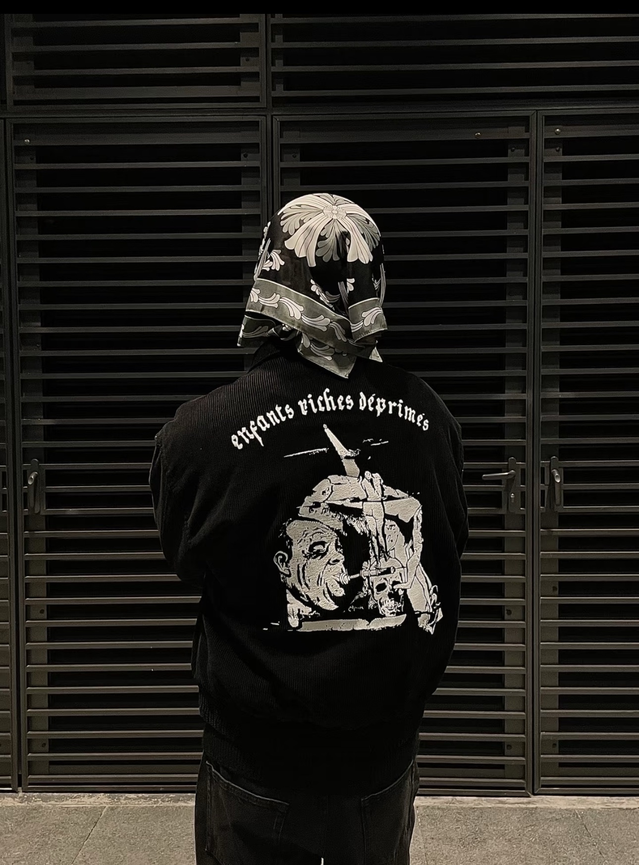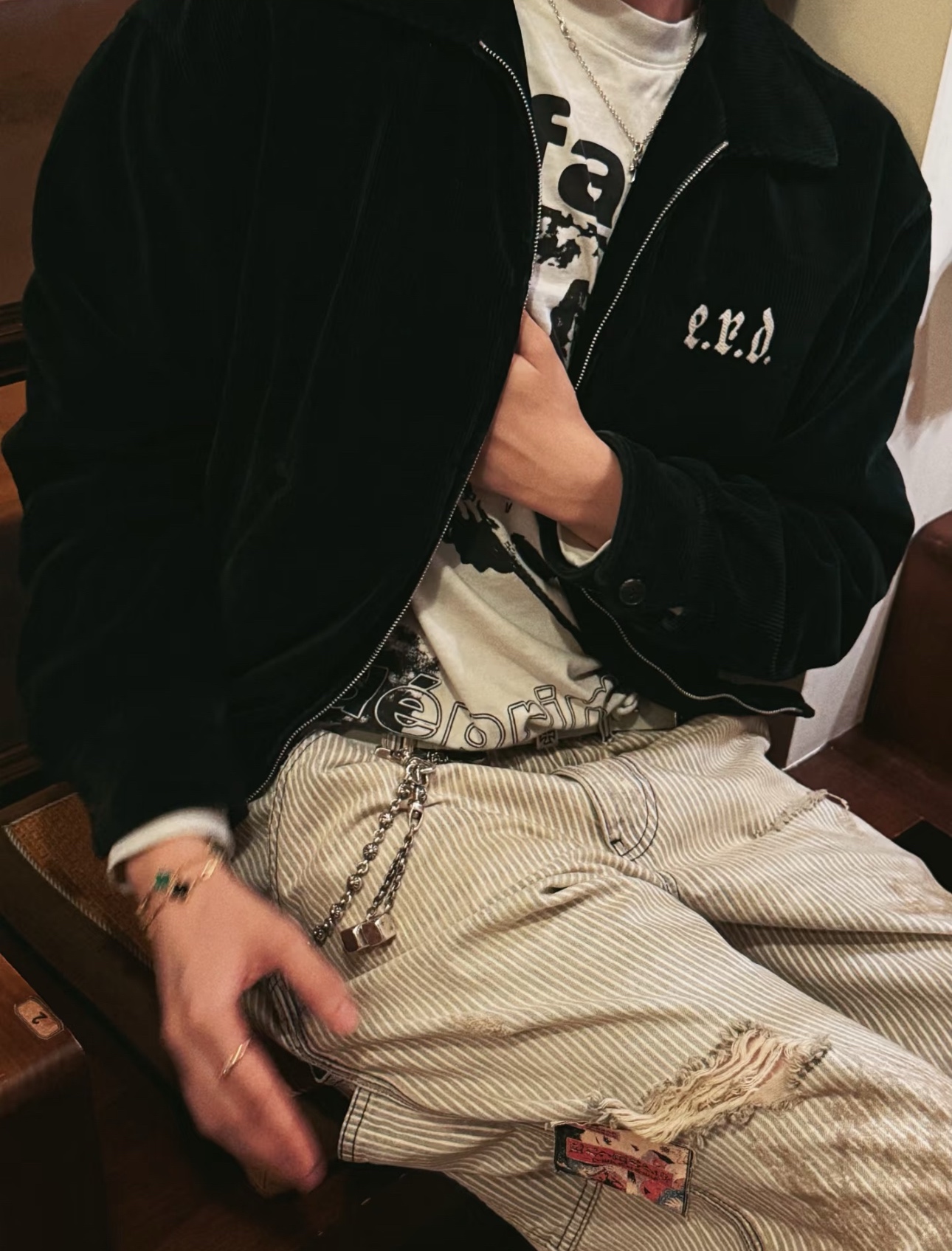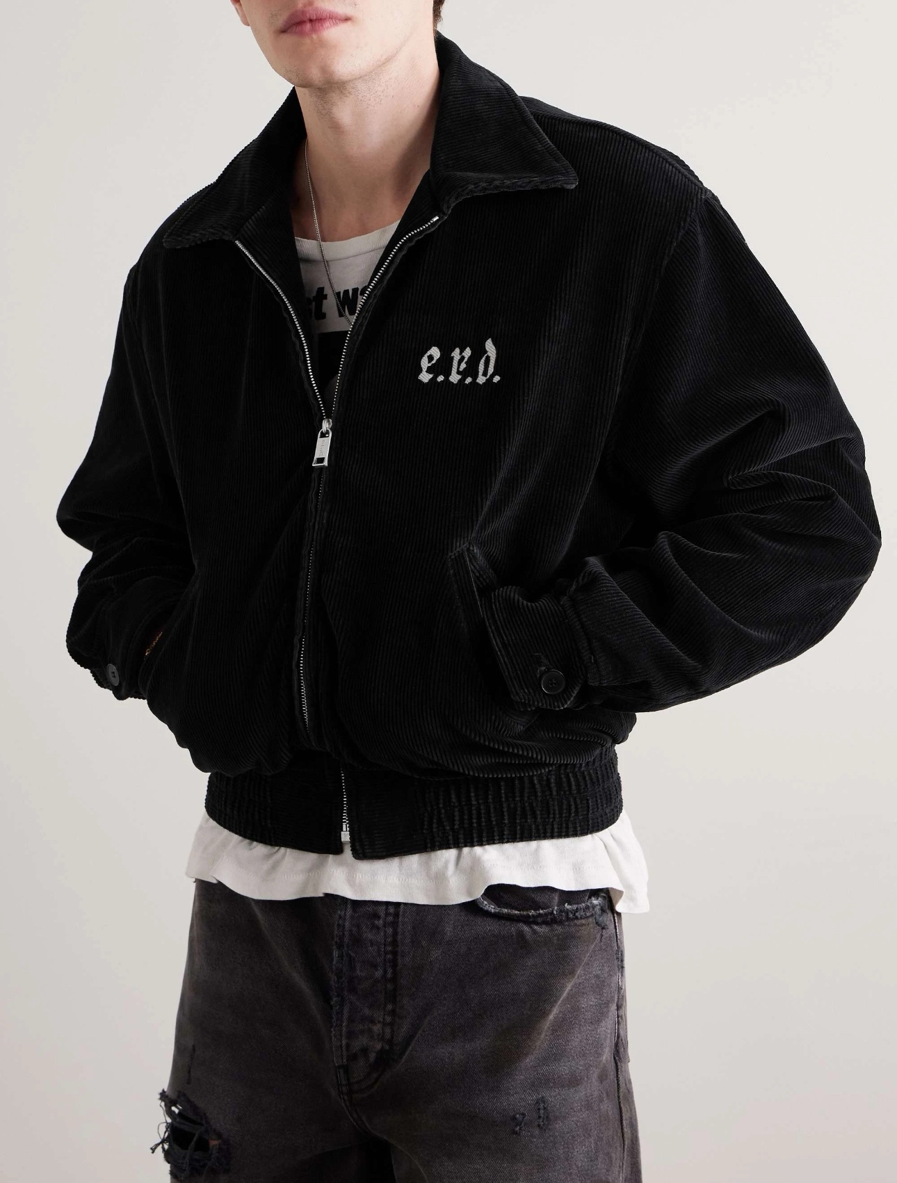 This ERD corduroy jacket is a stylish blend of vintage aesthetics and modern design. The jacket features unique embroidery and a comfortable fit, making it a standout piece for any wardrobe.