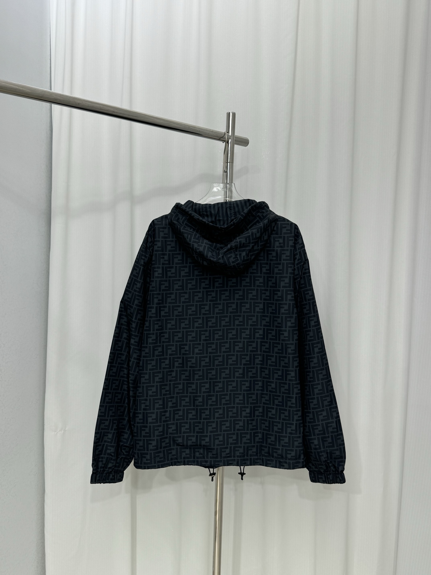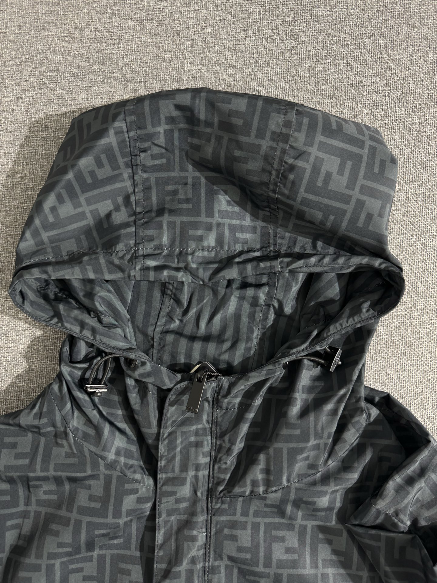 Fendi FF Jacquard Hooded Jacket Black Nylon Twill Protective Cloth