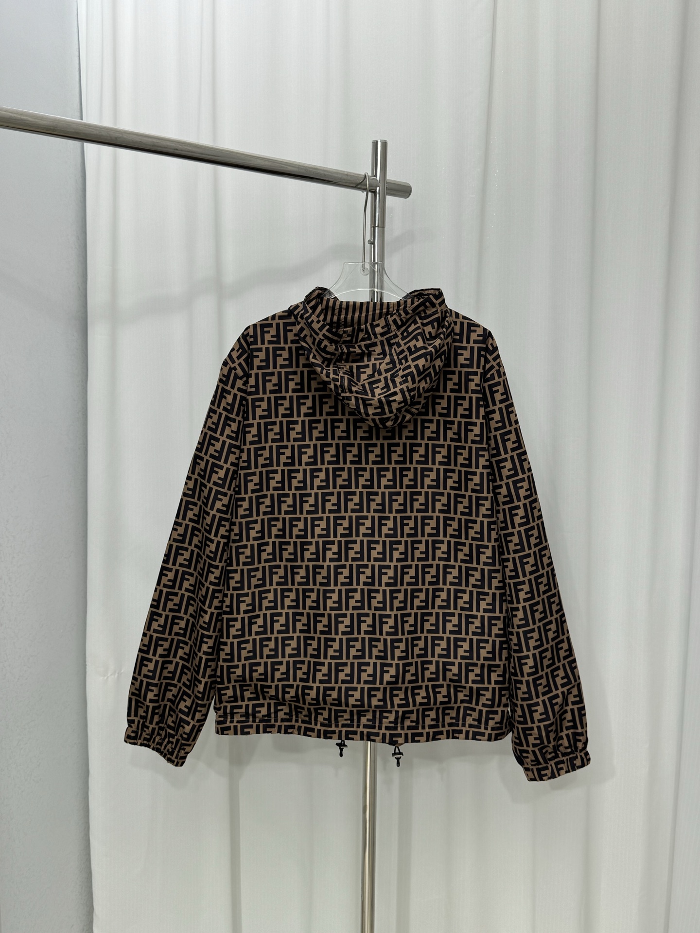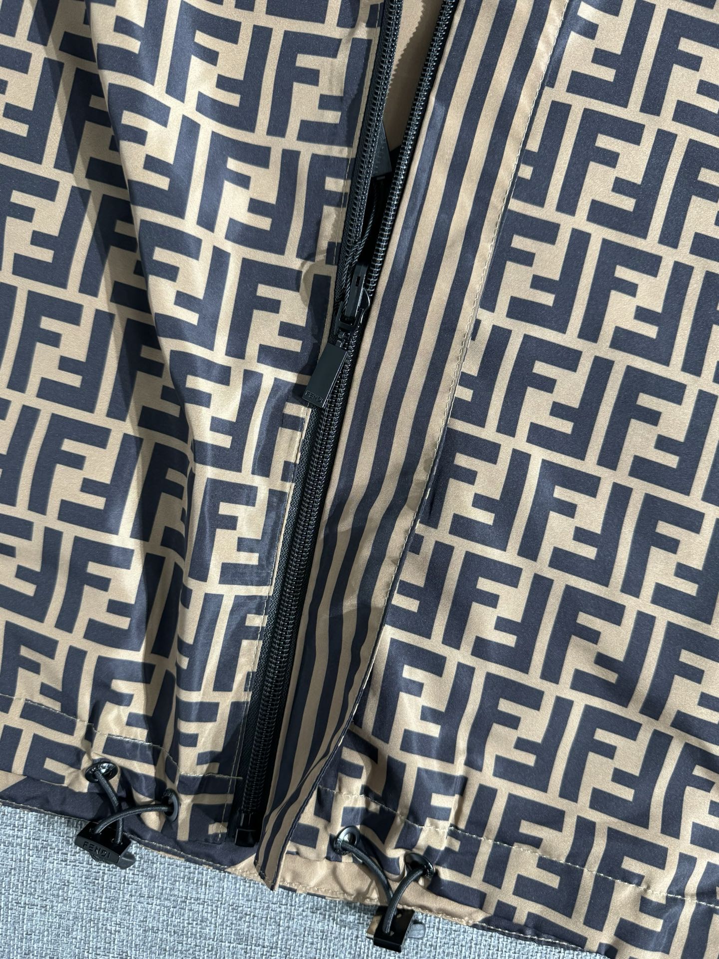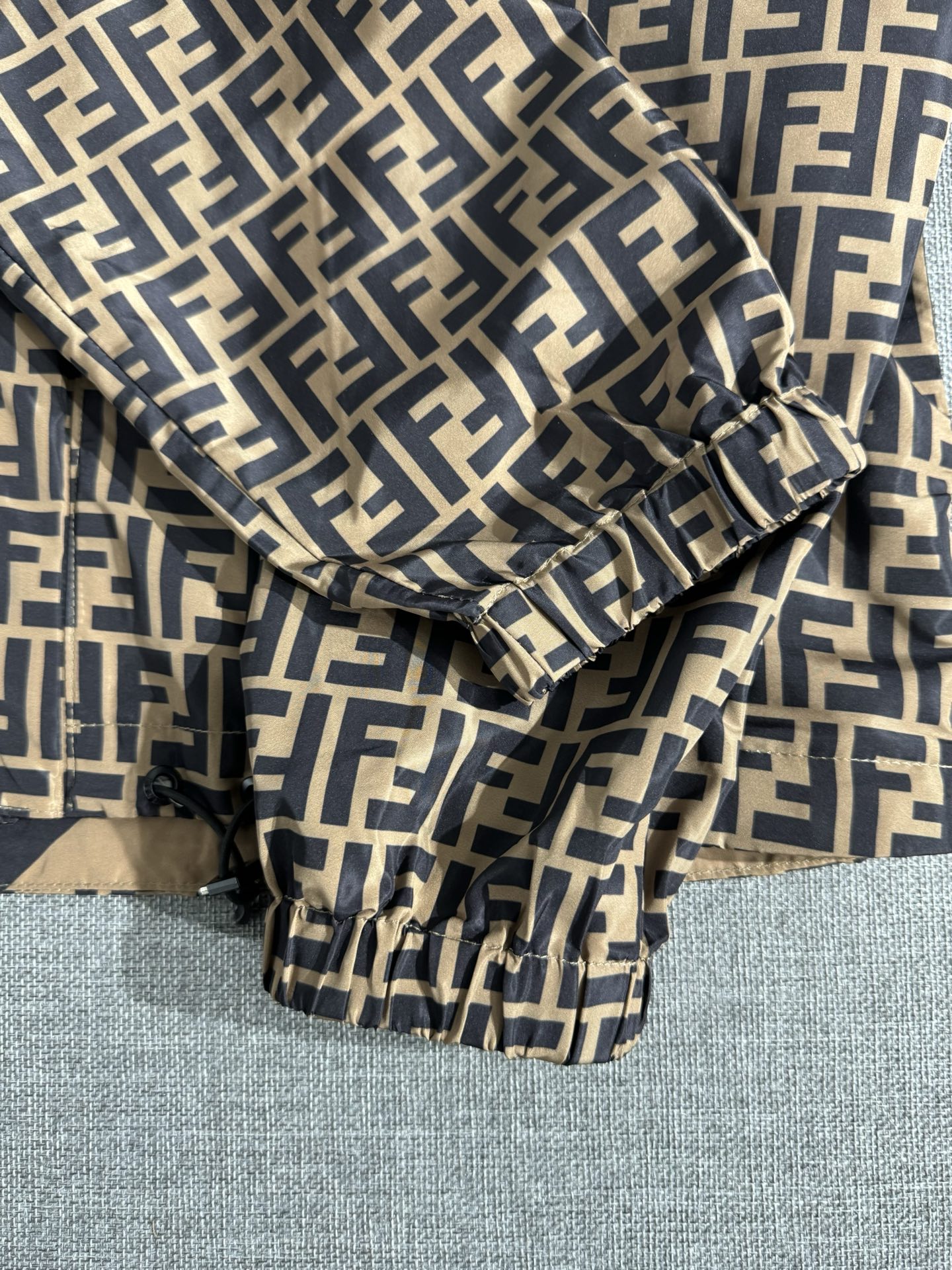 Stay warm and stylish with this reversible Fendi jacket featuring the iconic FF motif. Perfect for both men and women.
