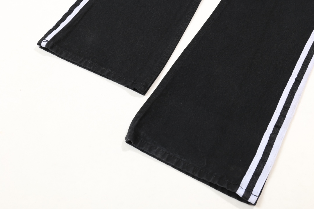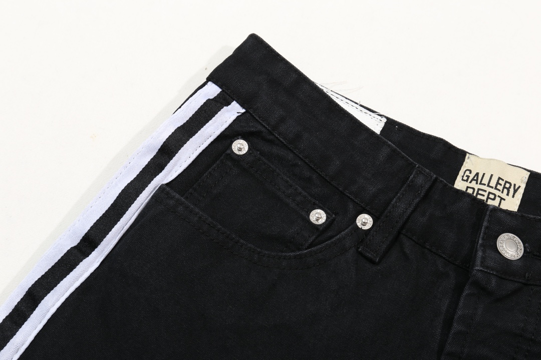 Gallery Dept. Black Flare Jeans with White Stripes - Unisex Mid-Waist Denim