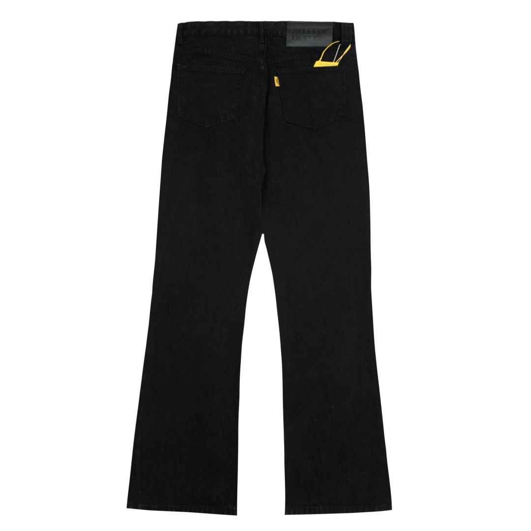 These Gallery Dept. black flare jeans are a stylish and versatile addition to any wardrobe. Made from high-quality, washed cotton denim, these jeans offer both comfort and durability, making them suitable for everyday wear.