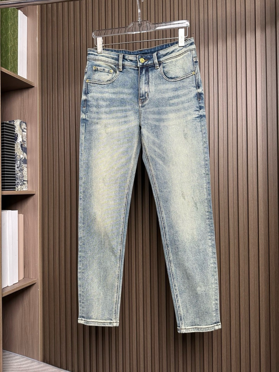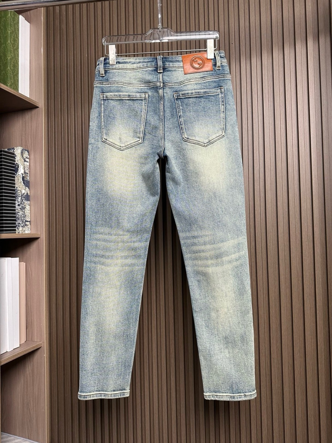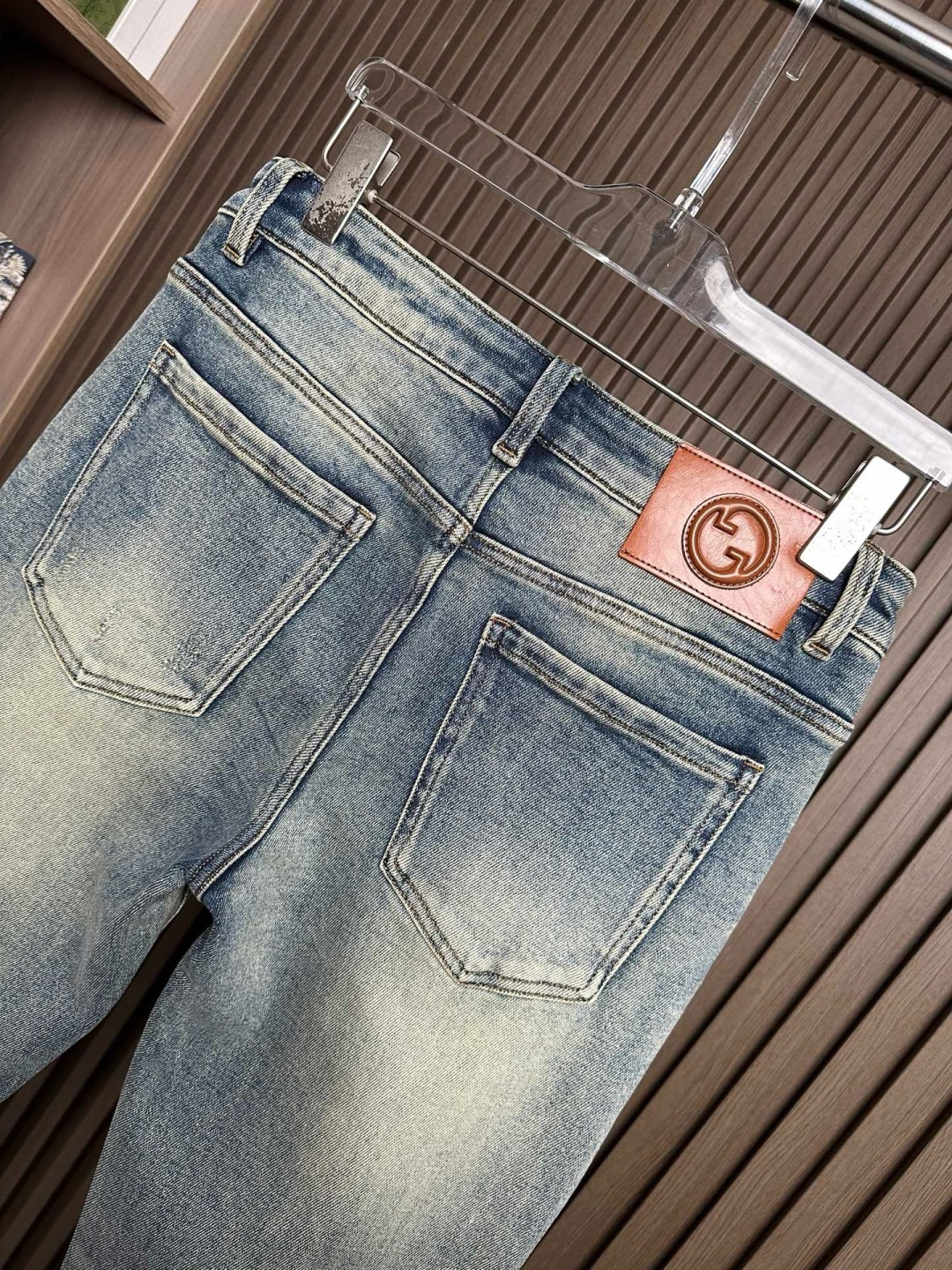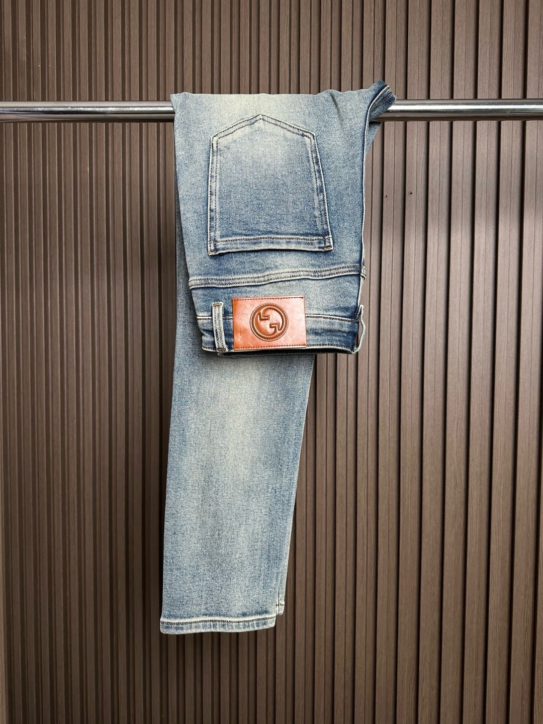 These Gucci jeans are a must-have for any fashion-forward man. The light wash and slim-fit design offer a modern and stylish look that can be dressed up or down.
