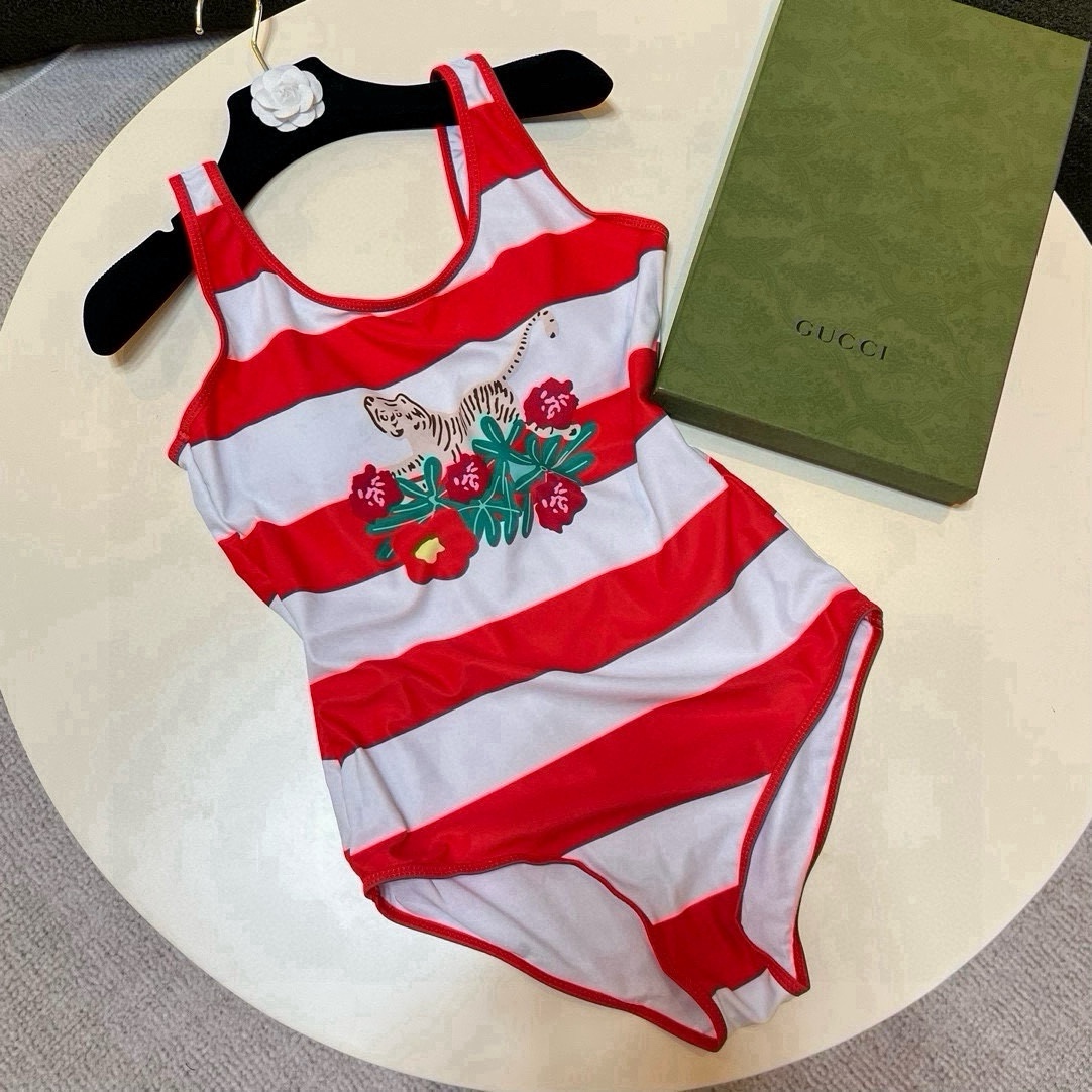 Gucci Striped Swimsuit with Tiger and Floral Design - Beach Ready