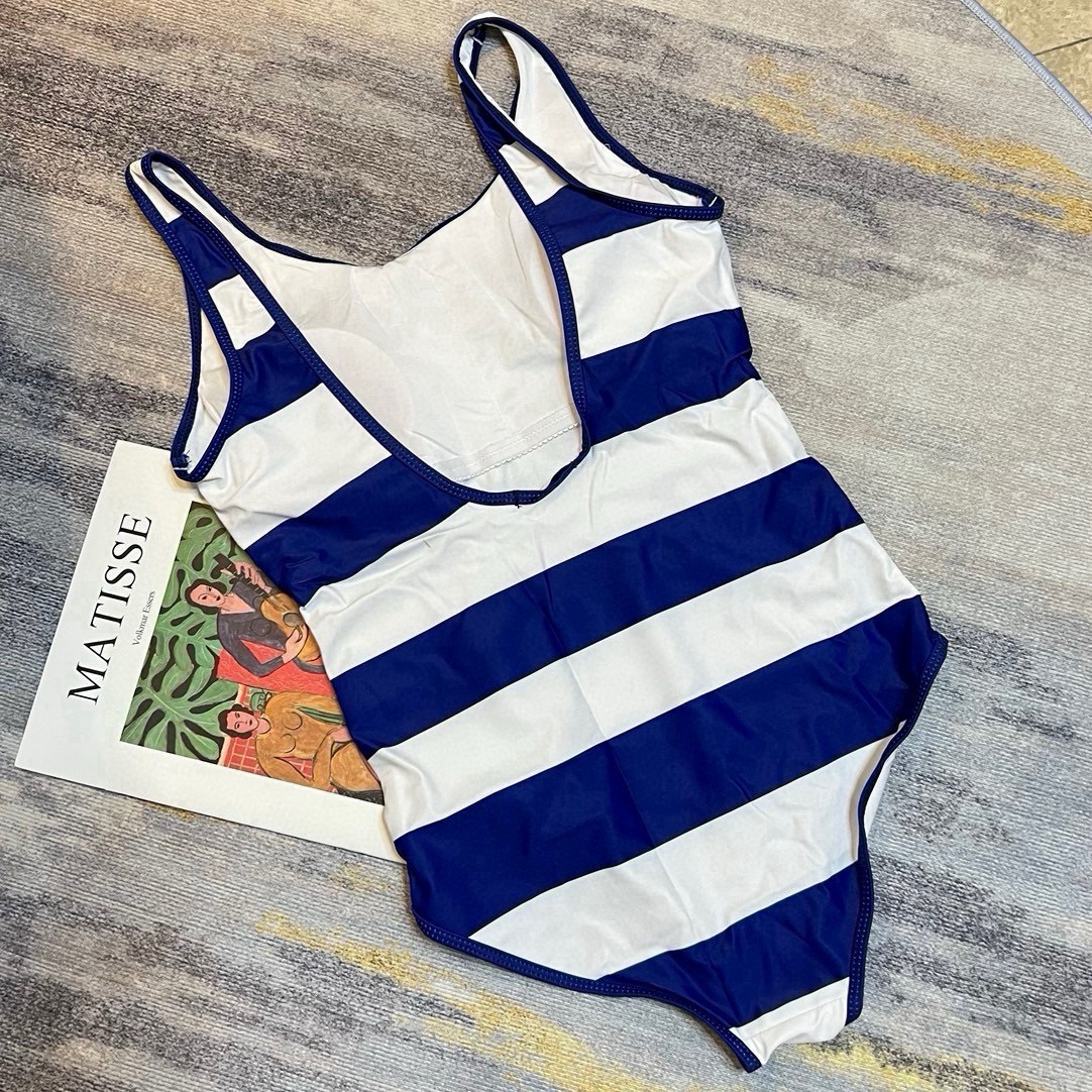 This swimsuit is beautiful and fits perfectly. I feel so confident wearing it. The striped design is very flattering, and the Gucci quality is evident.
