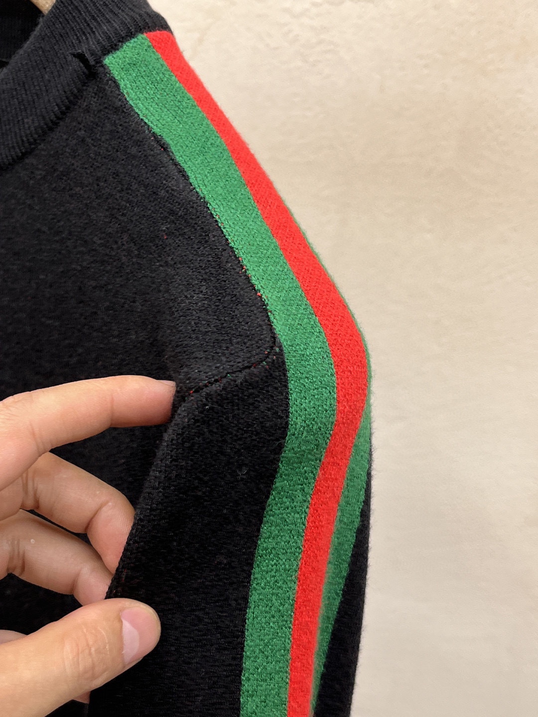 Tags: Classic Sweater Design, Designer Crewneck Pullover, Gucci Wool Sweater, Logo Detail Sweater, Luxury Knitwear, Wool Blend Sweater
