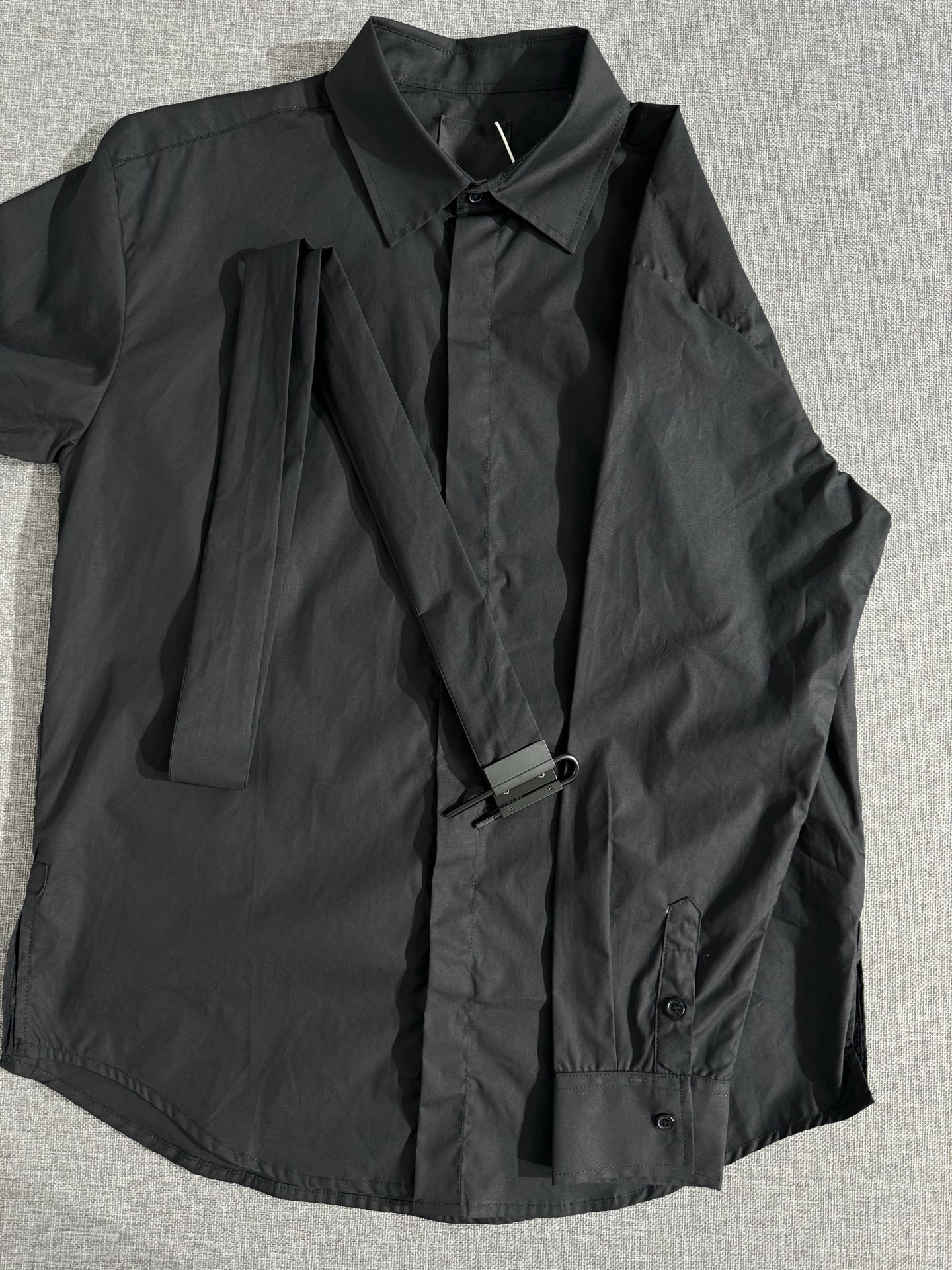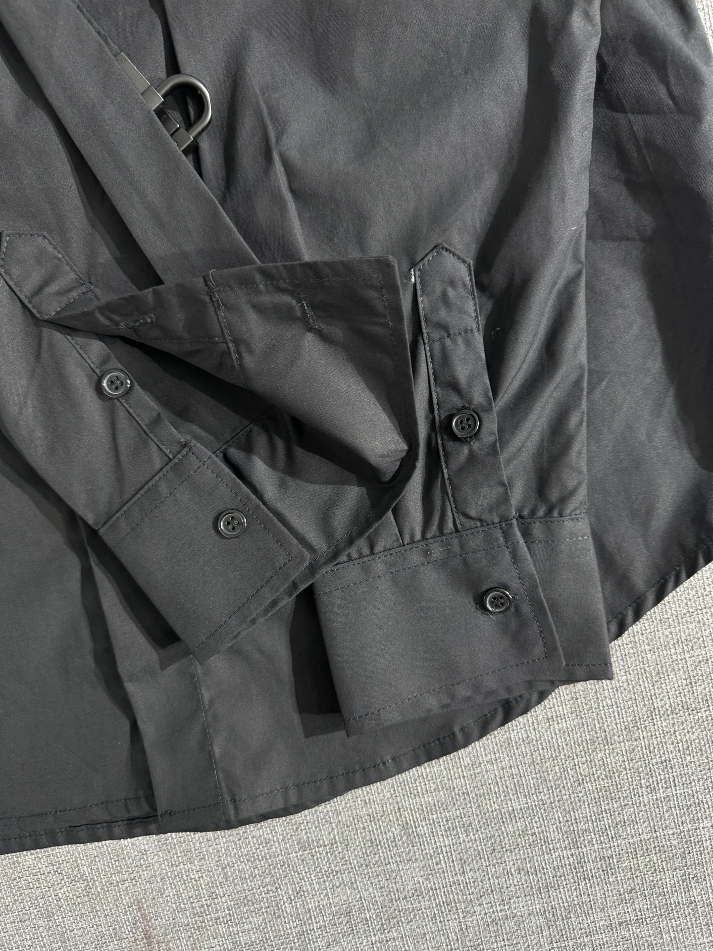 Tags: Black Cotton Shirt Men, Bronze Hardware Shirt, Designer Long Sleeve Shirt, Givenchy Long Sleeve Shirt, Luxury Men's Shirt, Stylish Black Shirt