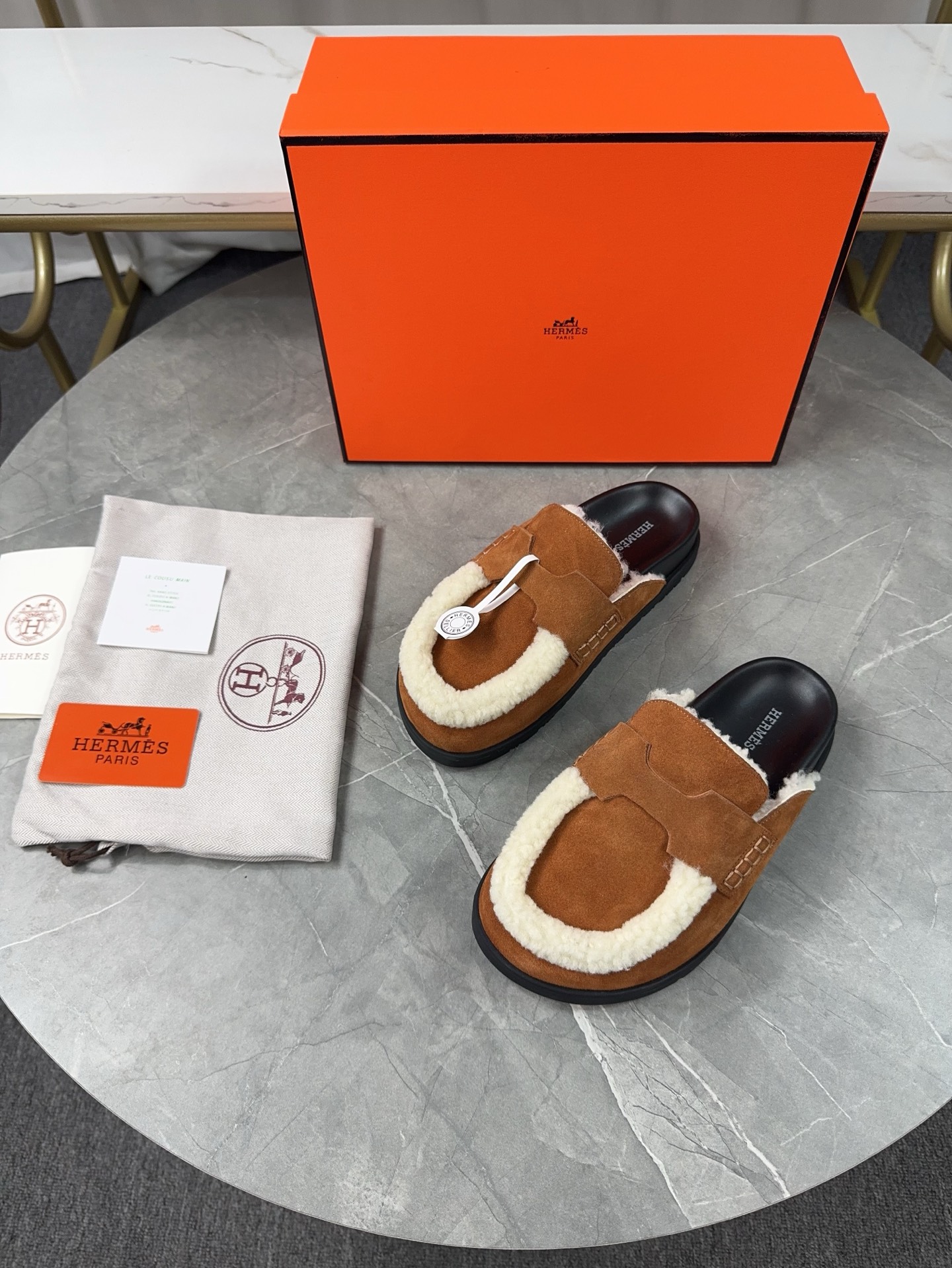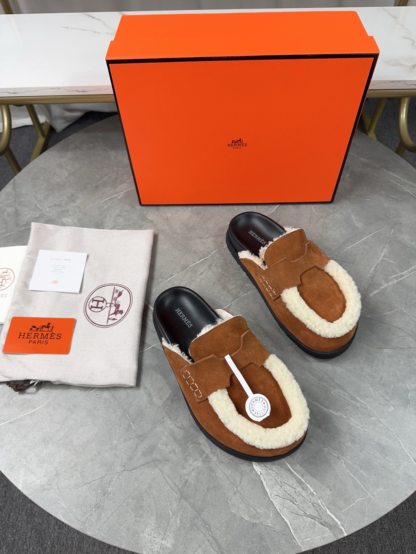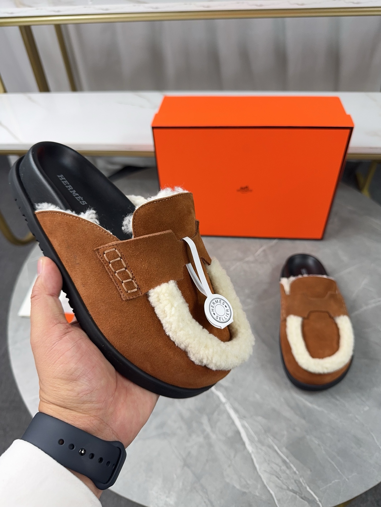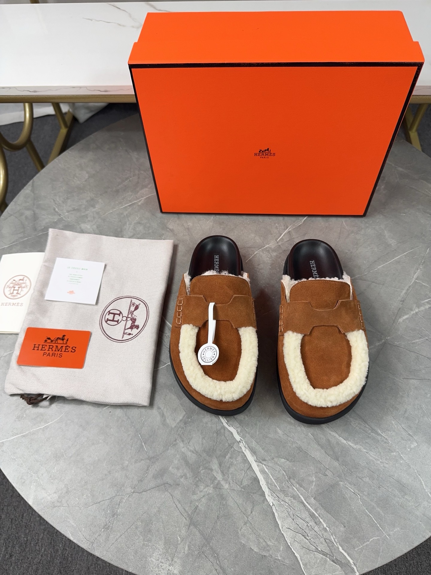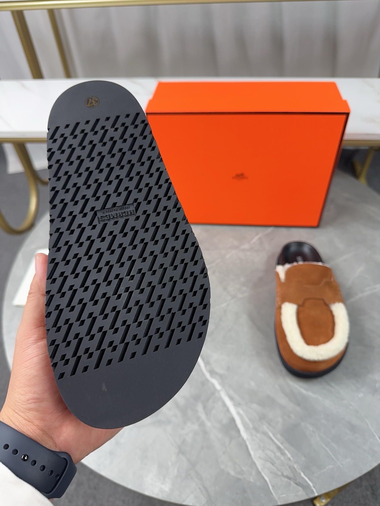 Step into summer with Hermès Birken Mules. These chic slides boast a cozy suede upper, plush shearling lining, and durable TPU sole for ultimate comfort and style.