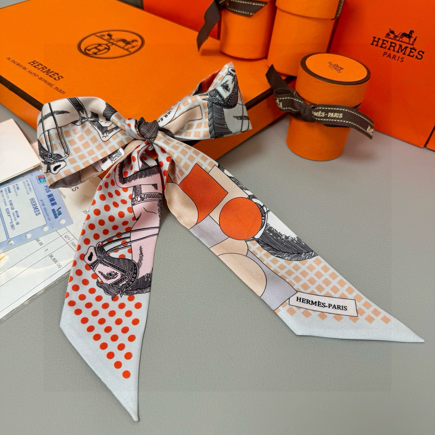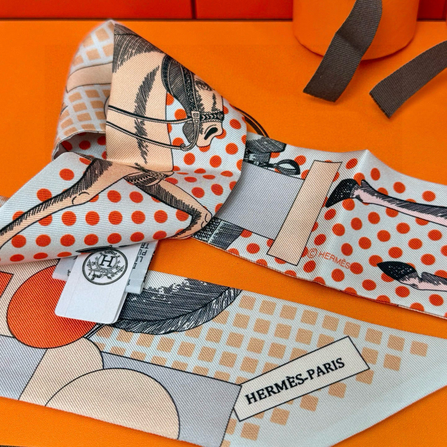 Tags: Designer Silk Scarf, Elegant Silk Accessory, French Made Scarf, Hermes Twilly Scarf, Horse Print Scarf, Silk Twilly Scarf