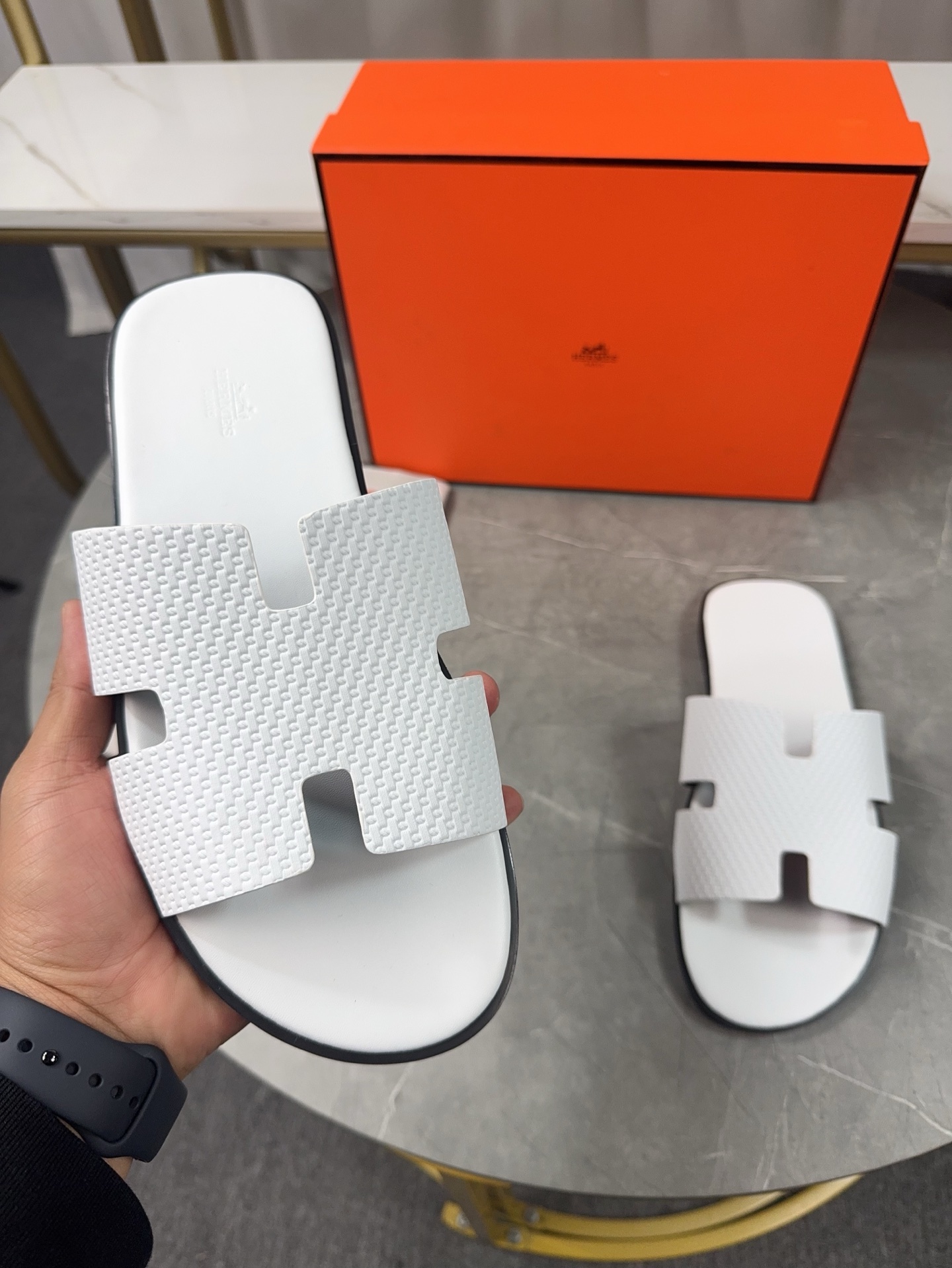 Tags: Classic H Design Slippers, Handmade Leather Sandals, Hermes Men's Sandals, Leather H Slides, Luxury Men's Footwear