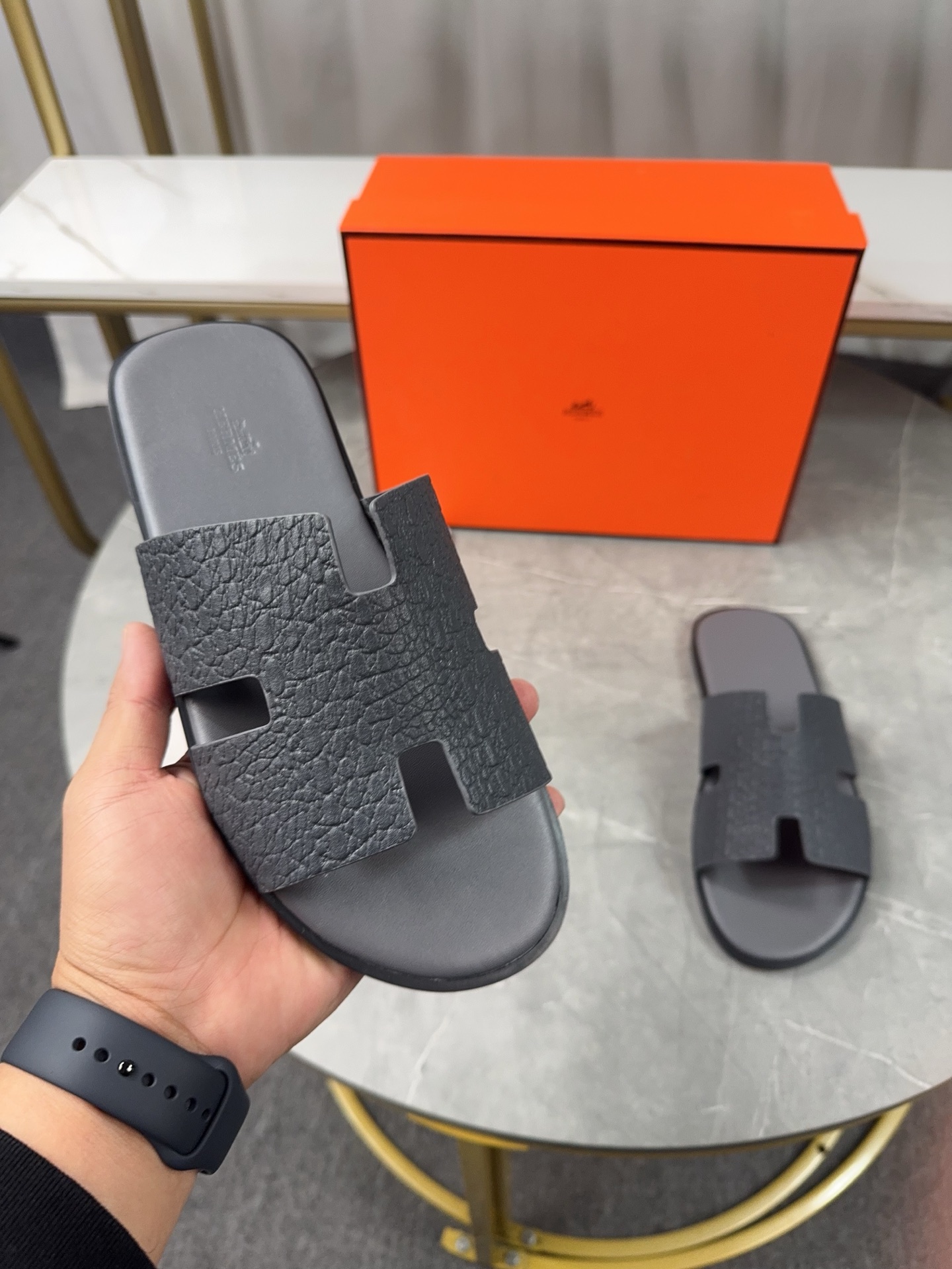 Tags: Comfortable Summer Footwear, Designer Leather Slides, H Logo Sandals, Hermes Men's Sandals, Luxury Men's Slippers