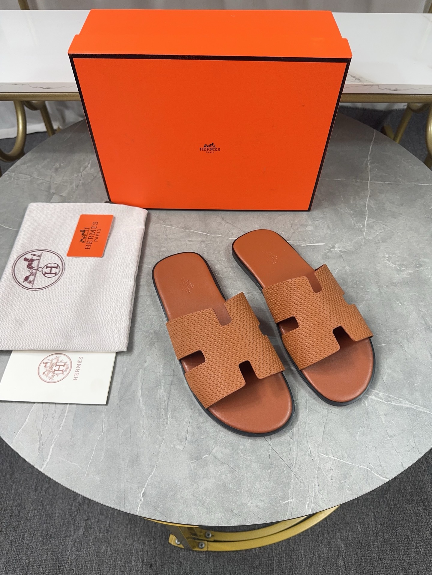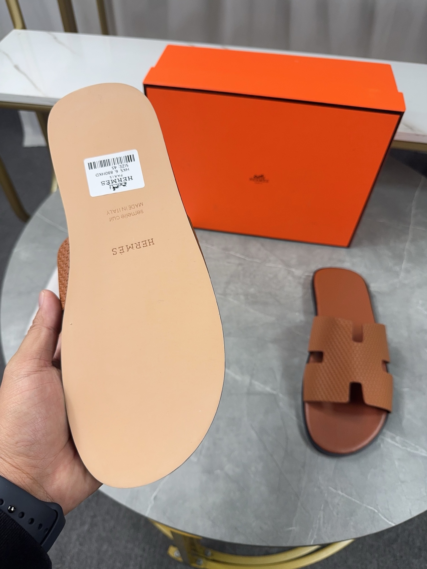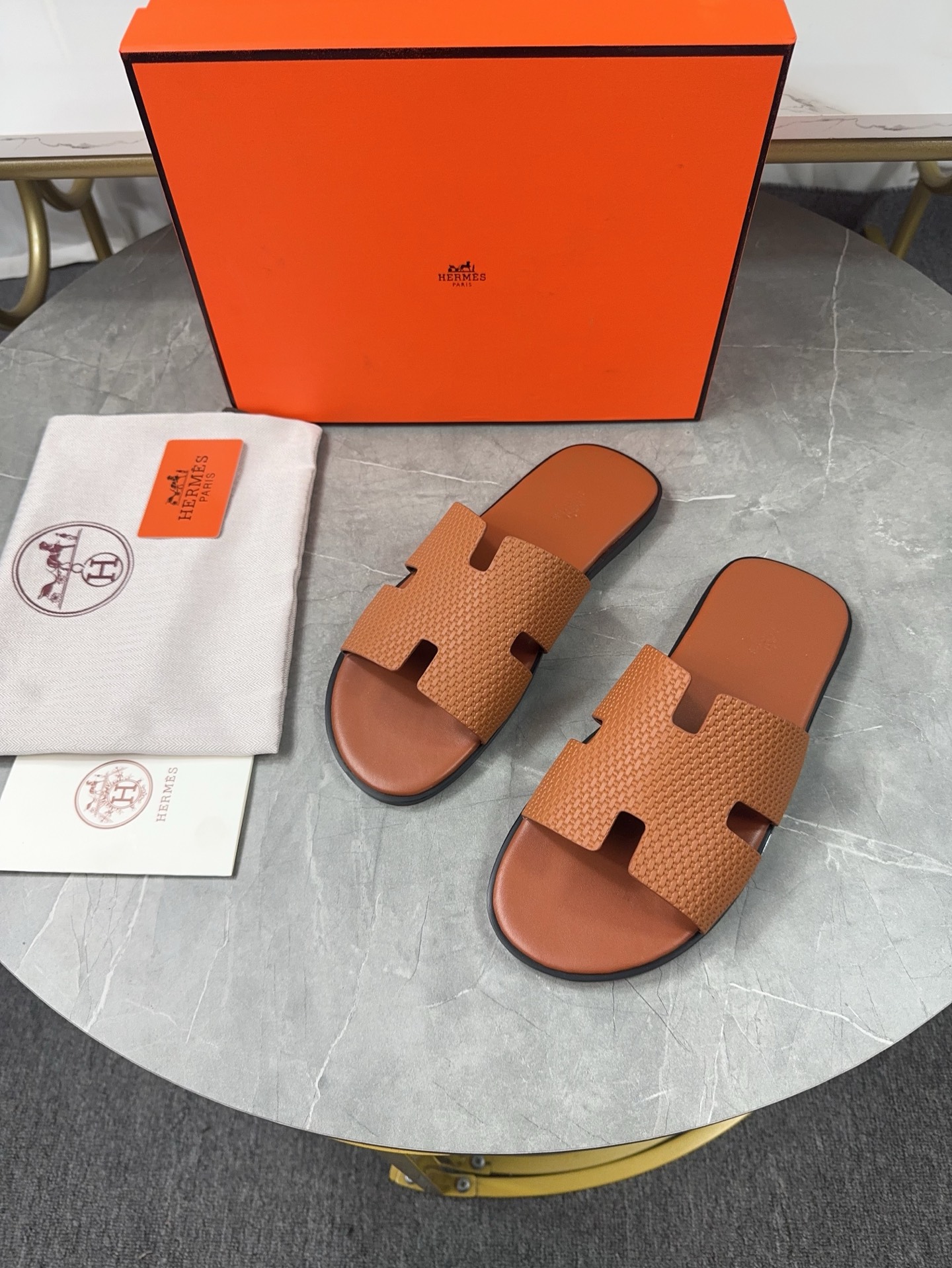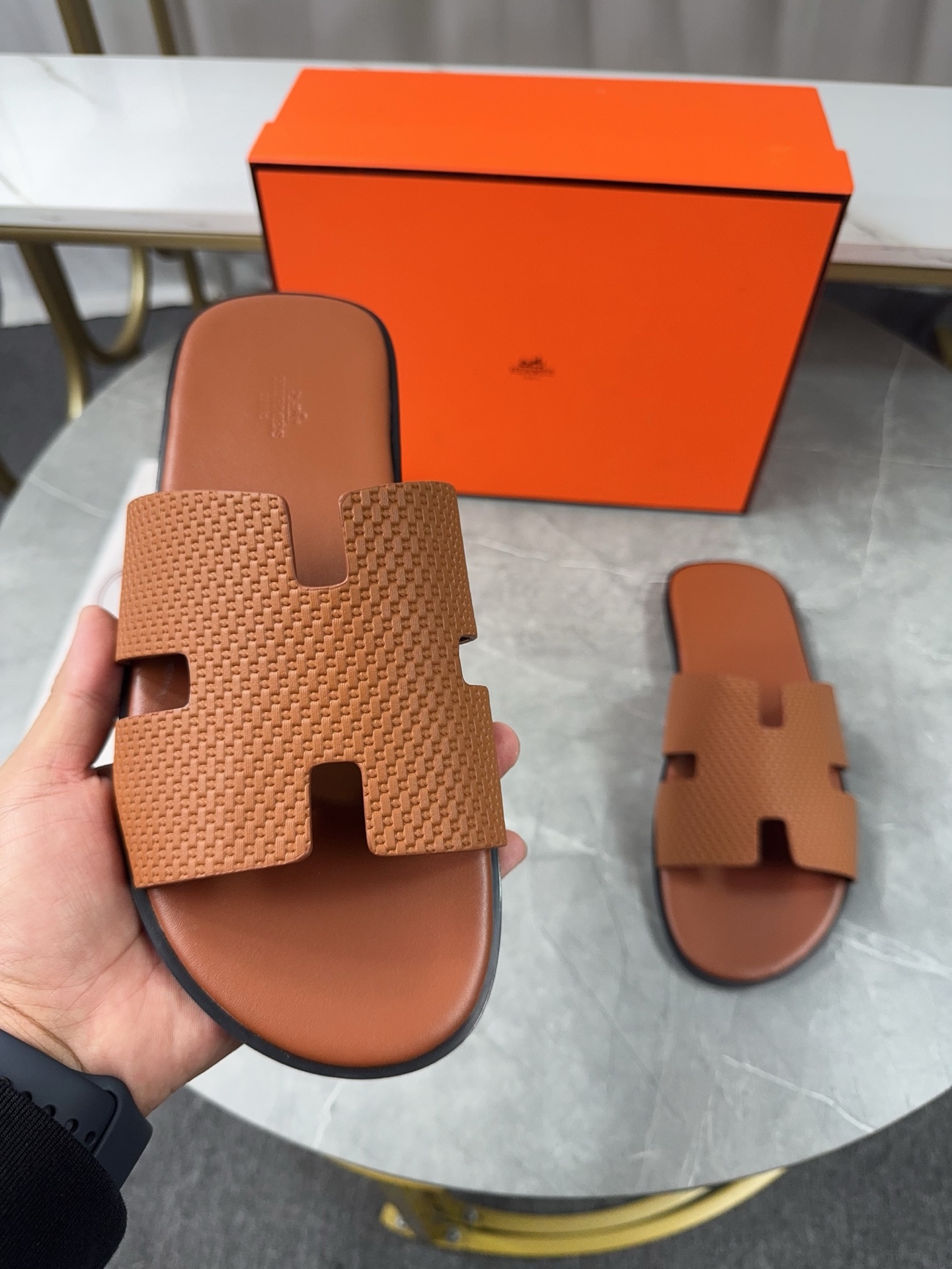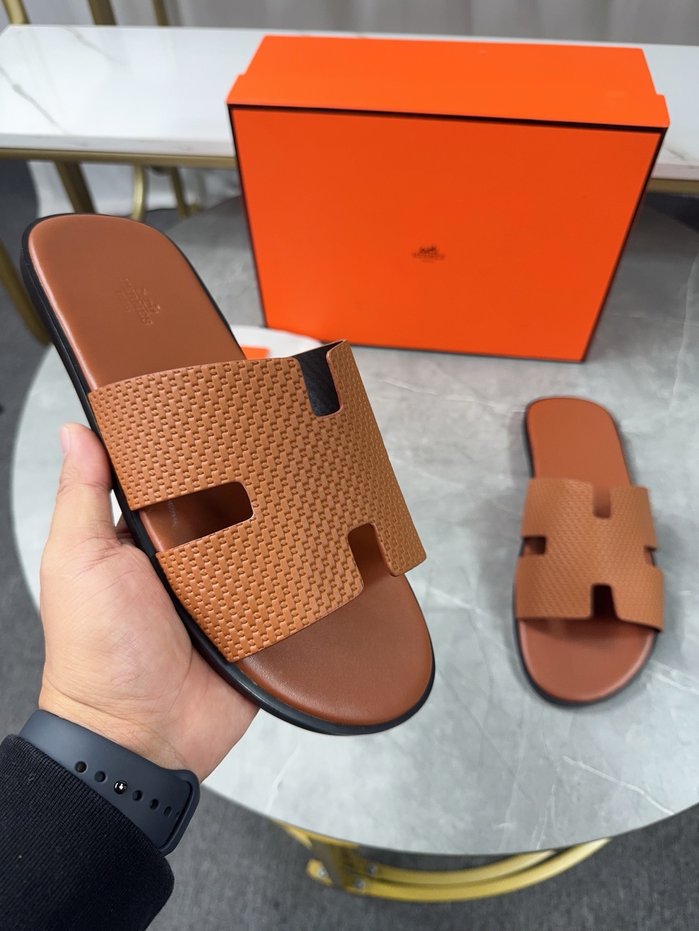 Hermes Men's H-Shaped Leather Sandals Handmade Rubber Sole Size 39-44