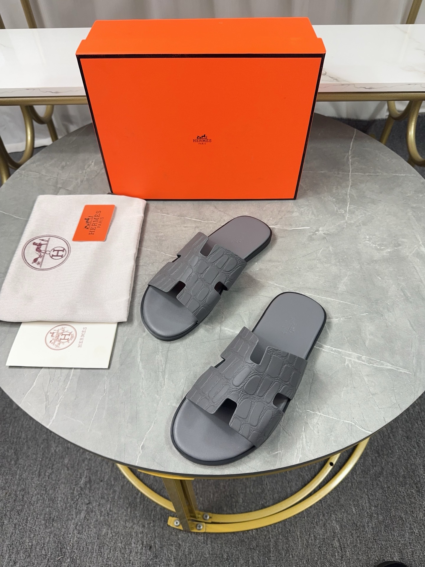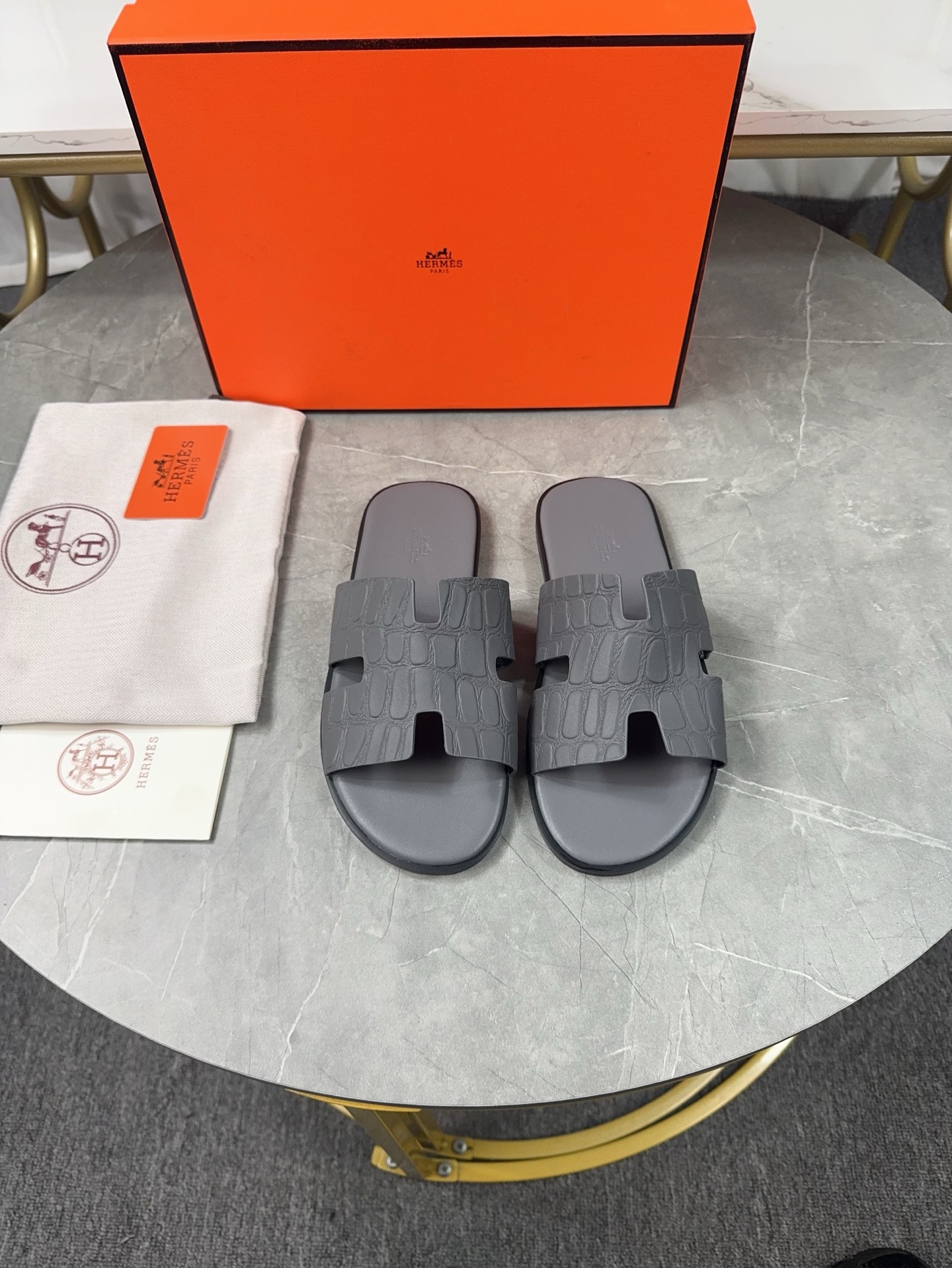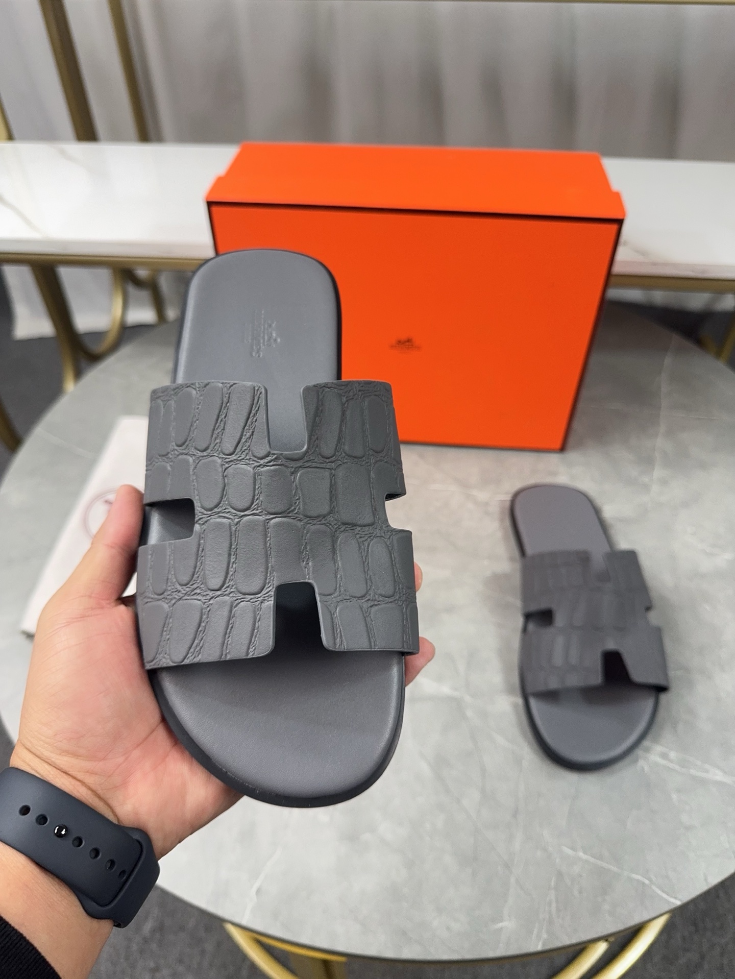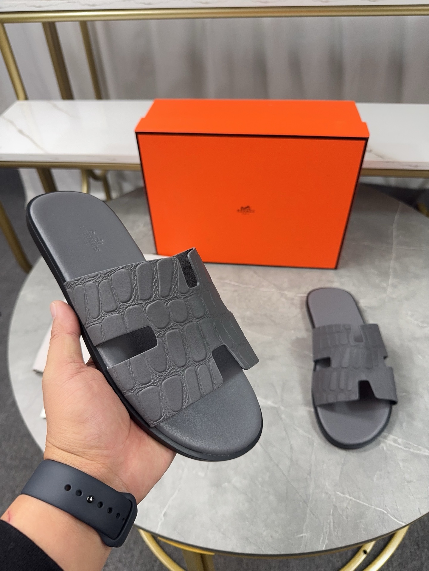 These Hermes men's H slippers are the epitome of classic style and comfort. Made with meticulous attention to detail, these sandals are perfect for adding a touch of luxury to your everyday look.