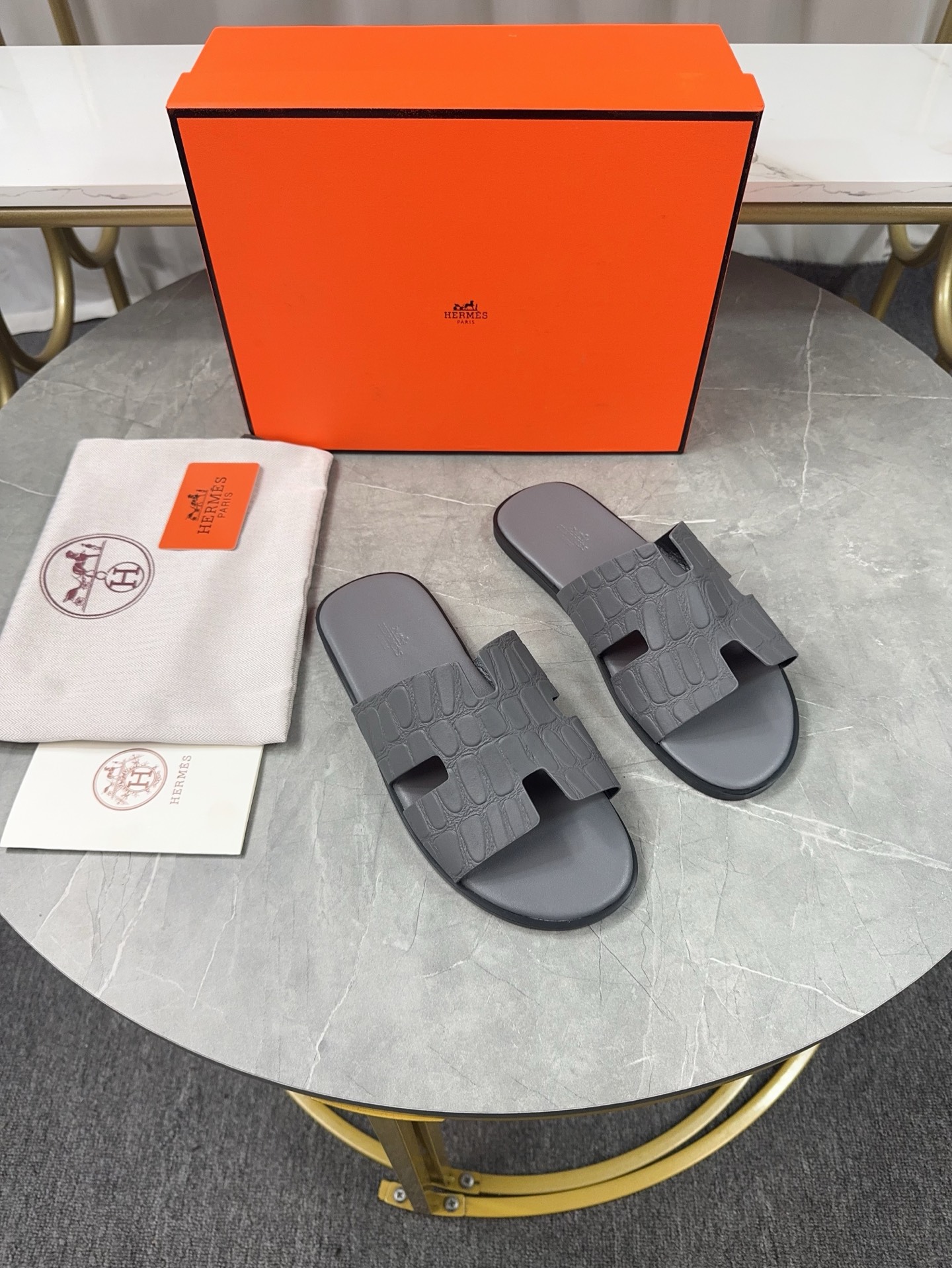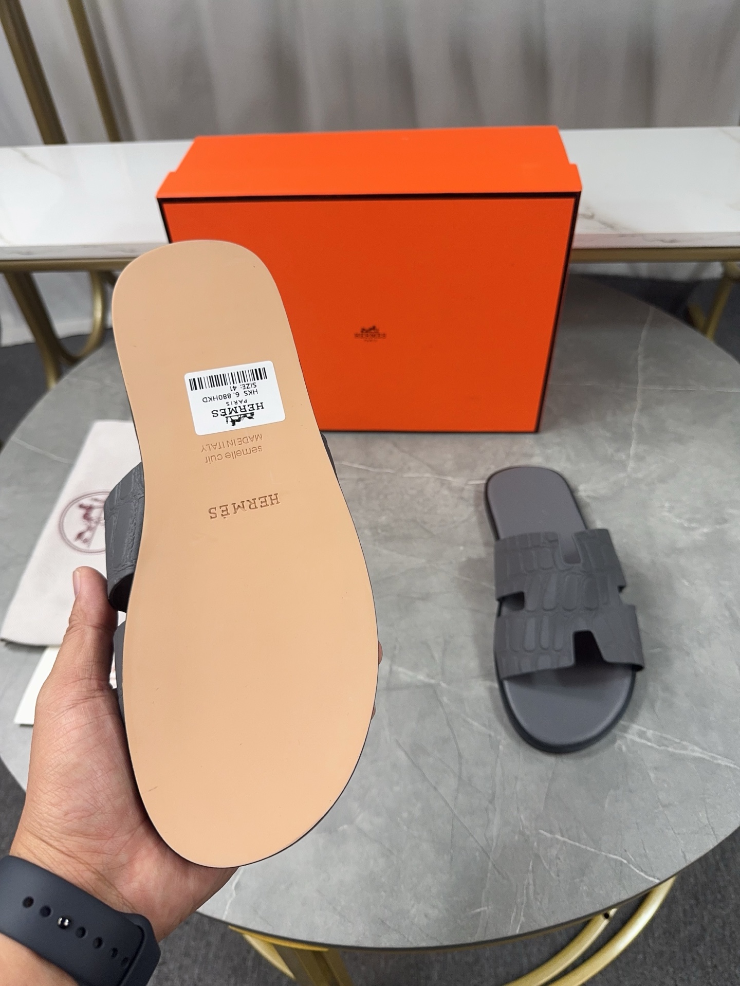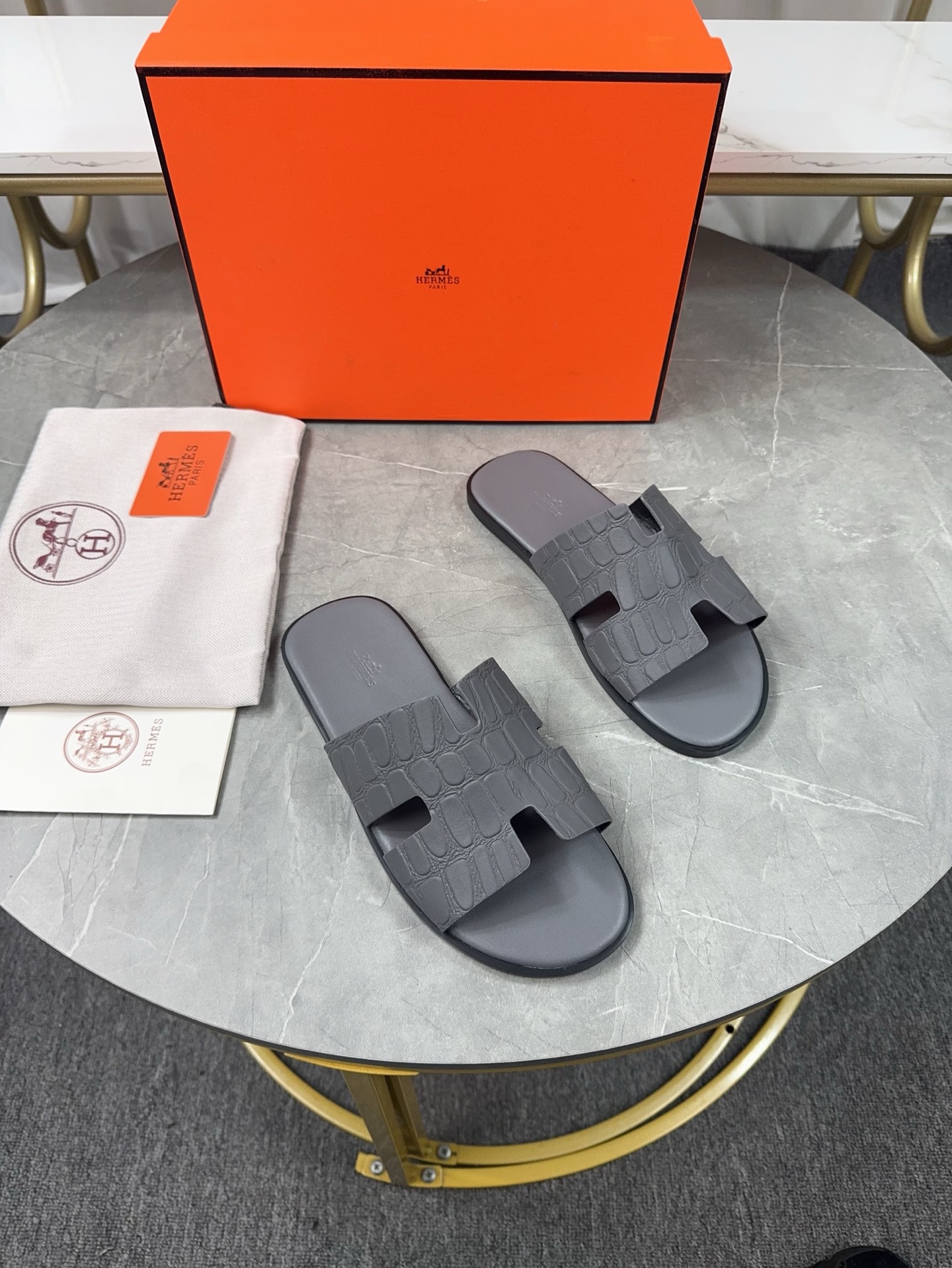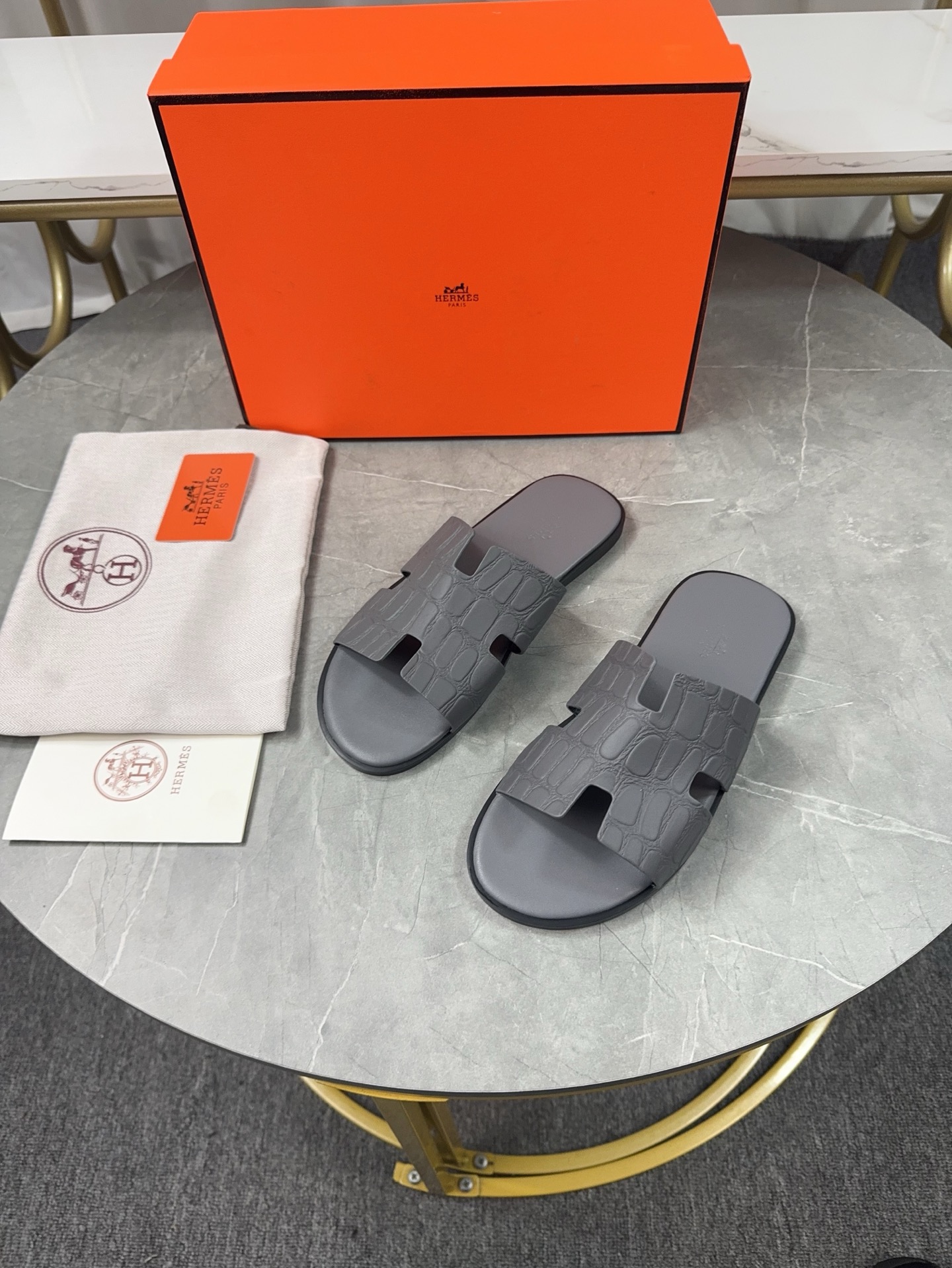 These Hermes men's H slippers are the epitome of classic style and comfort. Made with meticulous attention to detail, these sandals are perfect for adding a touch of luxury to your everyday look.