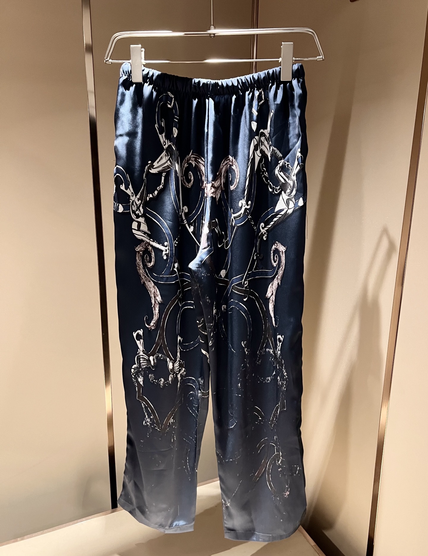 Experience the perfect blend of style and comfort with these Hermes silk pajama pants. Elevate your sleepwear collection with this exquisite piece.