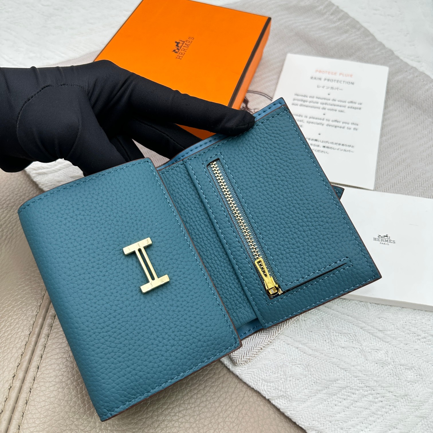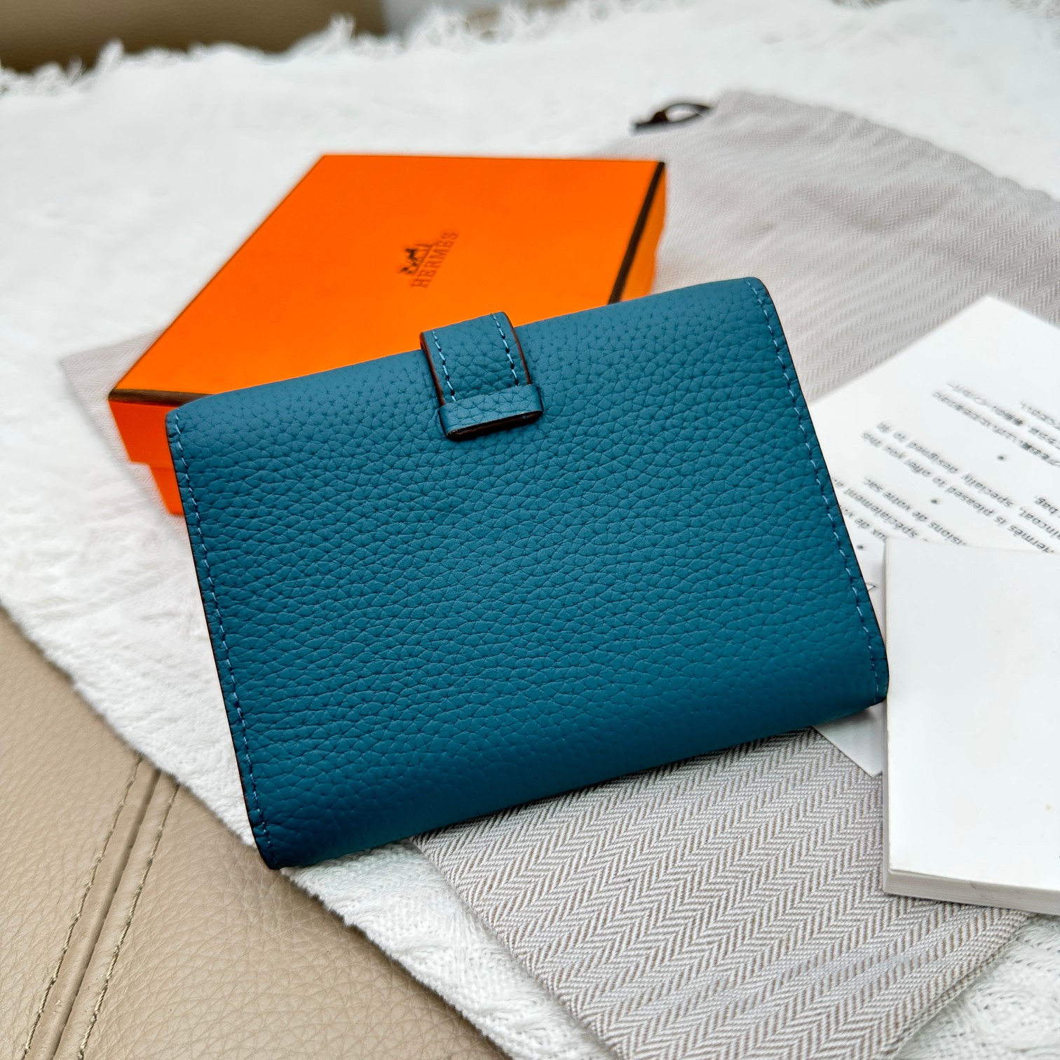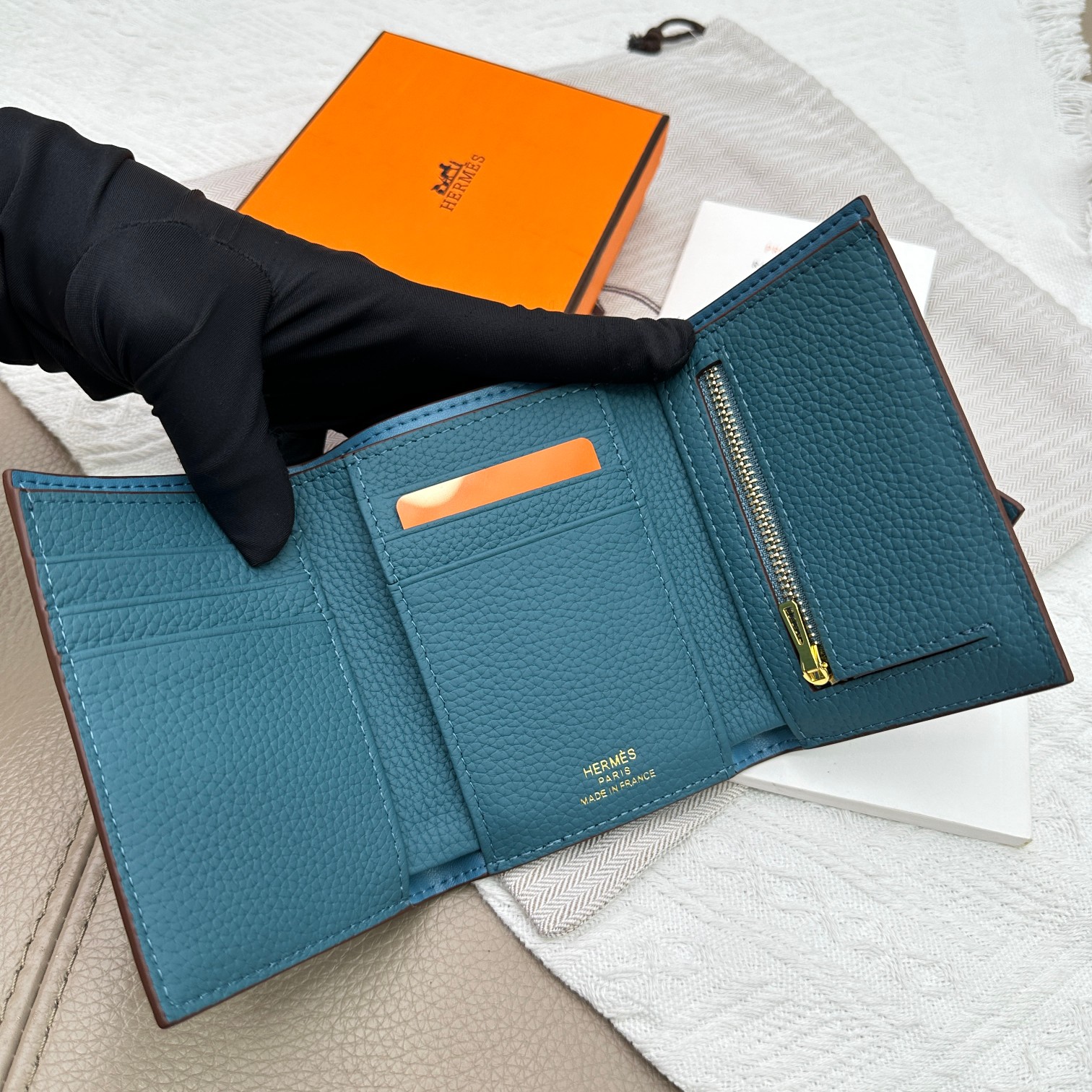 Tags: Designer Leather Wallet, Gold Hardware Wallet, Hermes Togo Leather Wallet, Tri Fold Pocket Wallet, Turquoise Leather Wallet