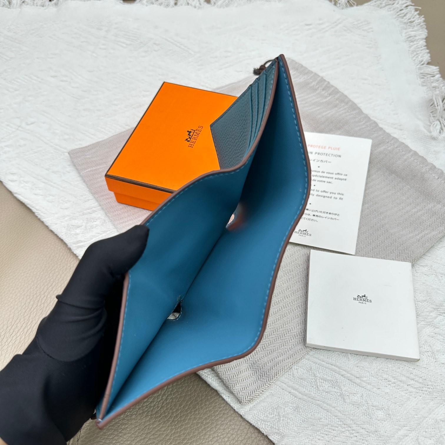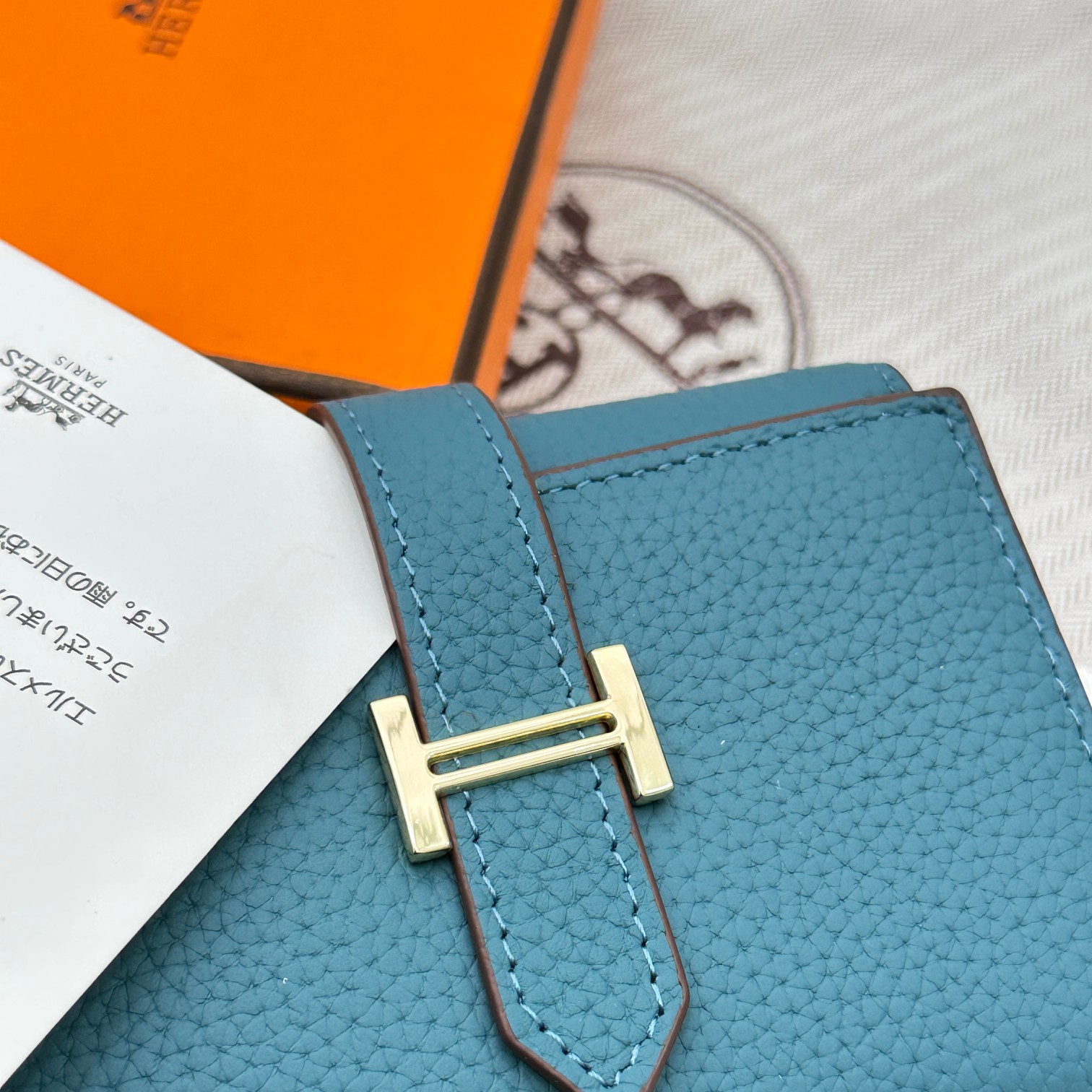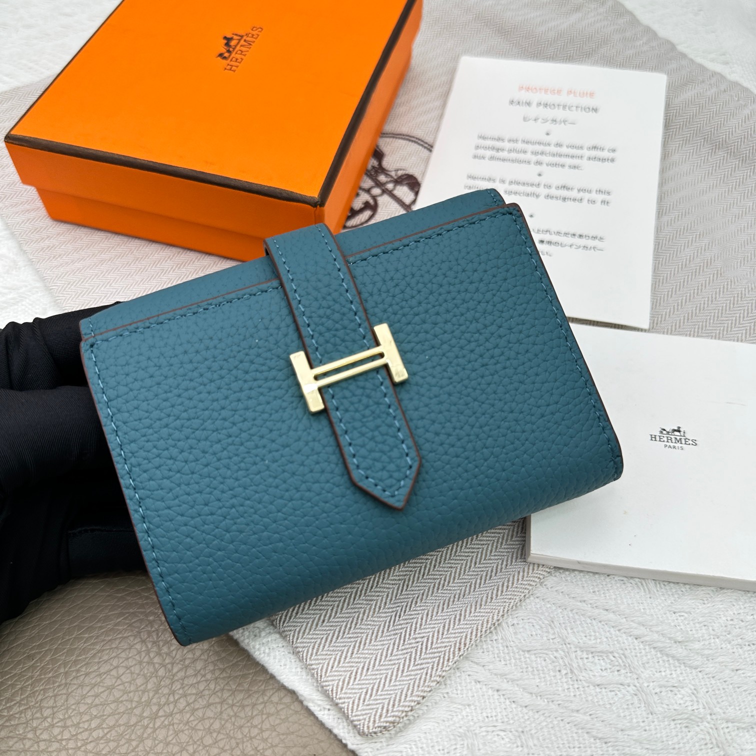 Tags: Designer Leather Wallet, Gold Hardware Wallet, Hermes Togo Leather Wallet, Tri Fold Pocket Wallet, Turquoise Leather Wallet