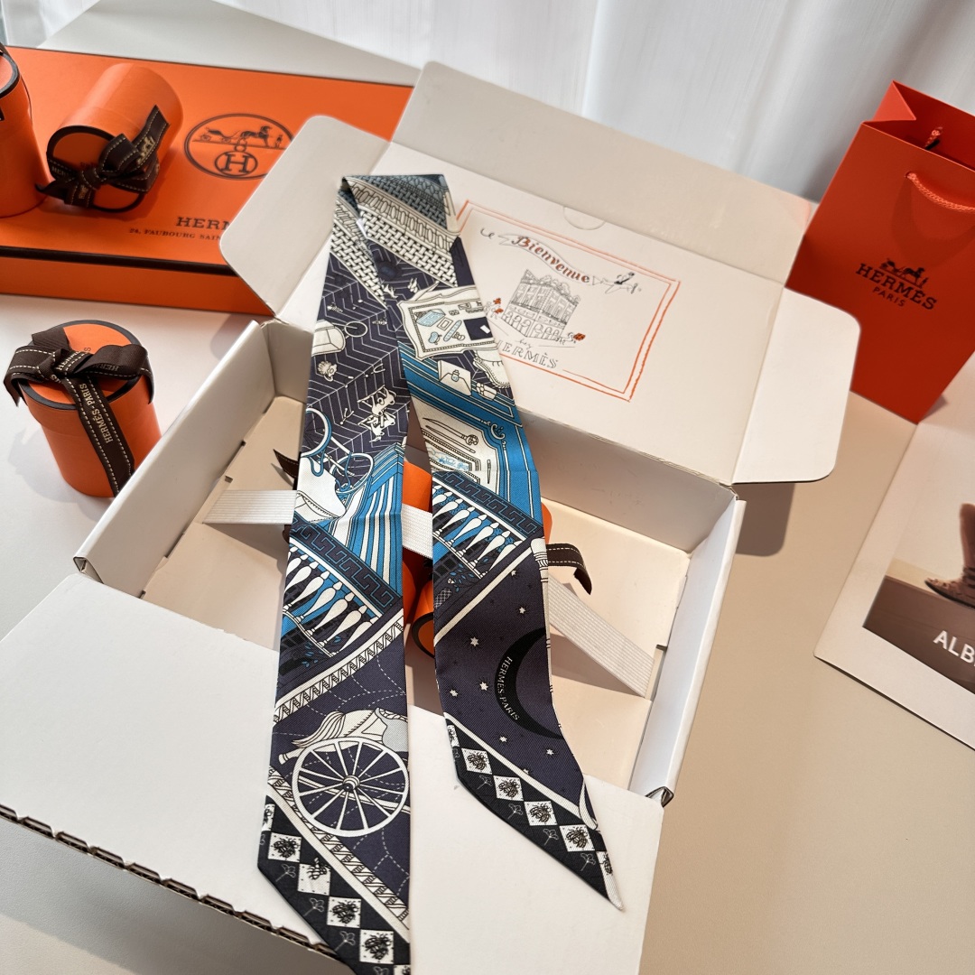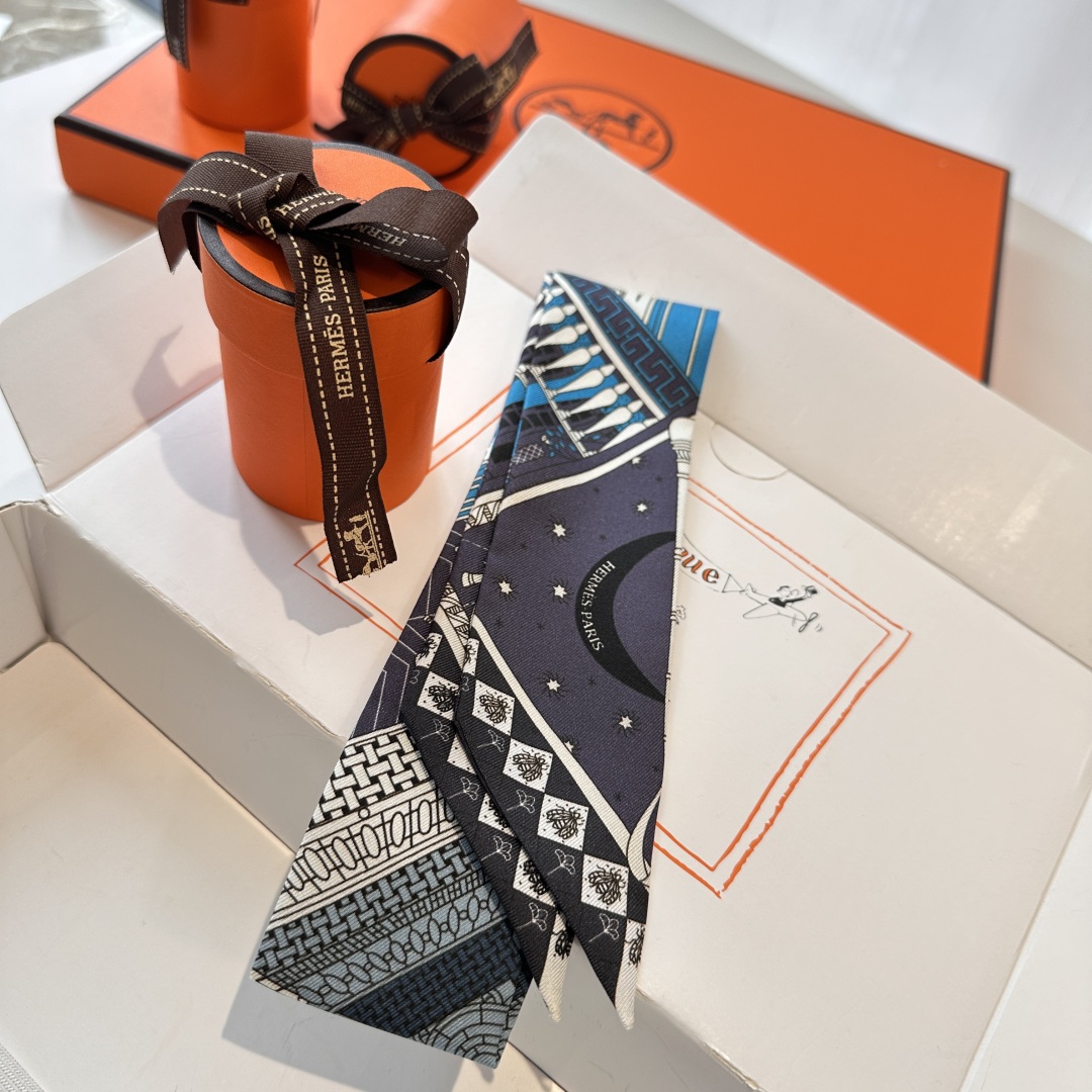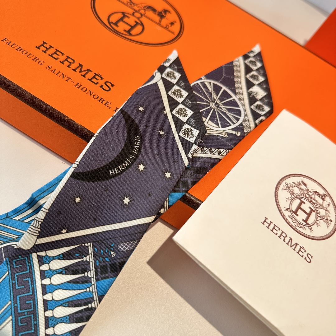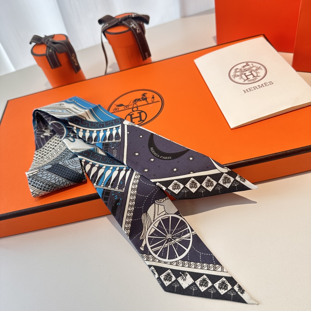 Hermes Twilly Silk Scarf, 5x86cm, Double-Sided Design, Headband, Bag Accessory