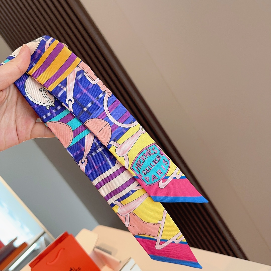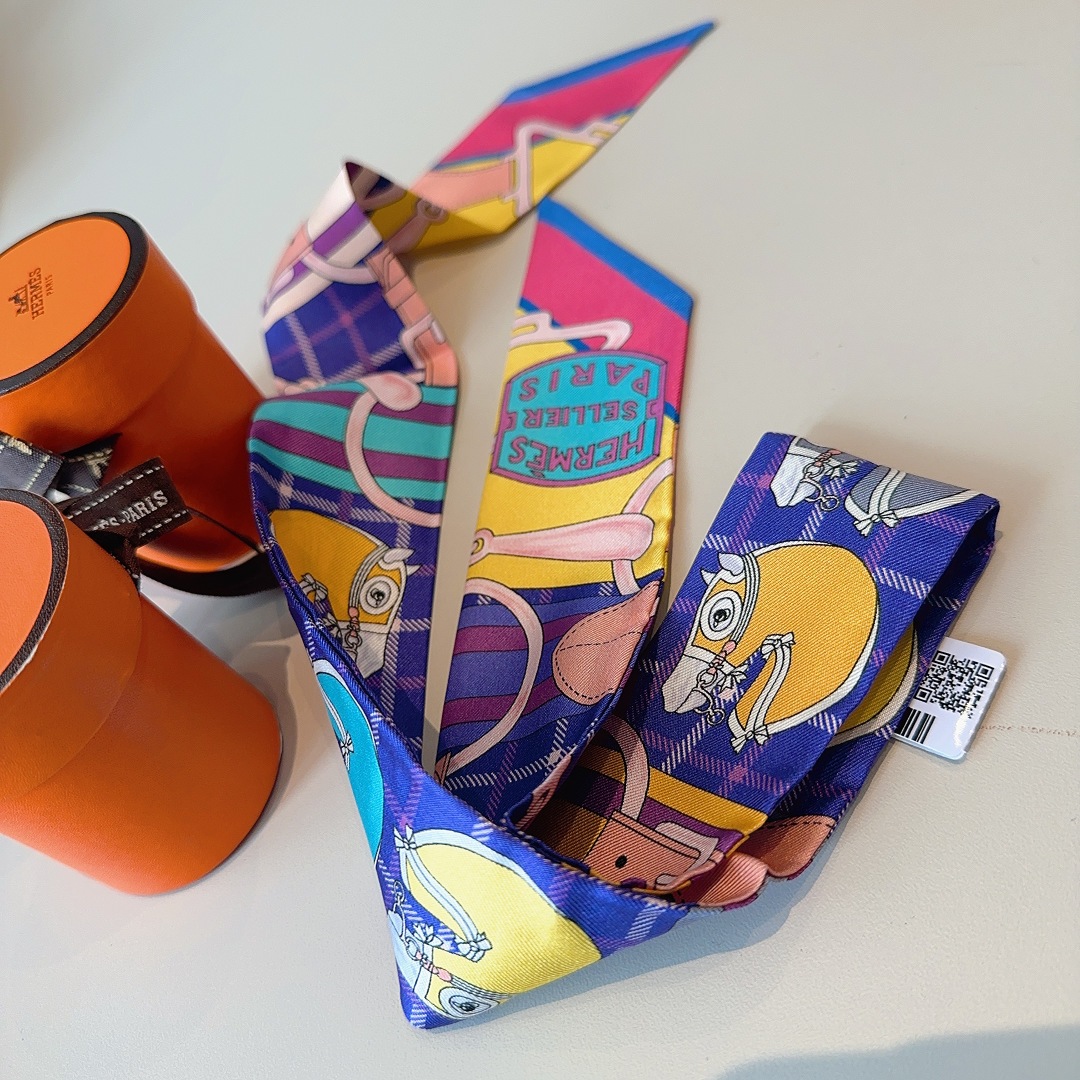 Hermes Twilly Silk Scarf, 5x86cm, Double-Sided Heavyweight Twill, Designer Inspired