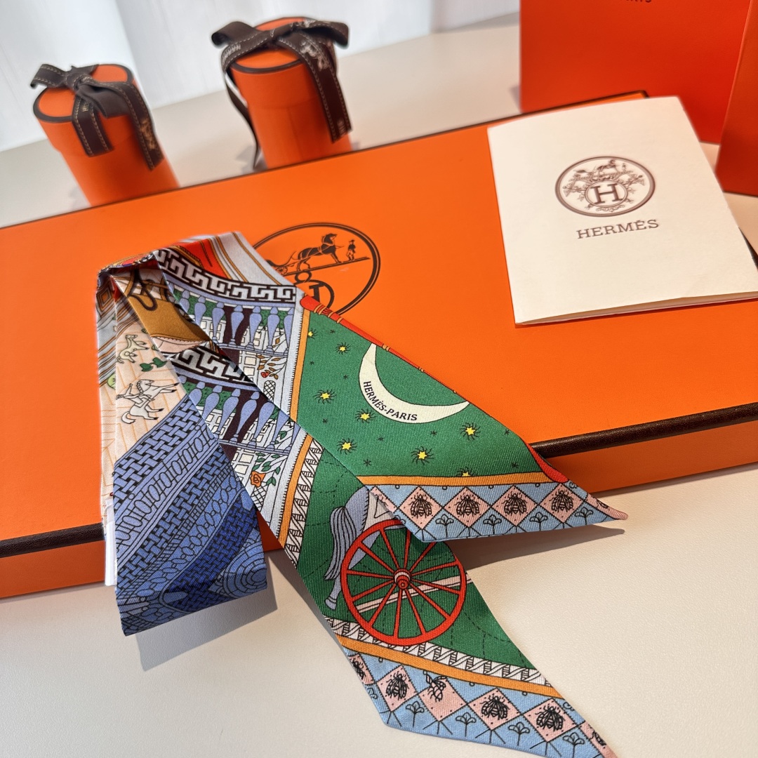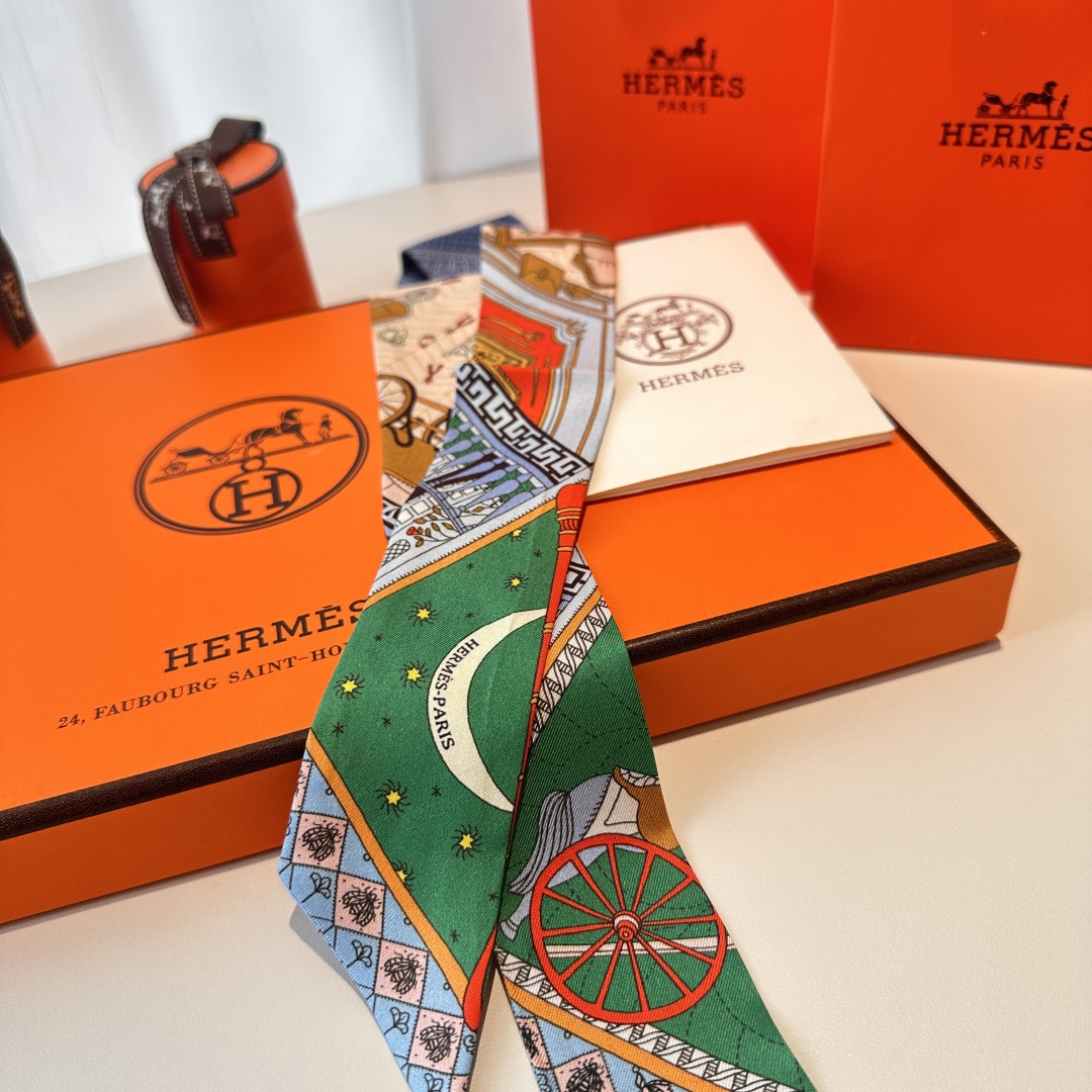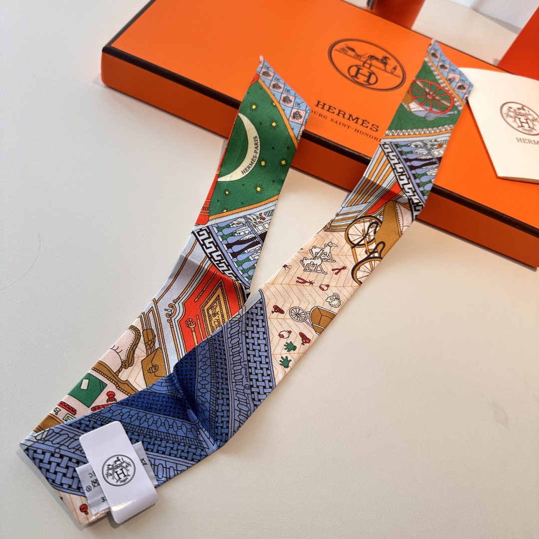 Hermes Twilly Silk Scarf, 5x86cm, Heavyweight Twill, Double-Sided Design