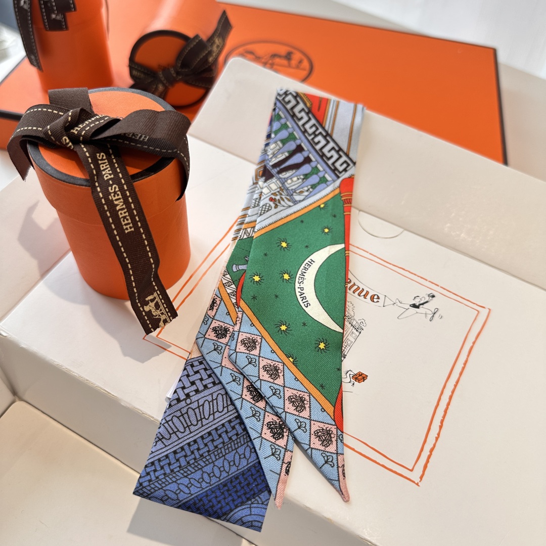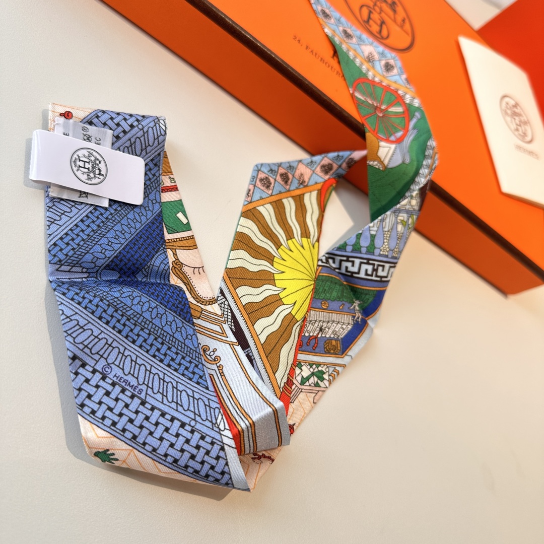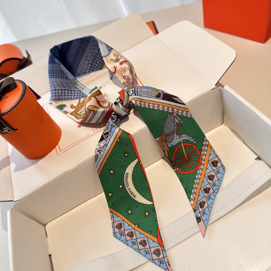 Hermes Twilly Silk Scarf, 5x86cm, Heavyweight Twill, Double-Sided Design