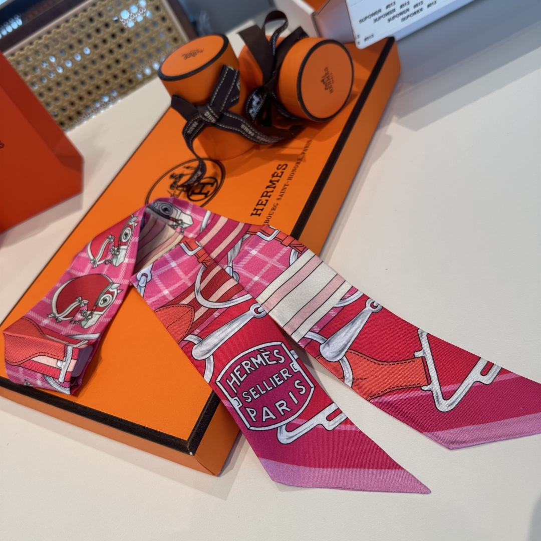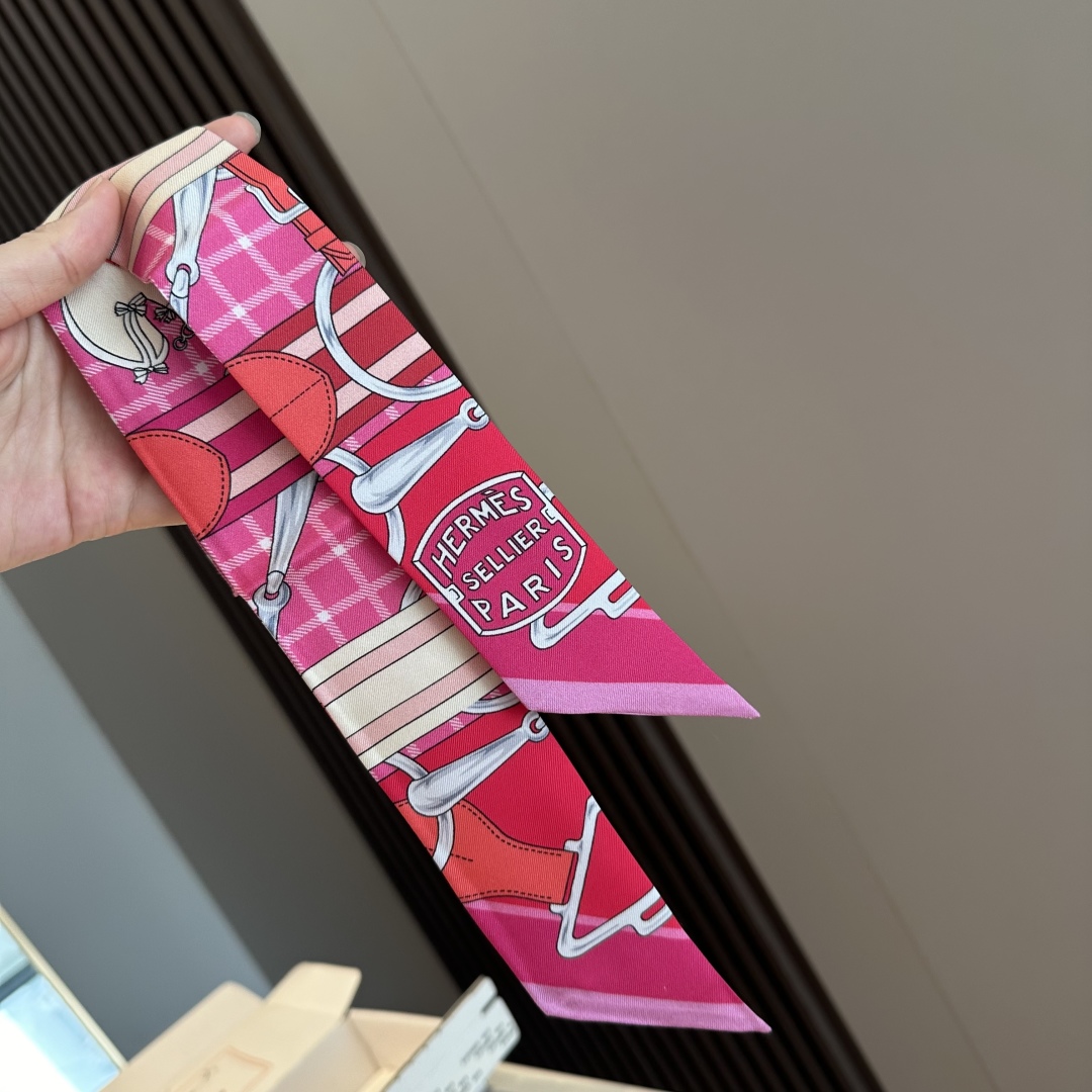 Hermes Twilly Silk Scarf, Authentic Design, 100% Twill Silk, 5x86cm
