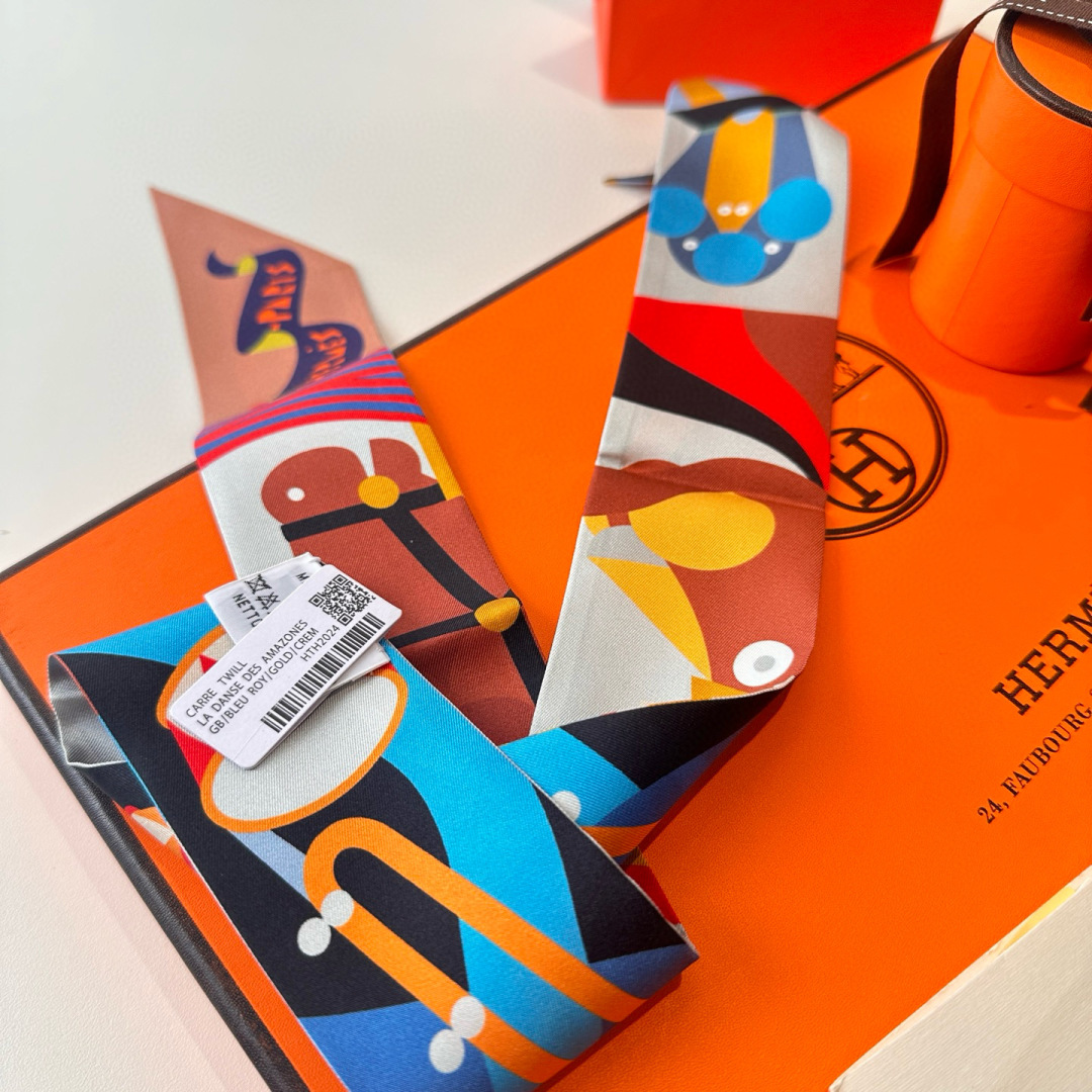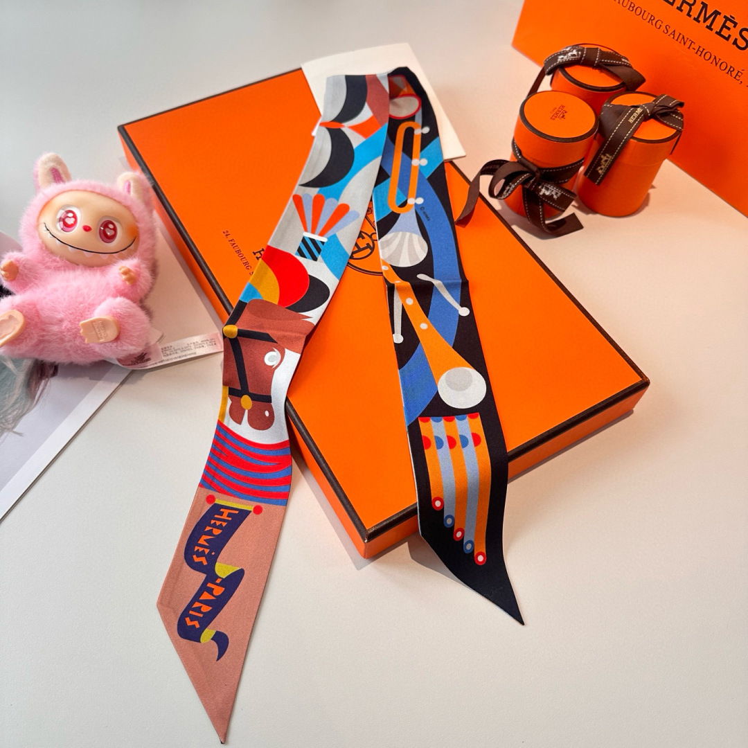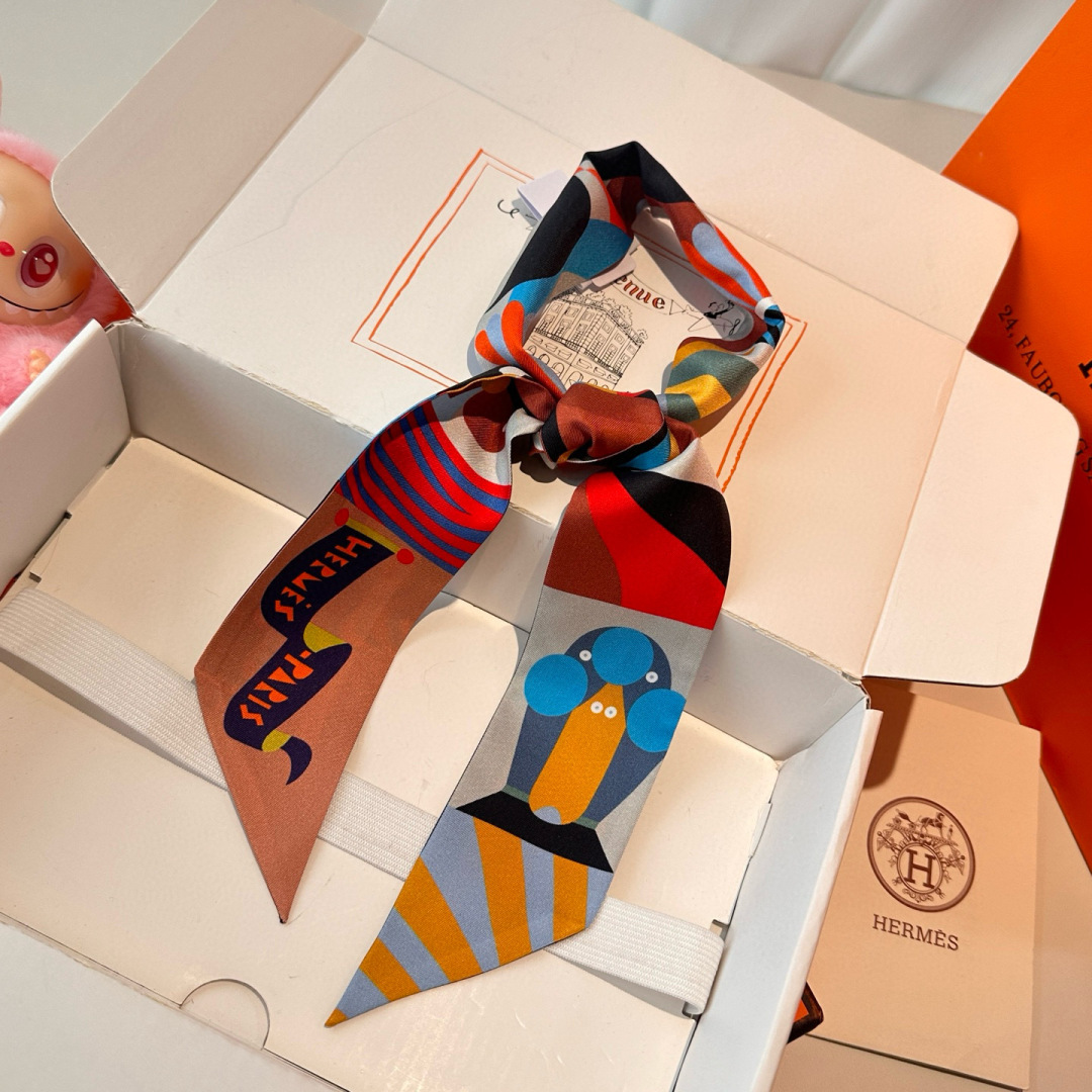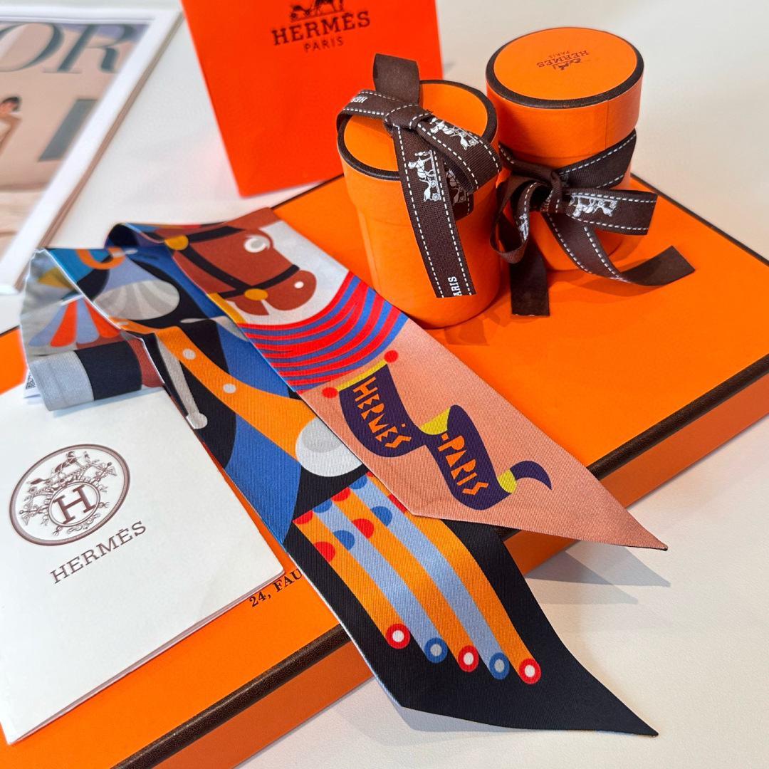 Hermes Twilly Silk Scarf, "Grand Parade" Design, 5x86cm, Premium Quality