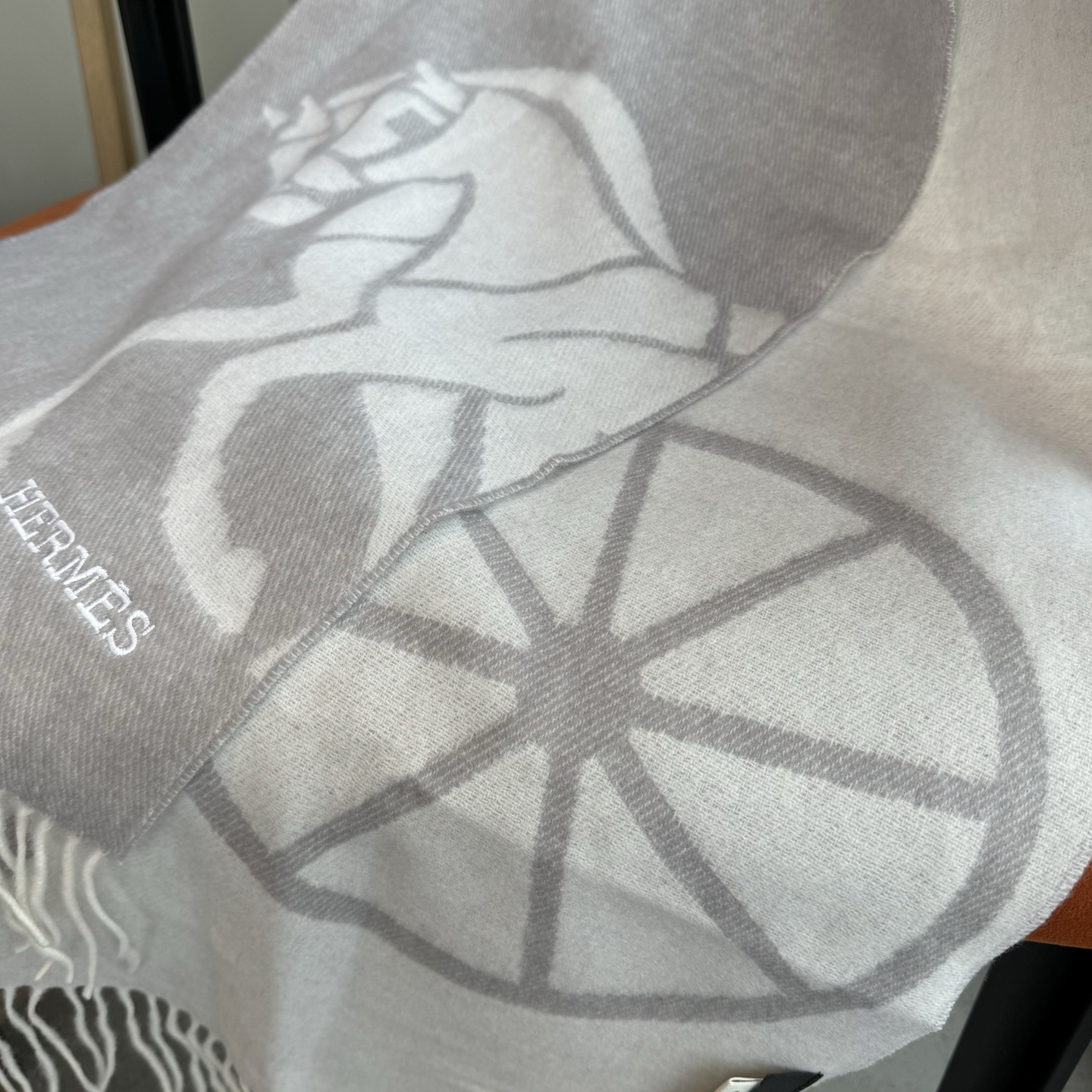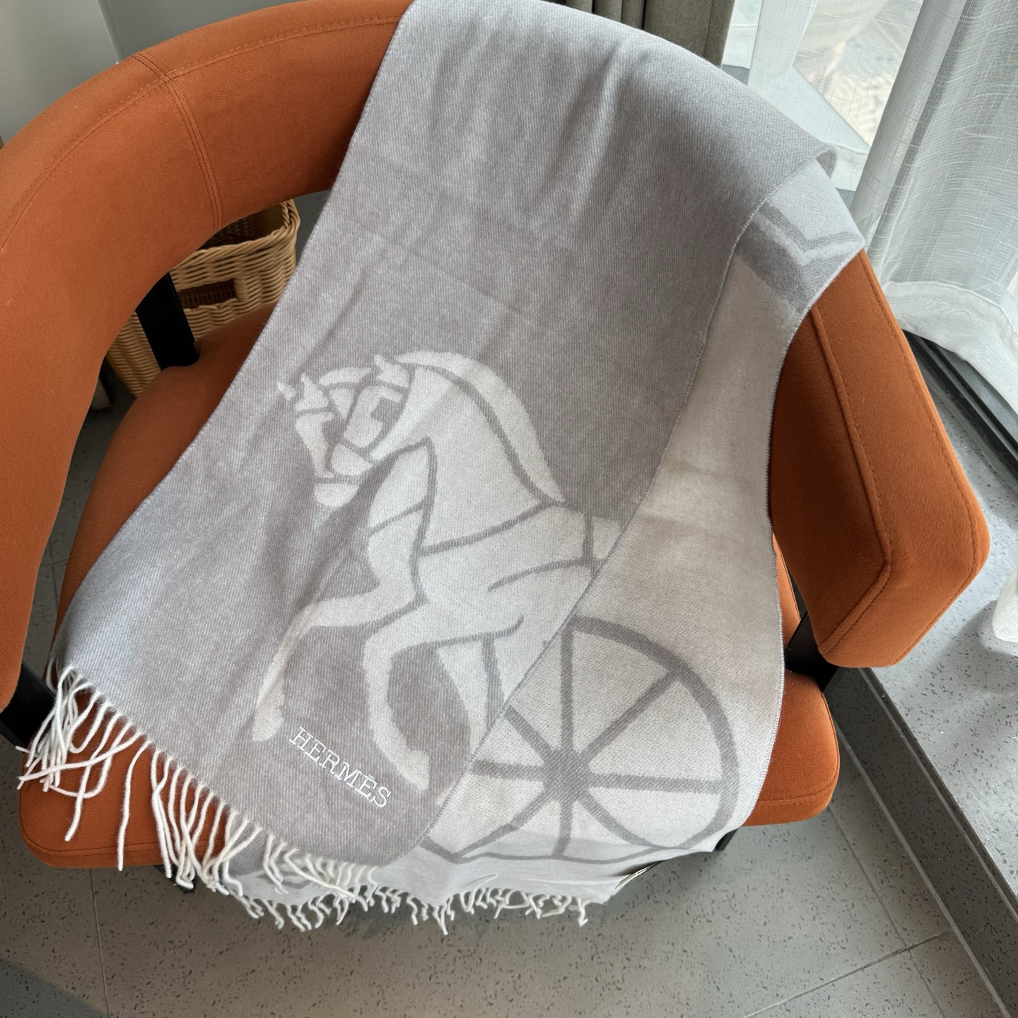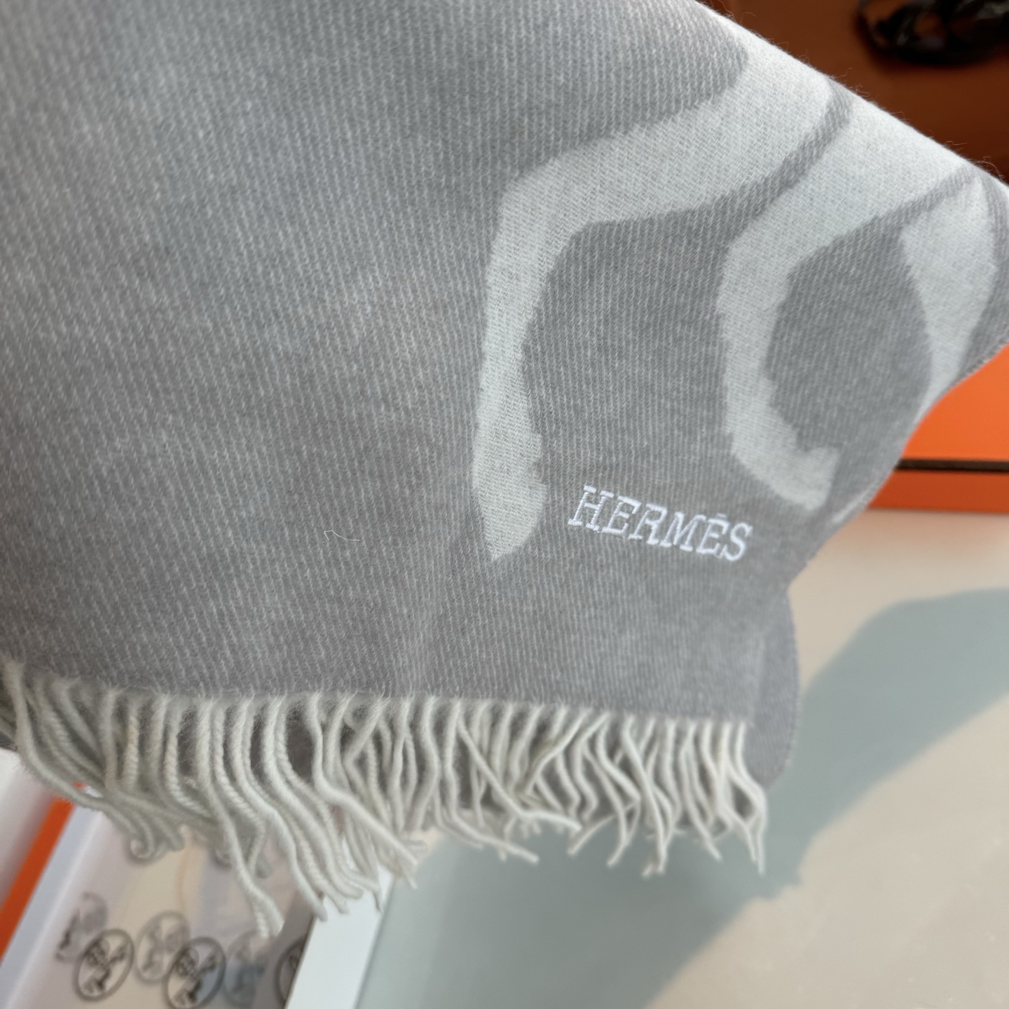 This Hermes cashmere scarf is a timeless accessory, perfect for adding a touch of elegance to any outfit.