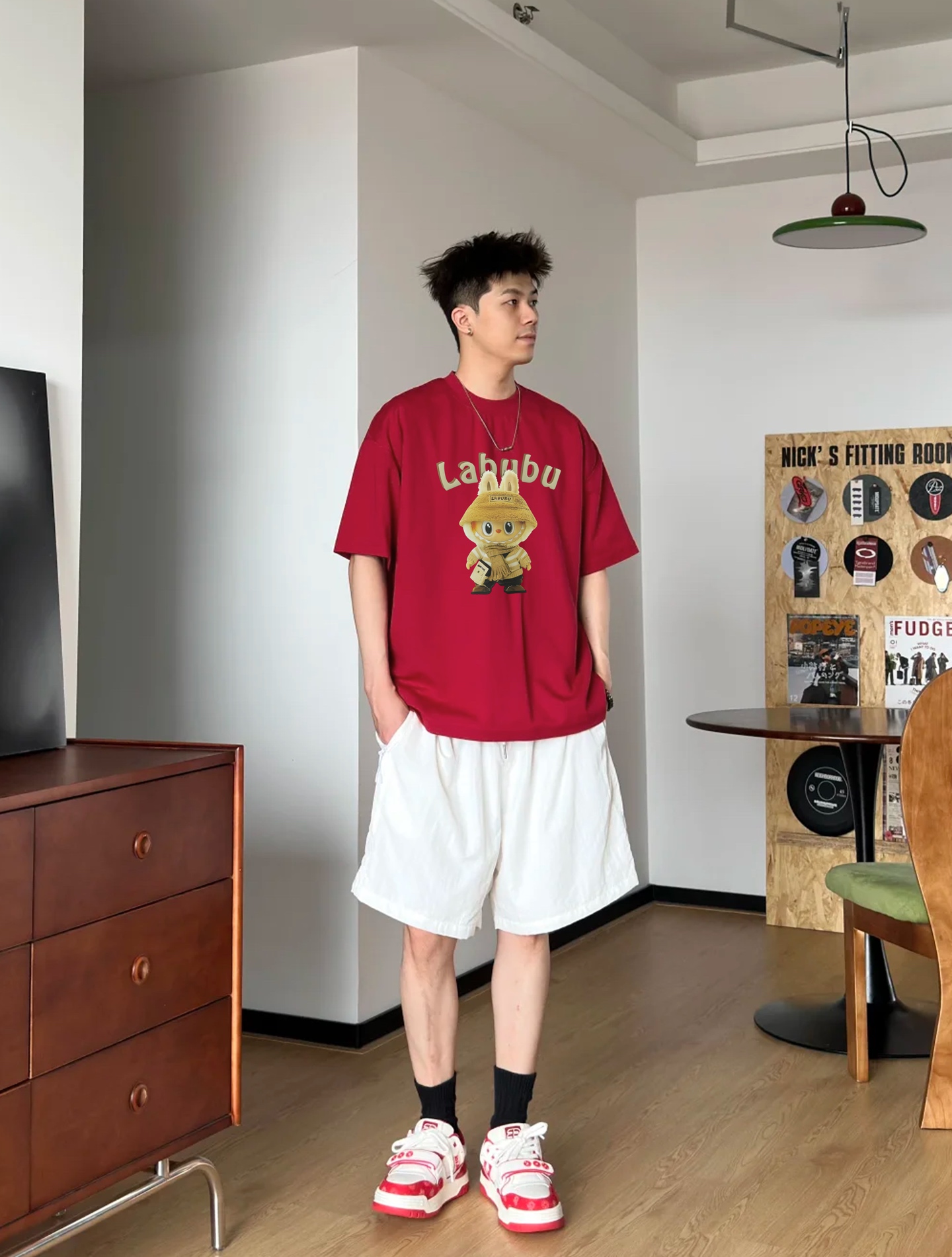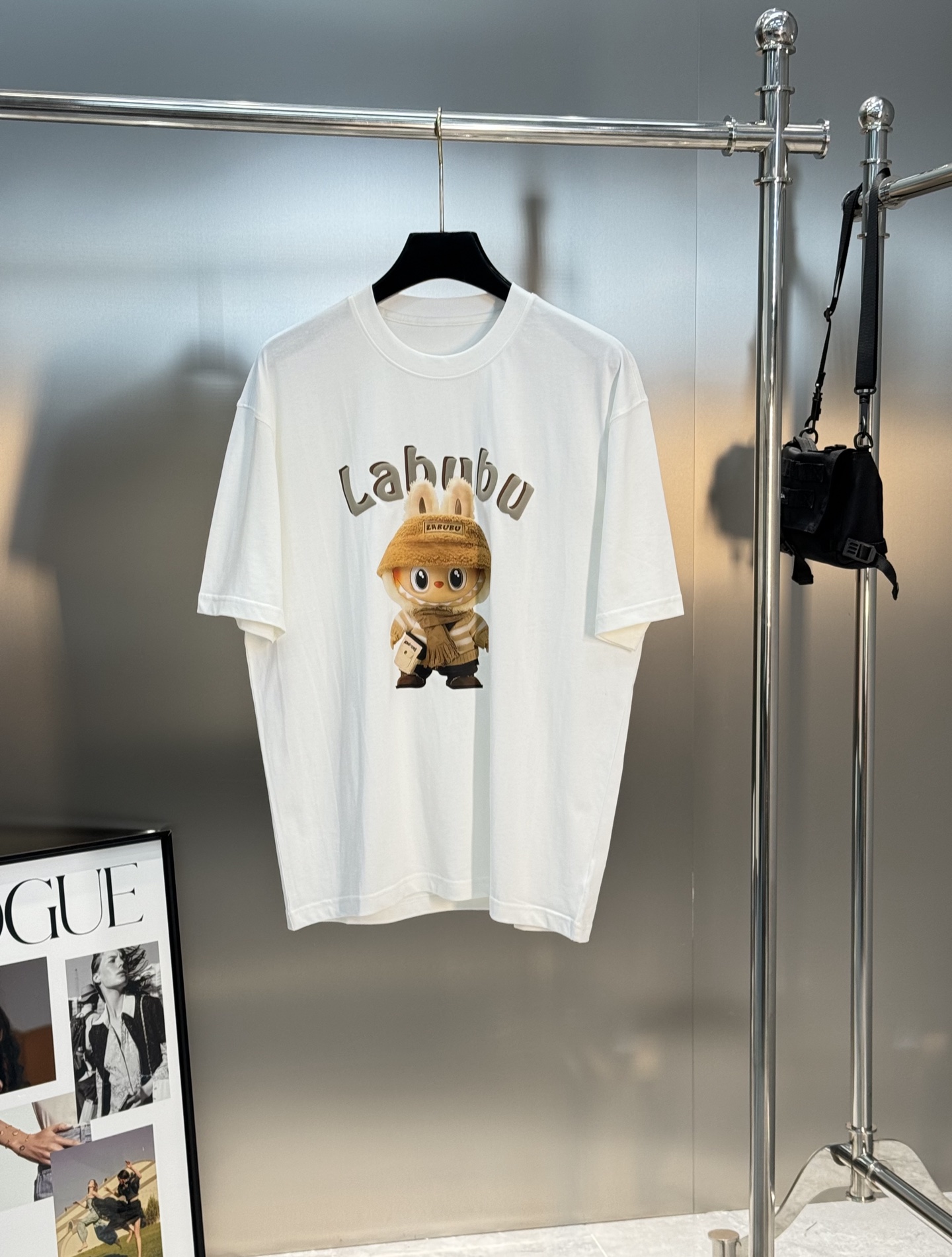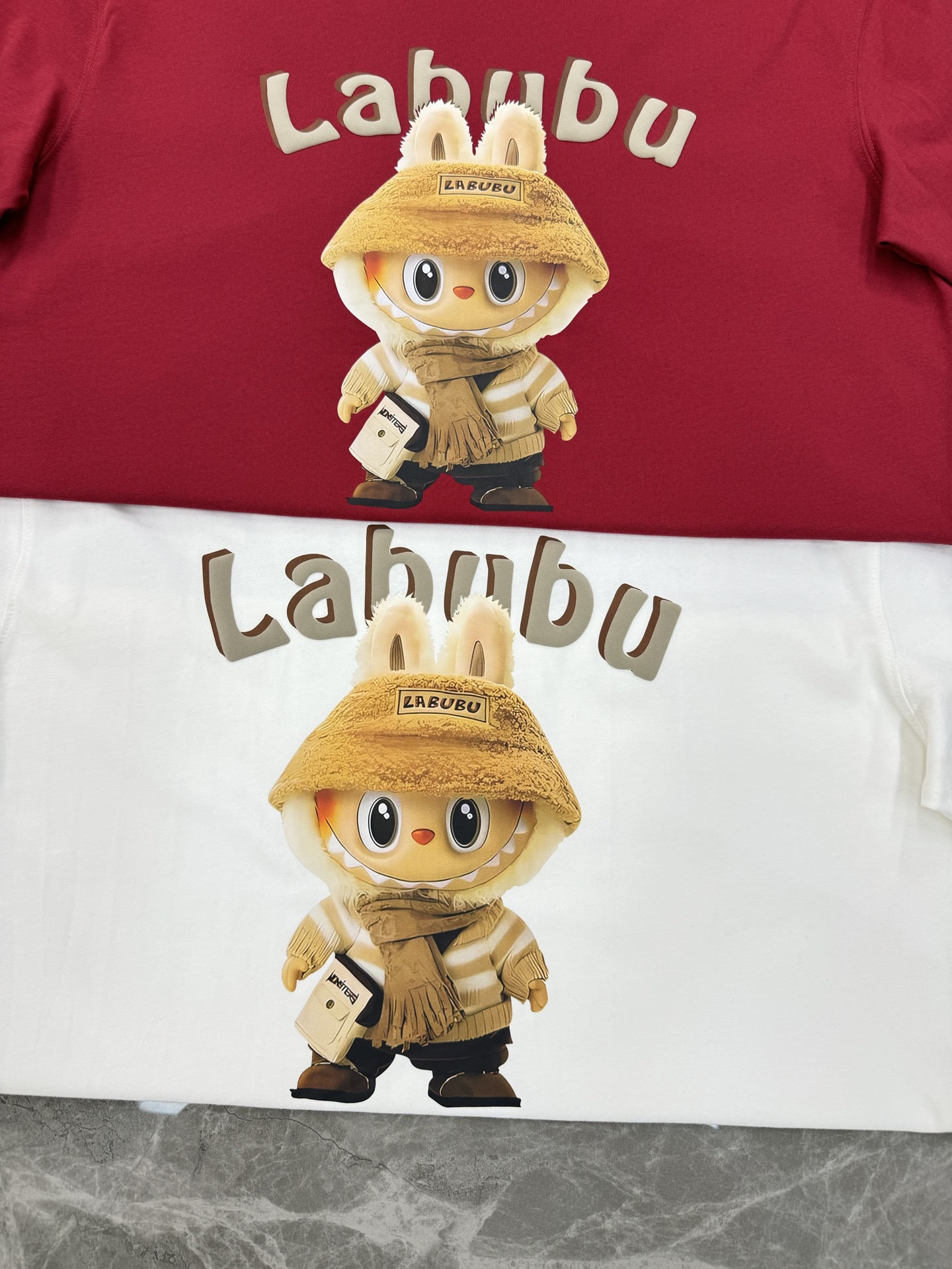 - Features a trendy Labubu cartoon print logo.